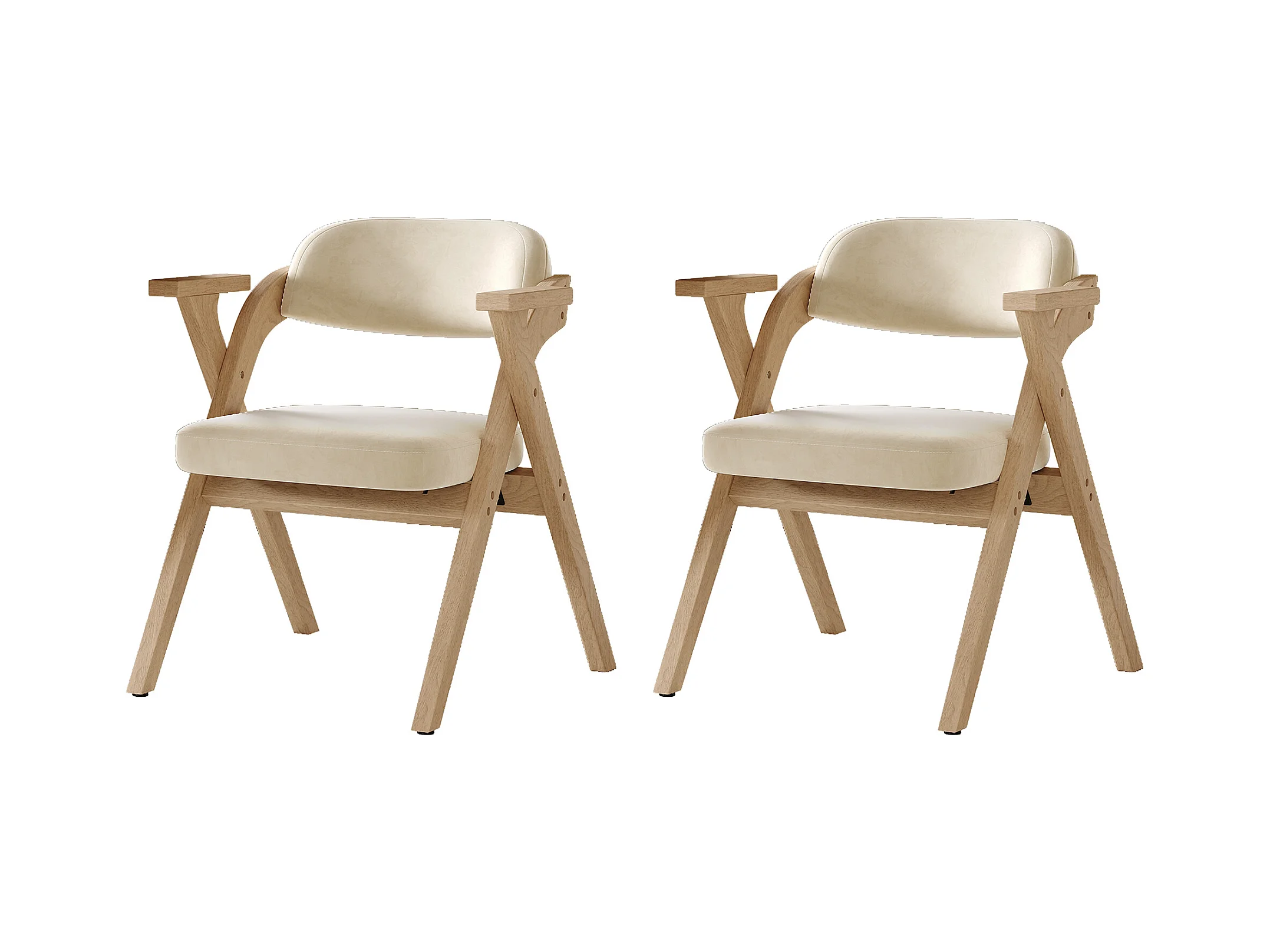 Lot de 2 chaises de salle à manger - Pliable - assise en velours - Structure en bois massif - Beige
