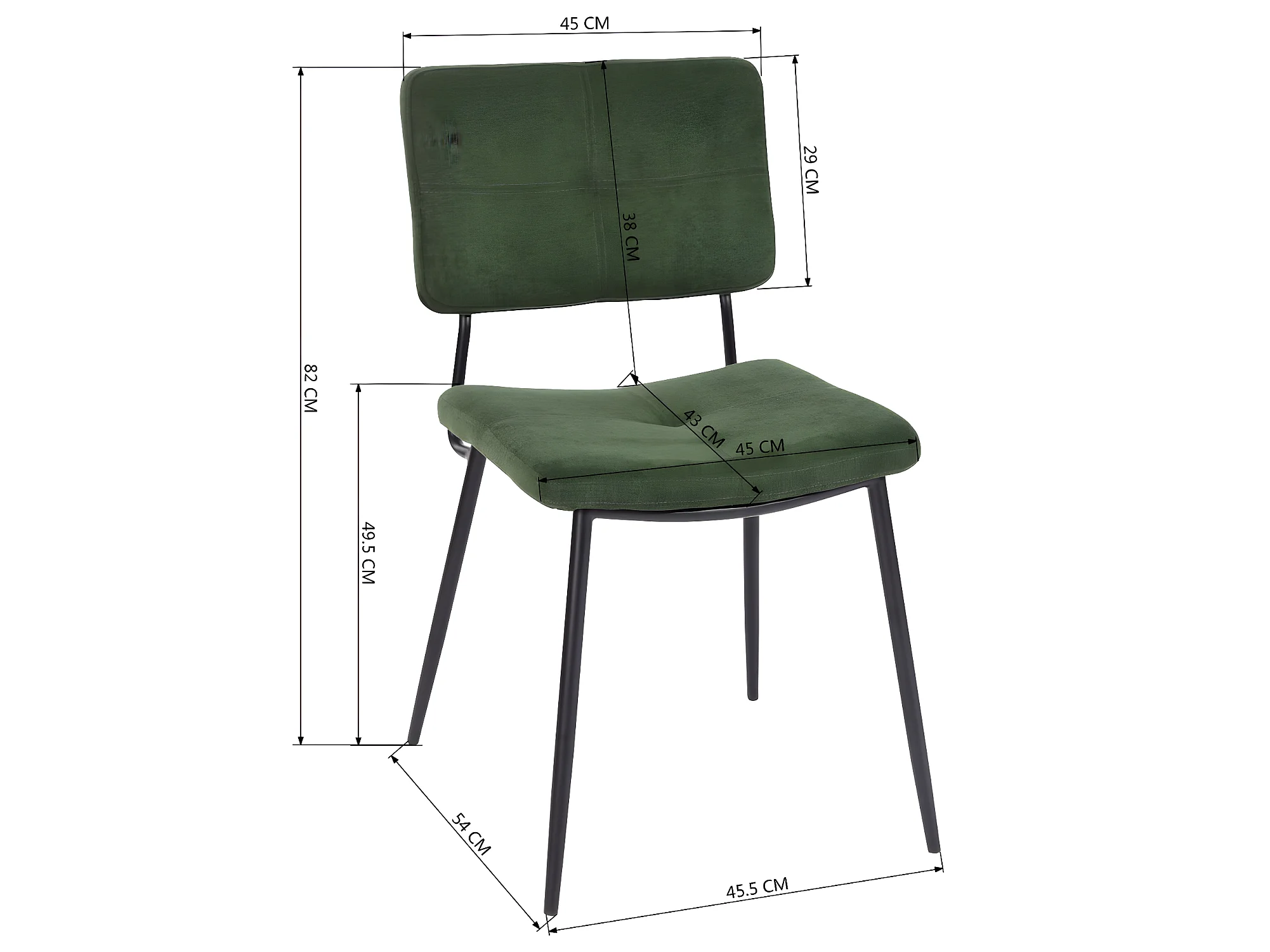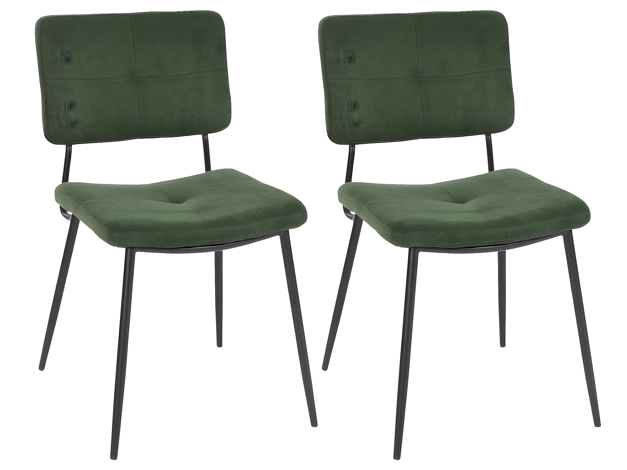 Lot de 2 Chaises de Salle à Manger Rétro Fauteuil Assise Rembourrée en Tissu Pieds en métal pour Cuisine Salon Chambre Bureau Vert, 59,5x45x82cm
