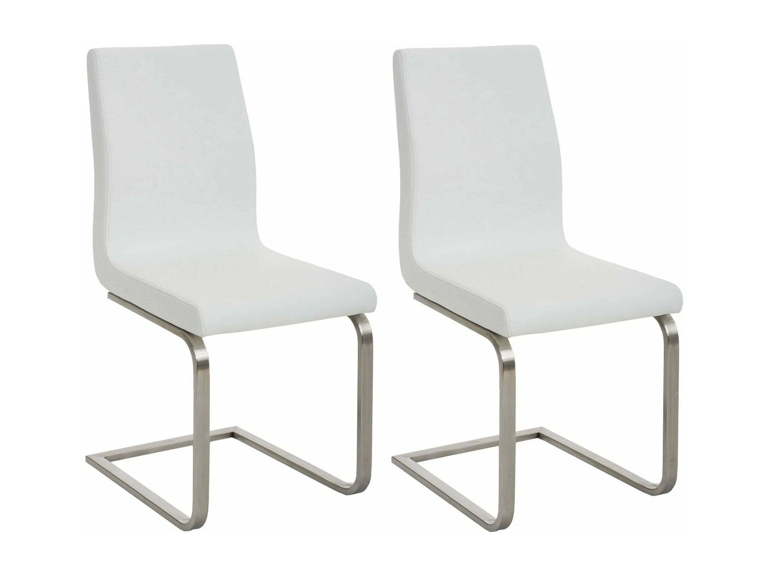 Lot de 2 chaises de salle à manger style cantilever en PVC blanc pieds forme luge en acier inoxydable 10_0001596