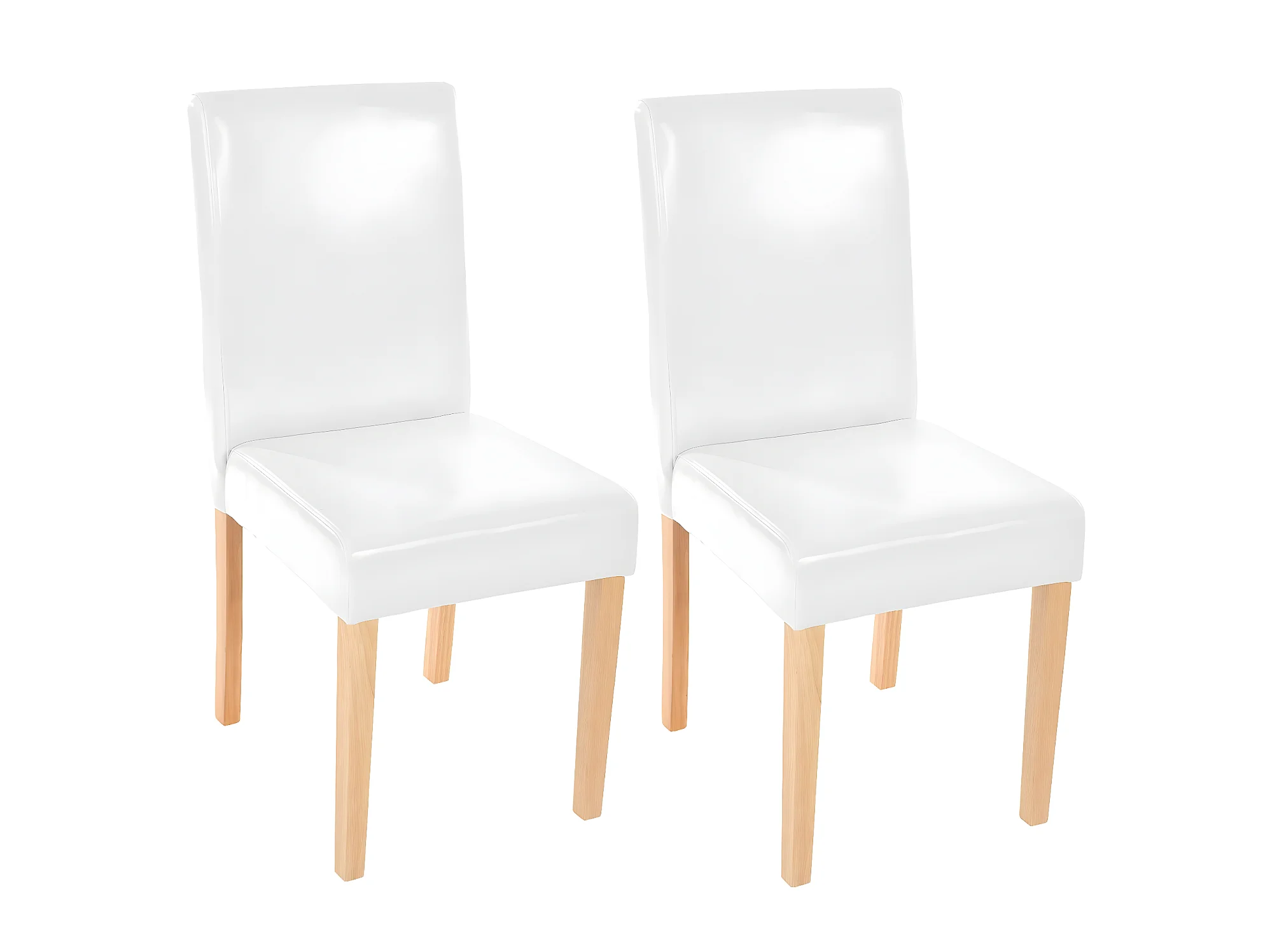Chaise simili cuir blanc et pieds bois massif Zinar - Lot de 2