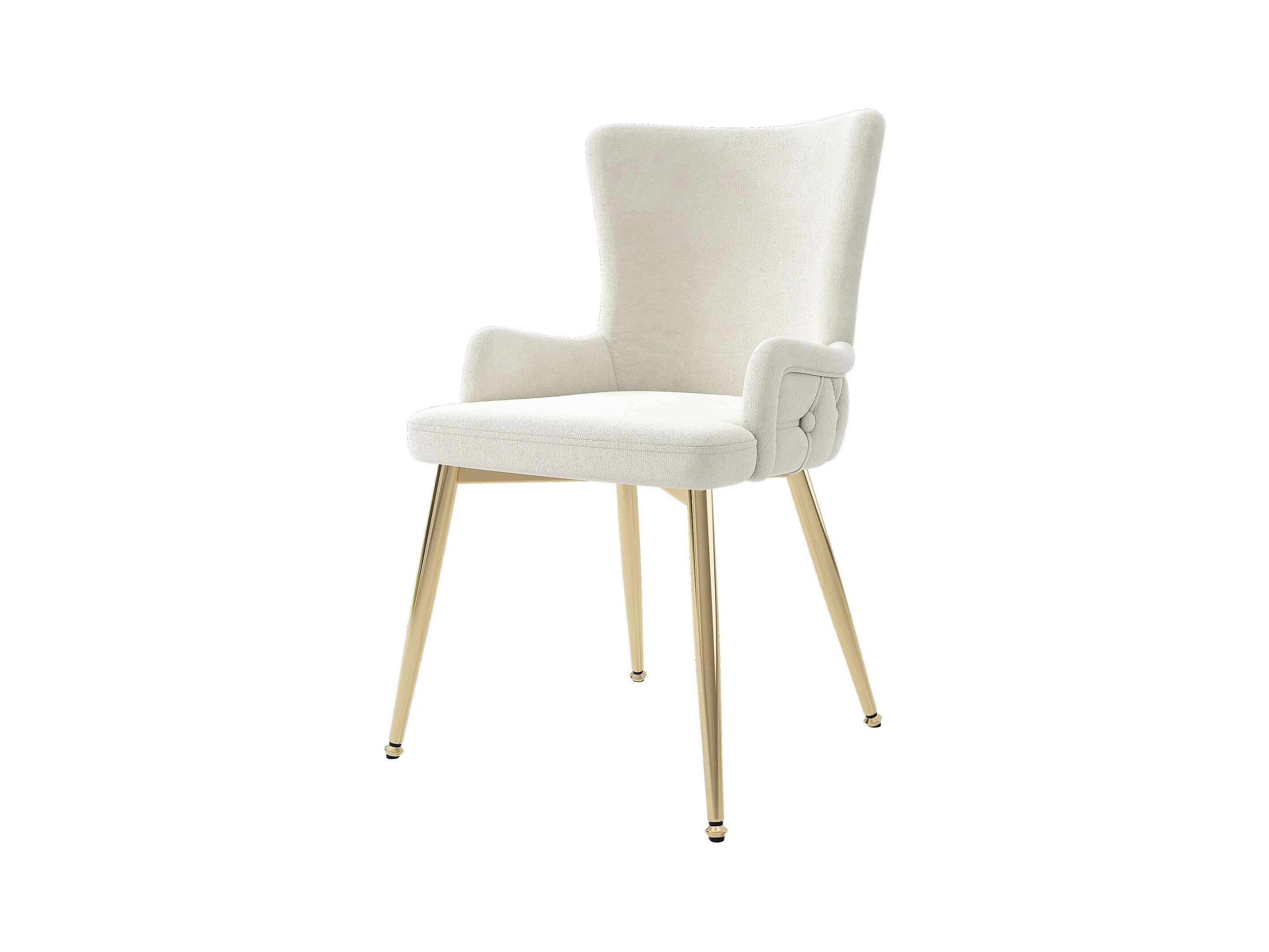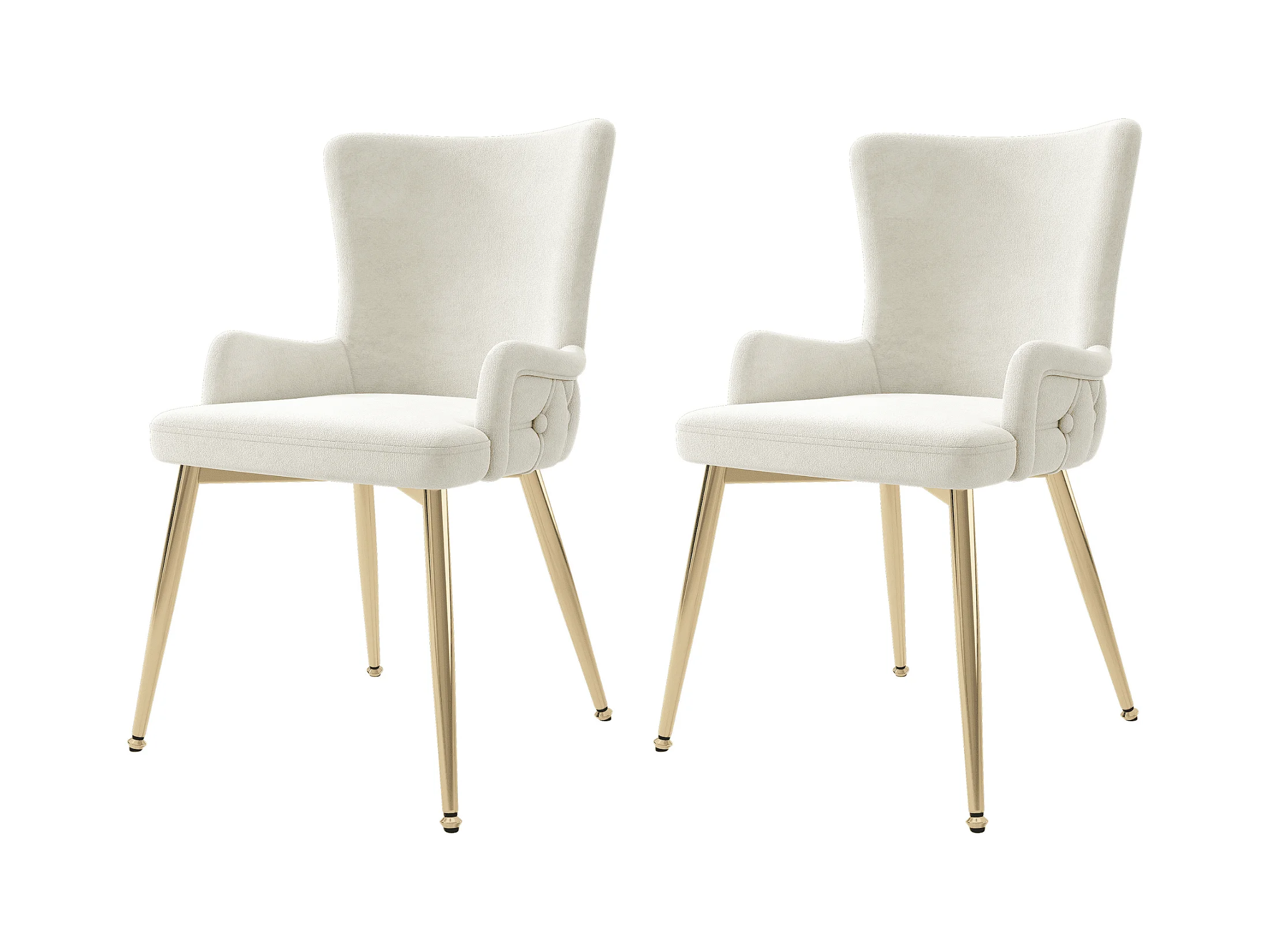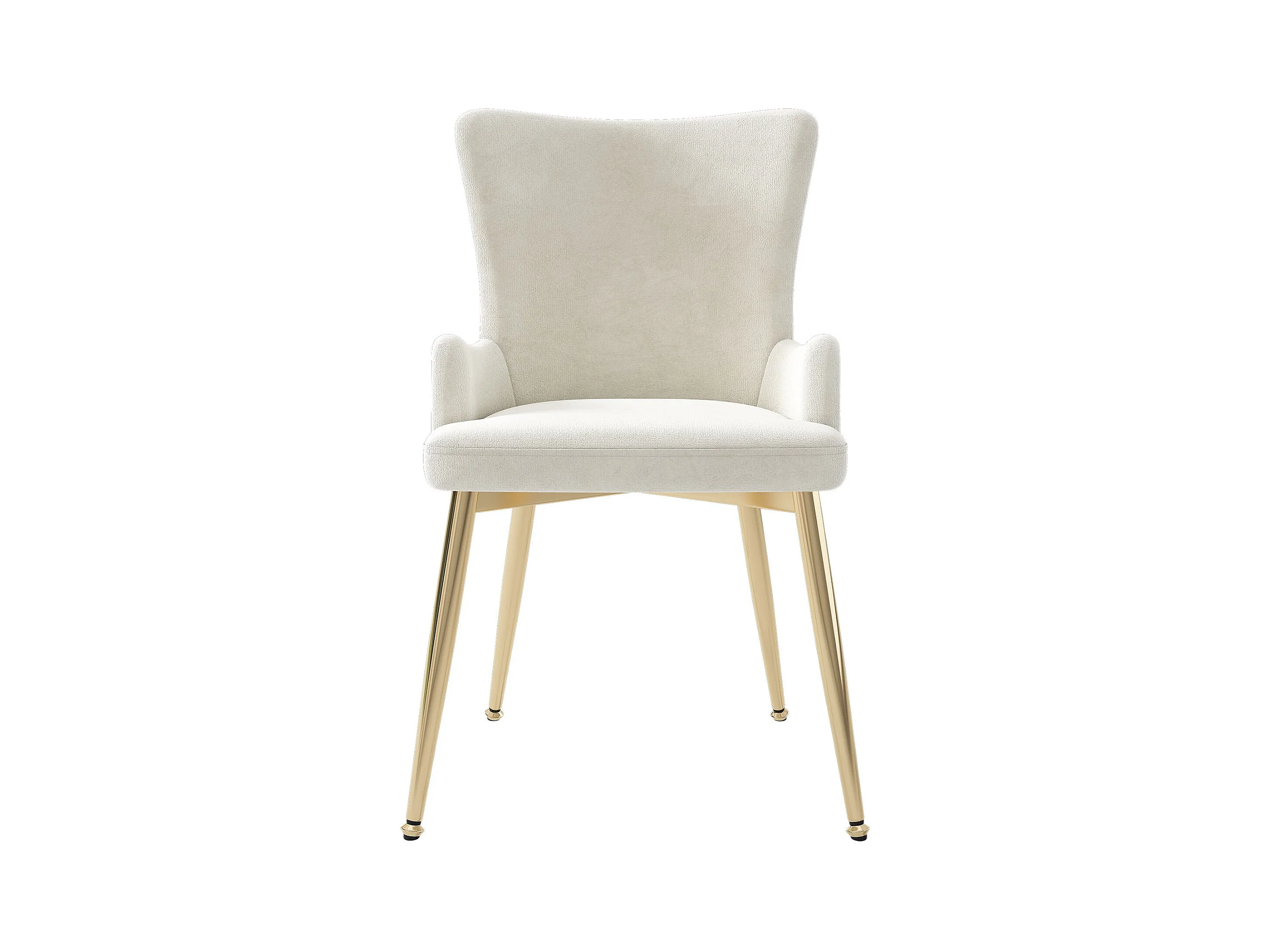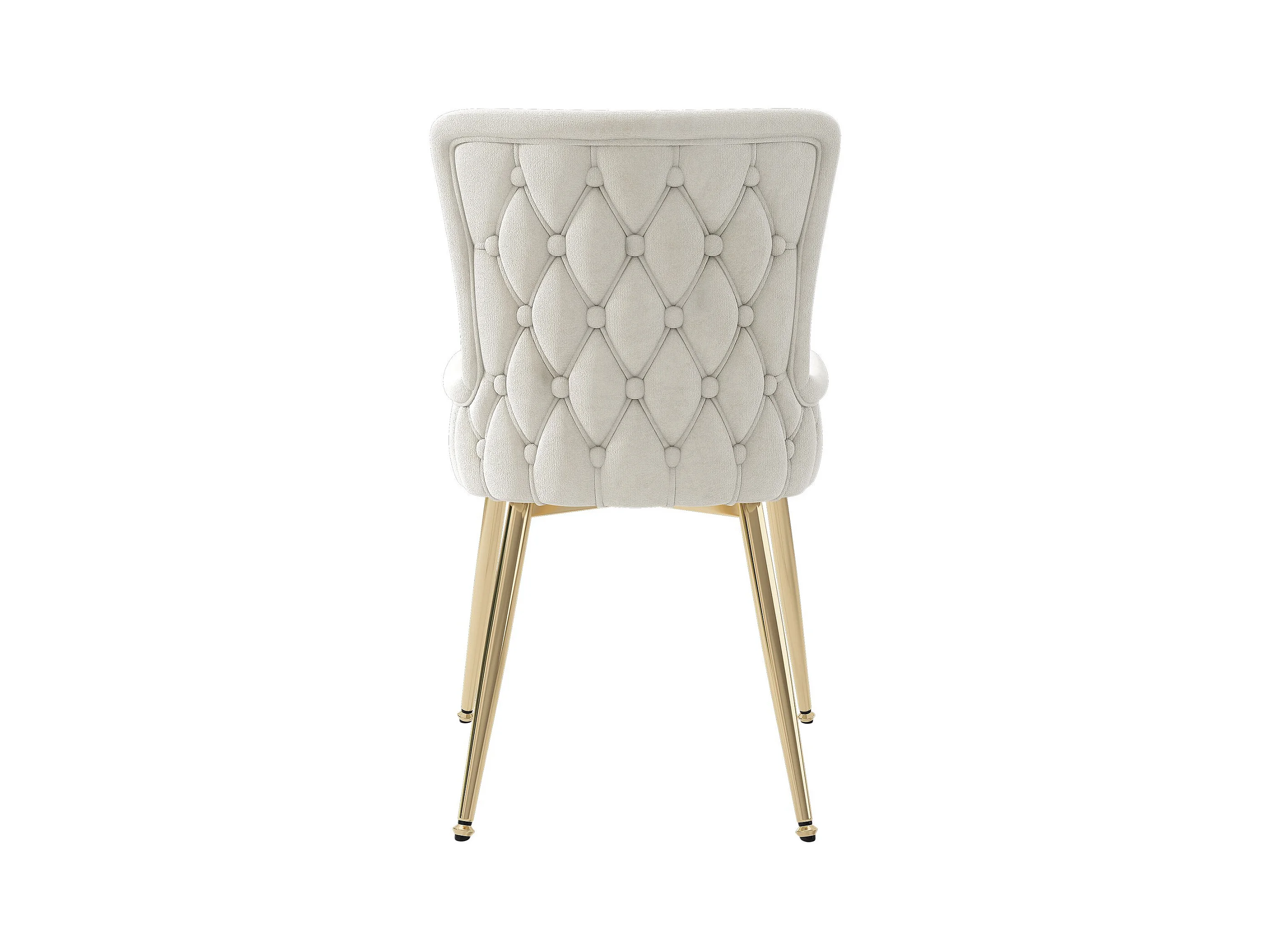 Lot de 2 chaises de salle à manger, velours beige, chaise avec dossier rembourré et pieds dorés, pour salon et chambre
