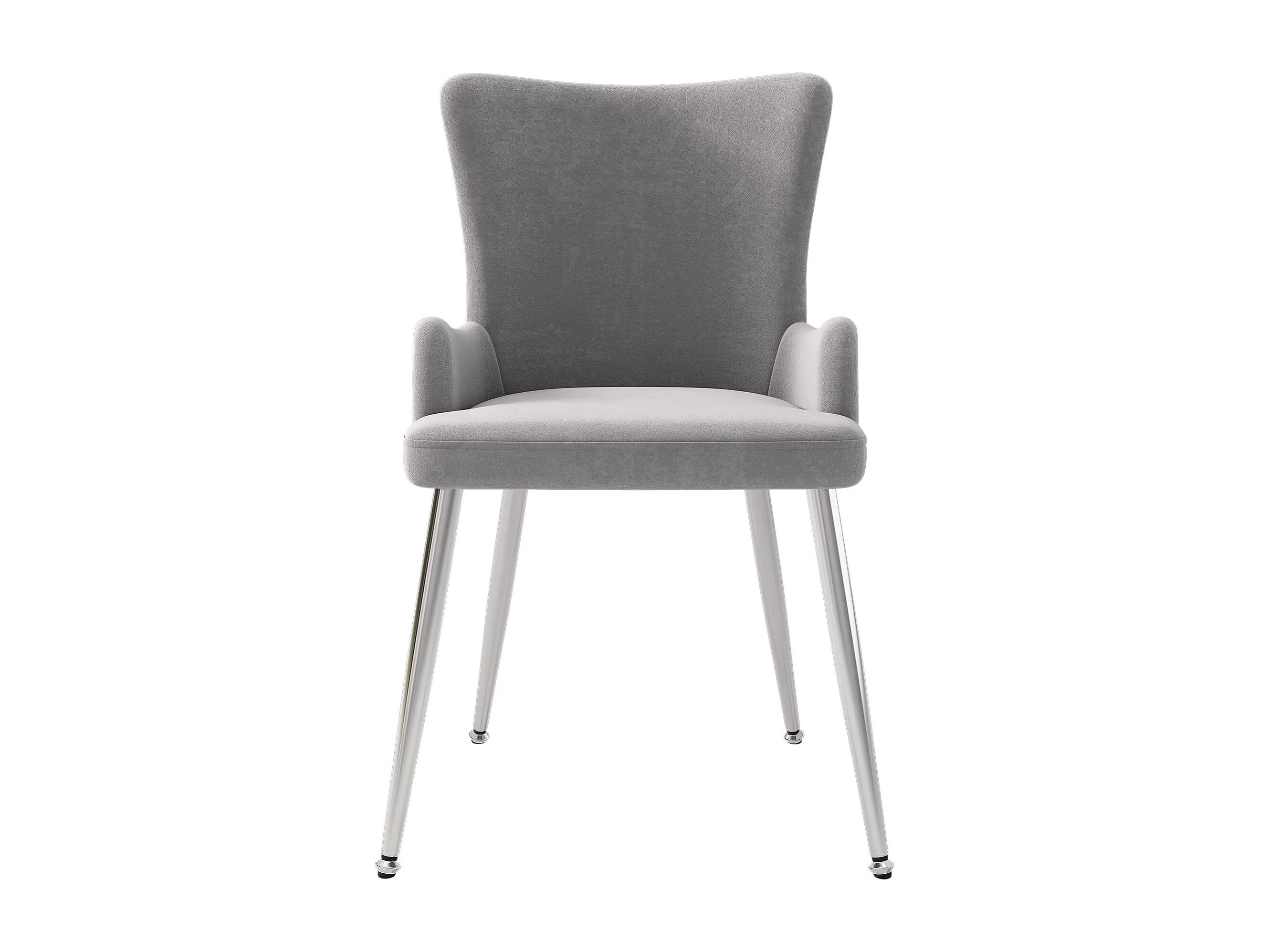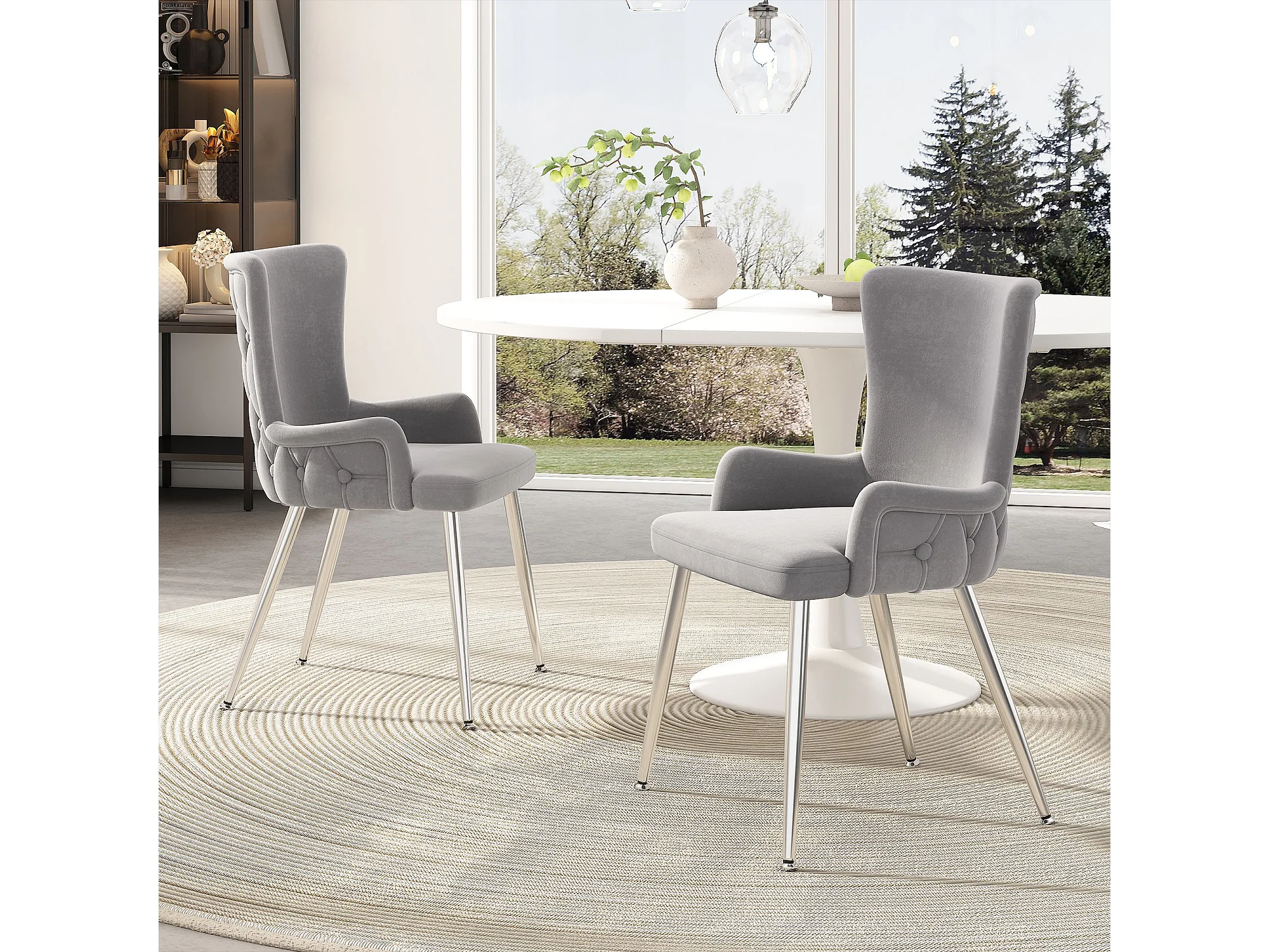 Lot de 2 chaises de salle à manger, velours gris, chaise avec dossier rembourré et pieds argentés, pour chambre et salon
