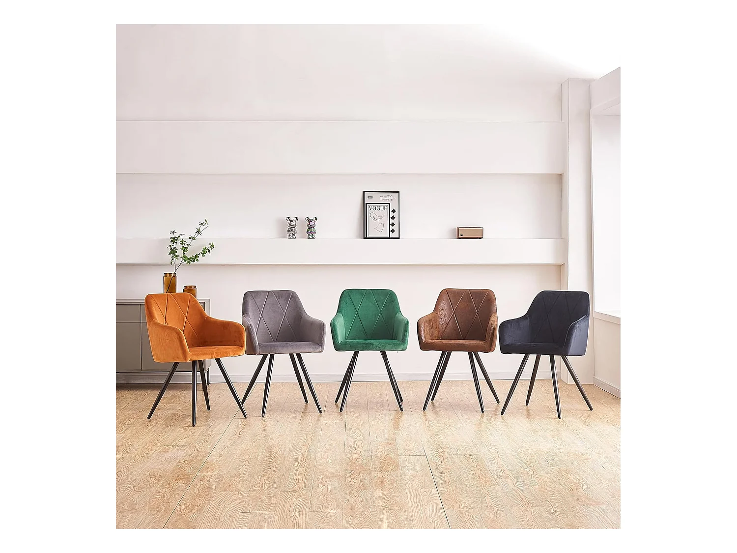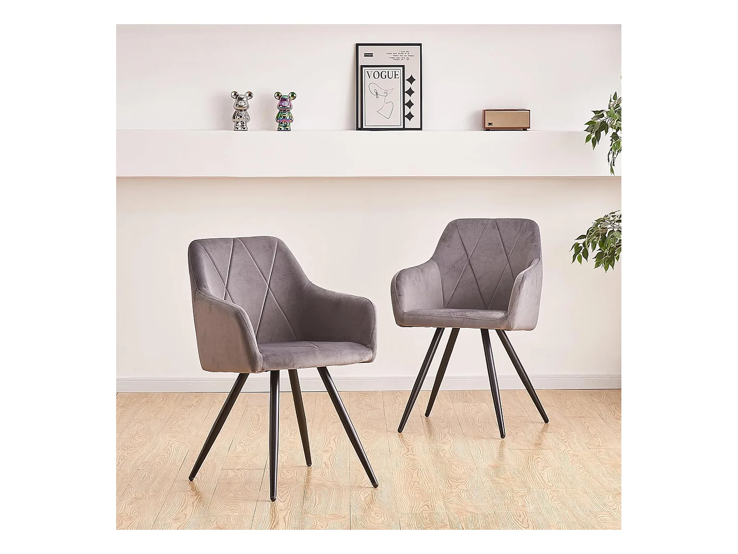 Lot de 2 Chaises en Velours Scandinaves avec Dossier et Accoudoirs Capitonnés, pour Bureau,Cuisine (2, Gris)