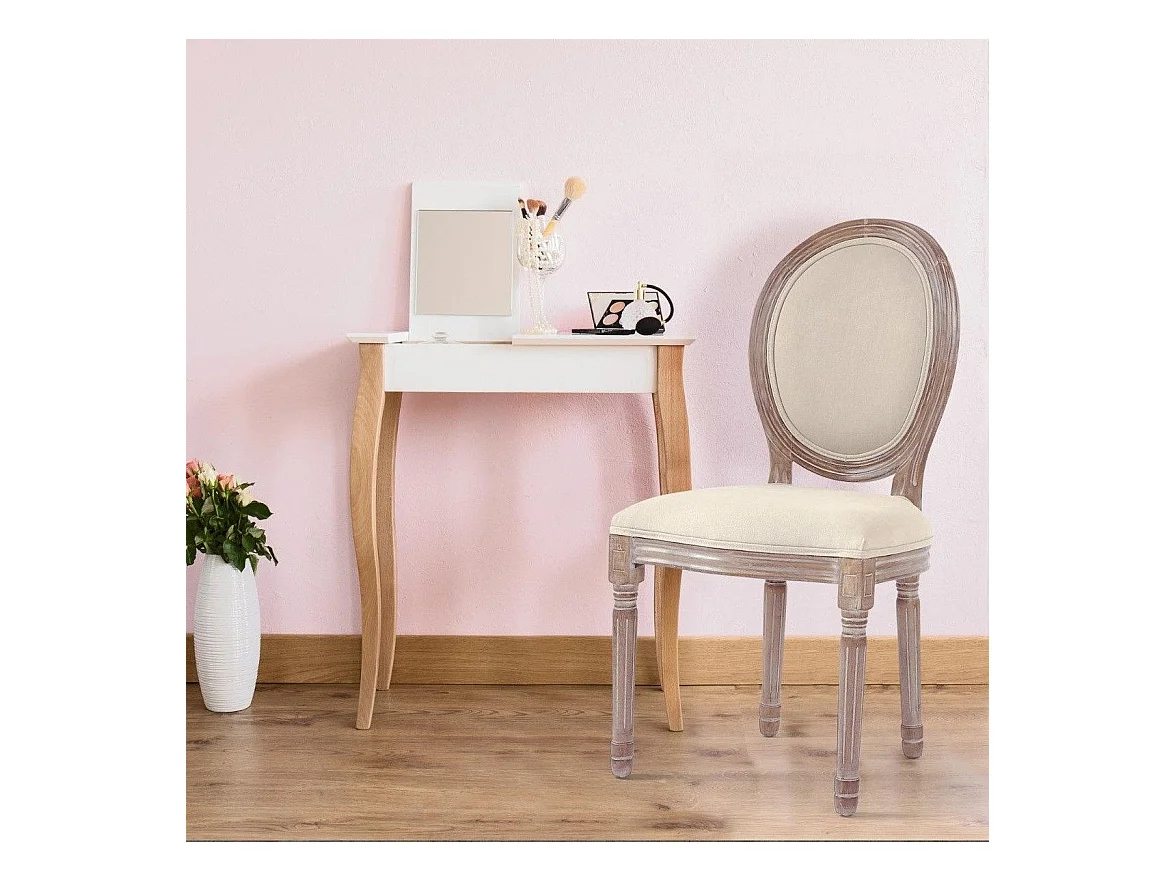 Lot de 2 Chaises Médaillon Tissu "Versailles" 96cm Beige & Naturel