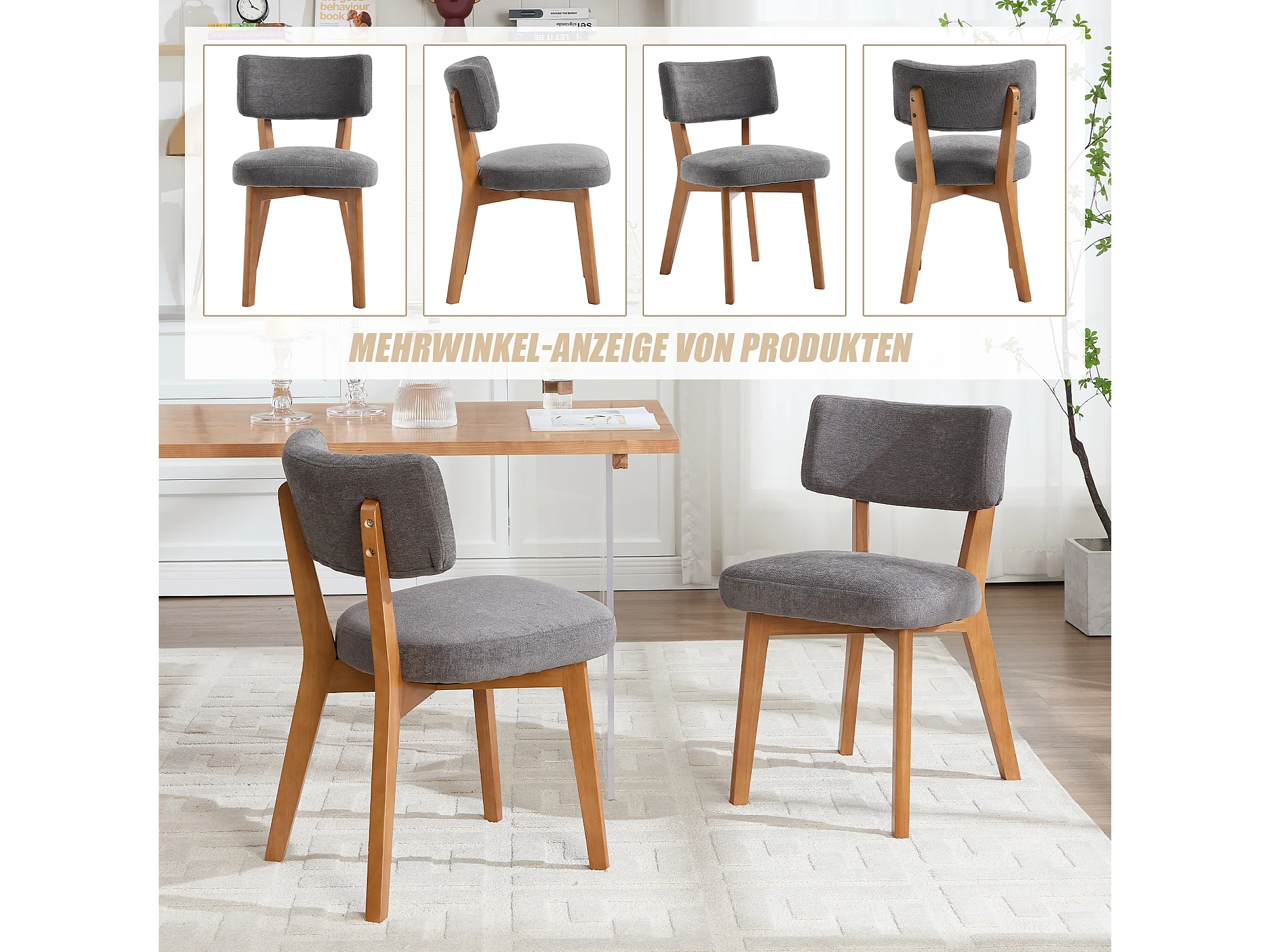 Lot de 2 chaises en bois - coussin gris - élégantes et confortables - parfaites pour salle à manger ou cuisine