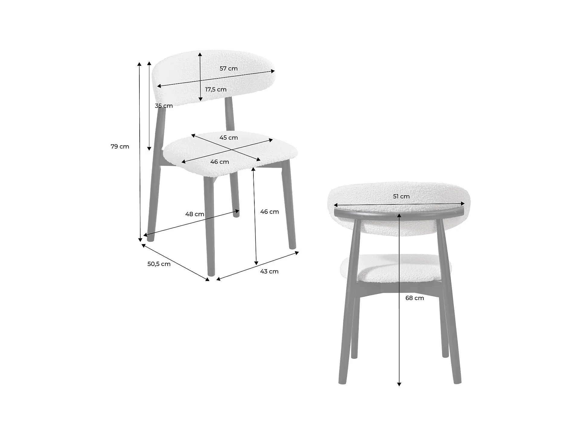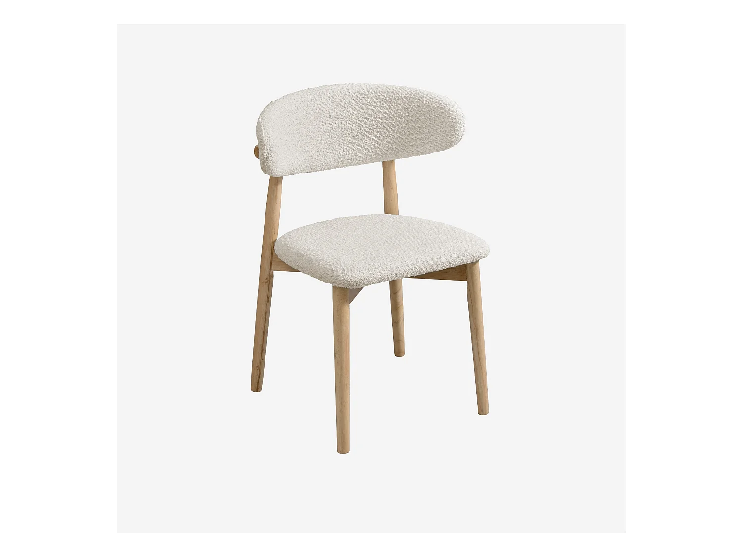 Lot de 2 chaises en bois d'hévéa naturel et tissu bouclette blanc crème
