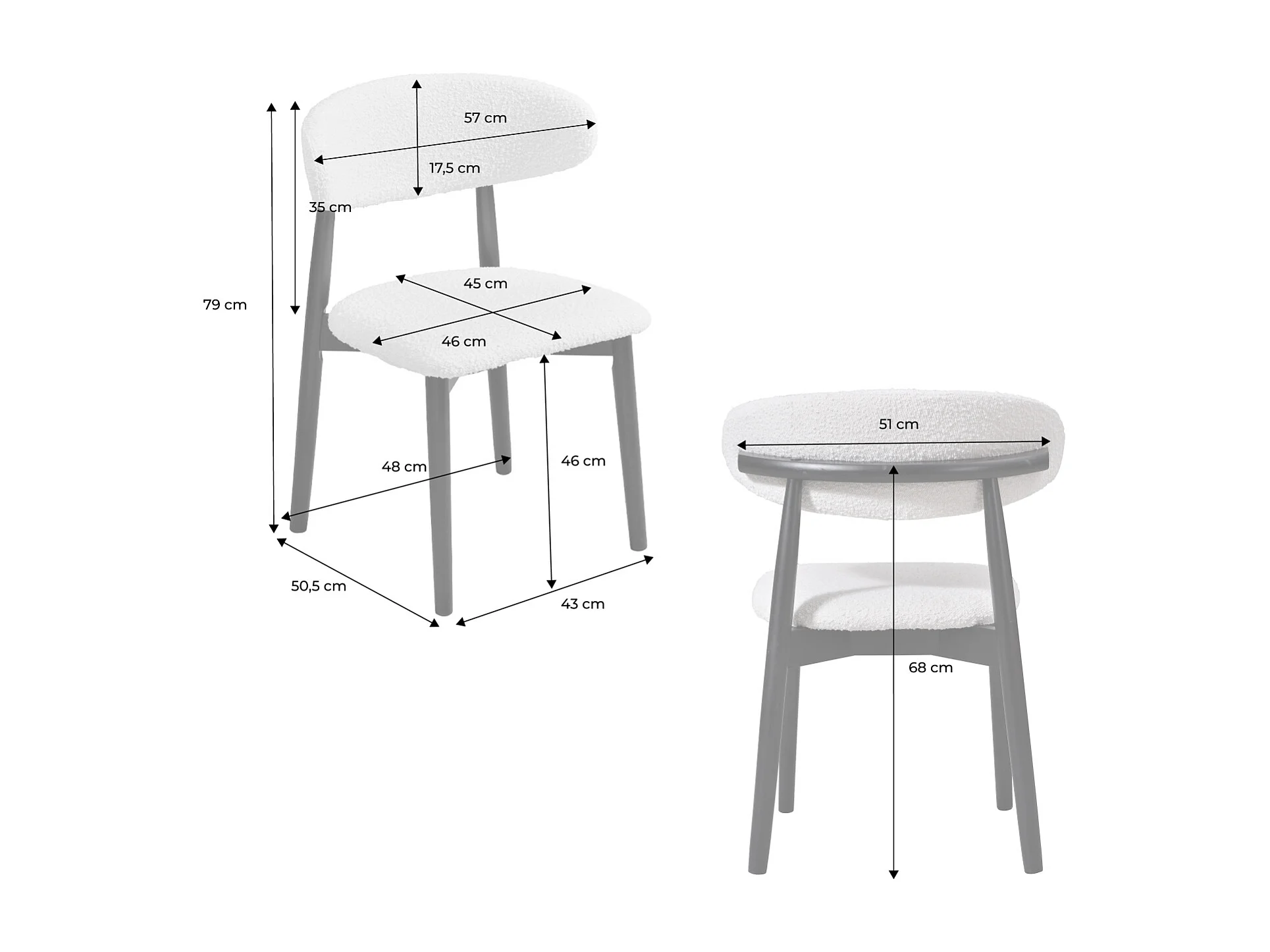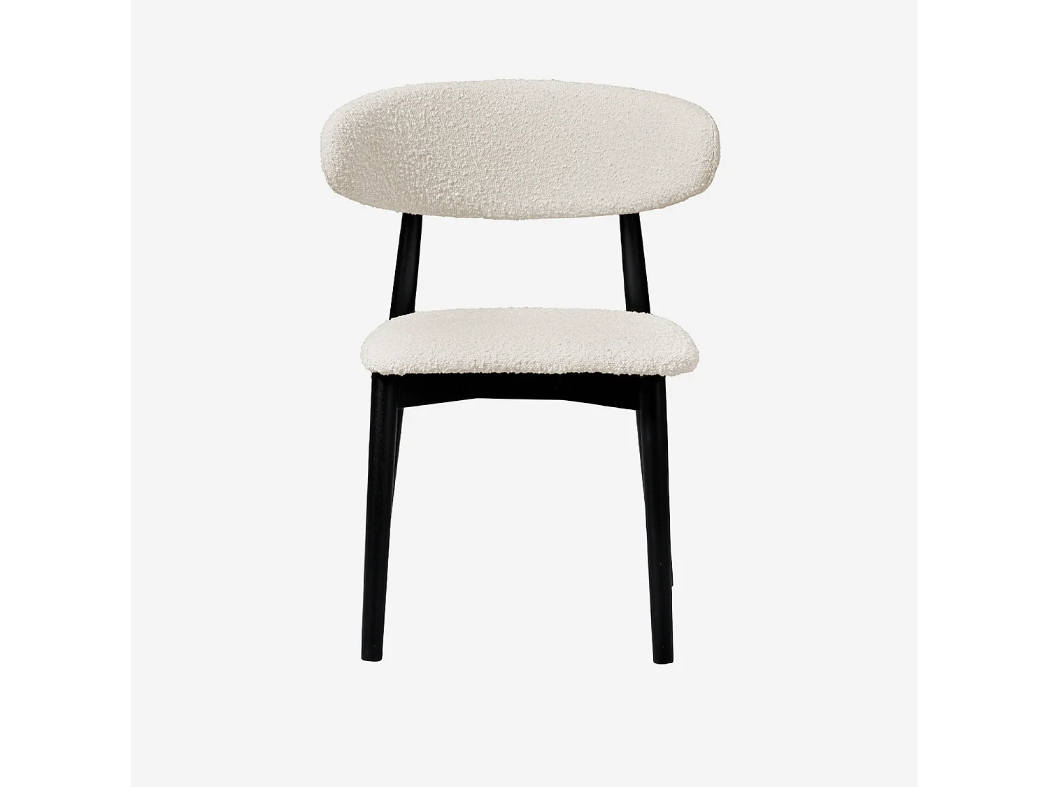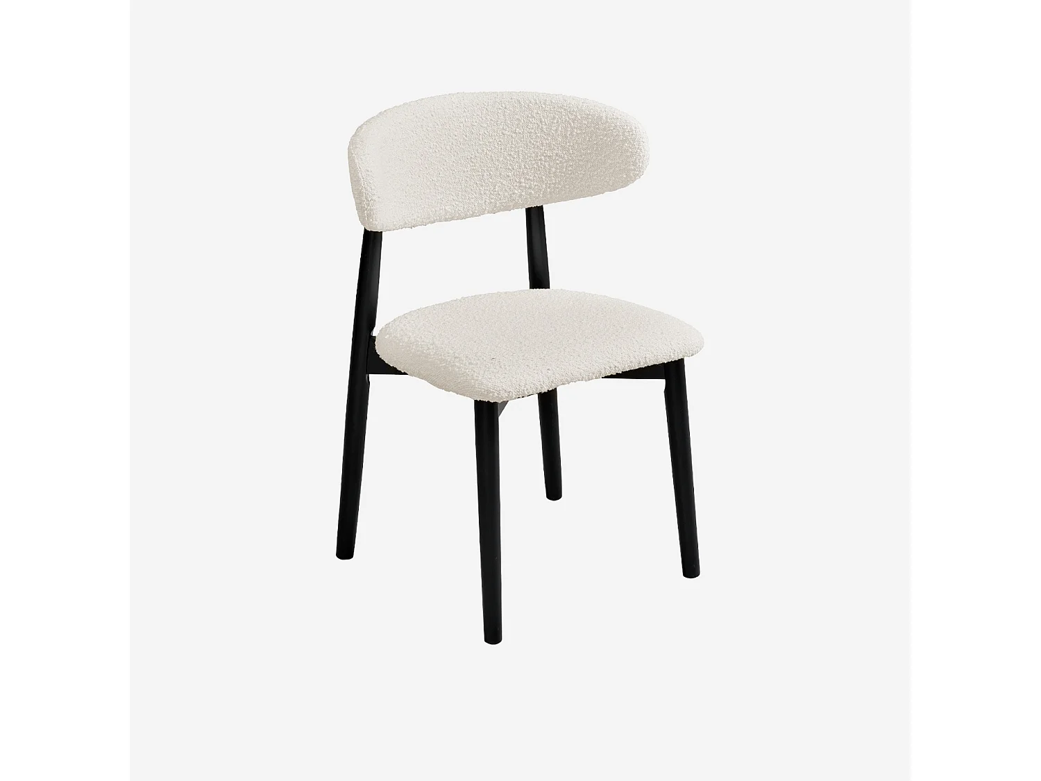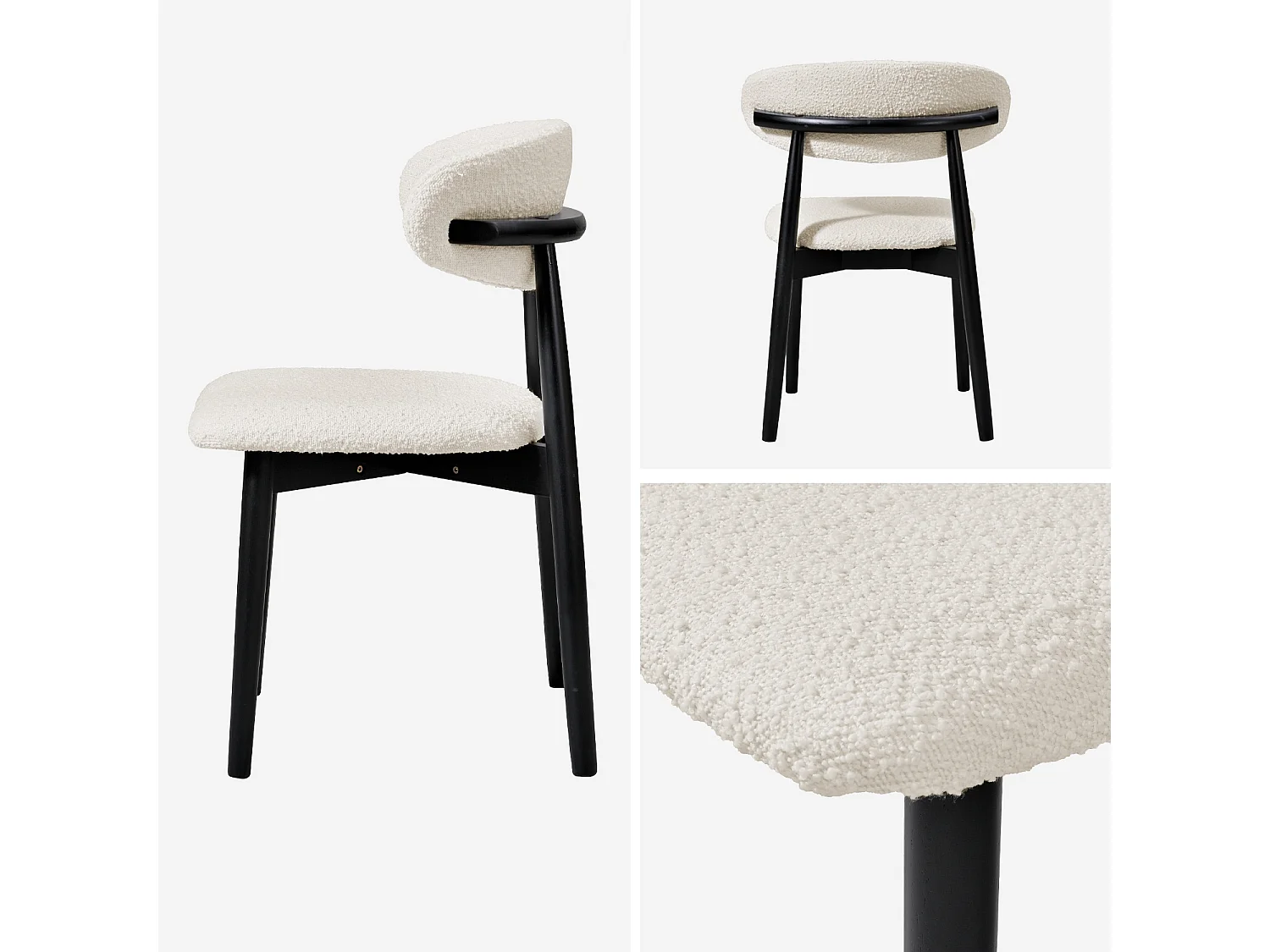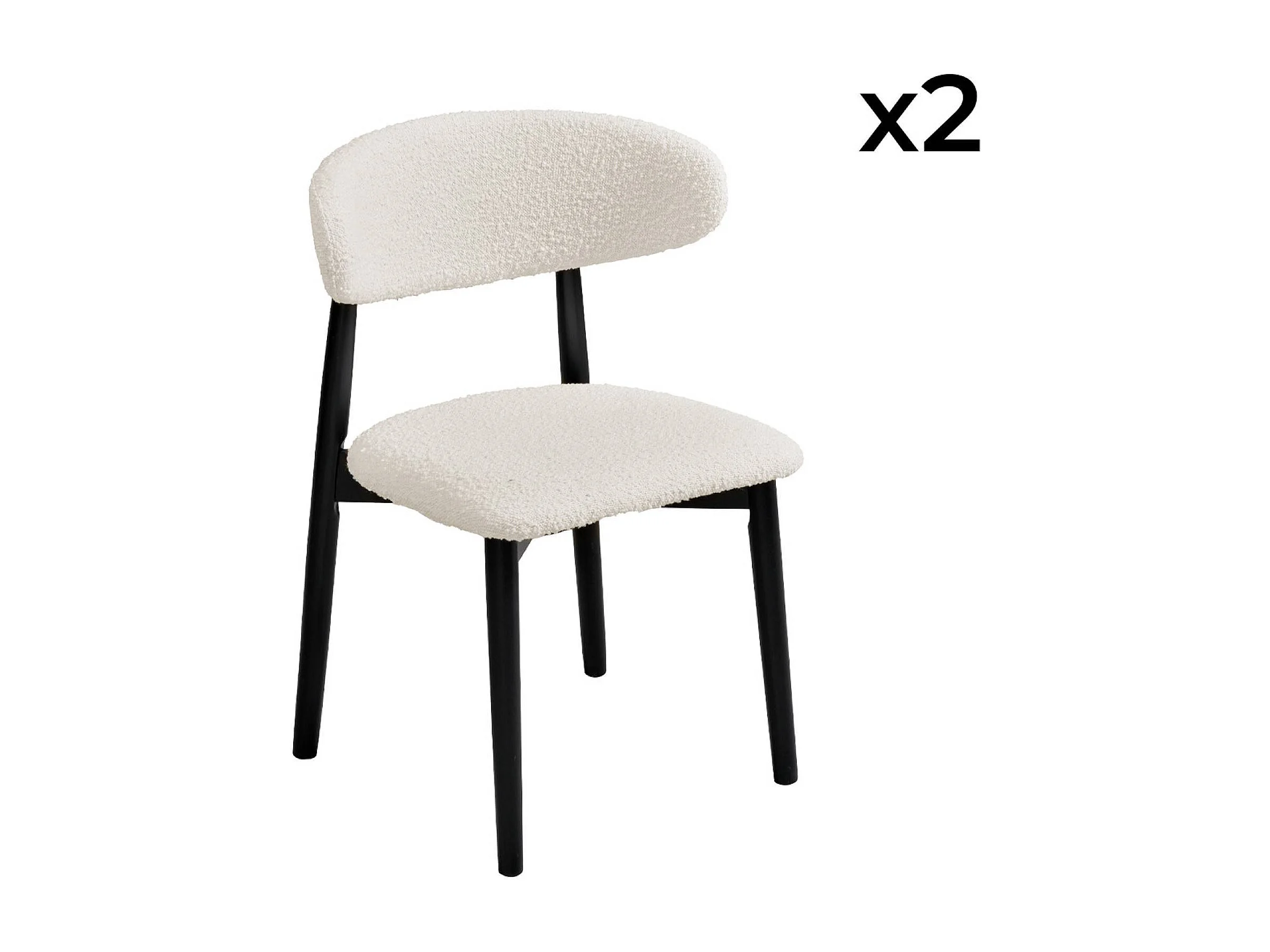 Lot de 2 chaises en bois d'hévéa noir et tissu bouclette blanc crème
