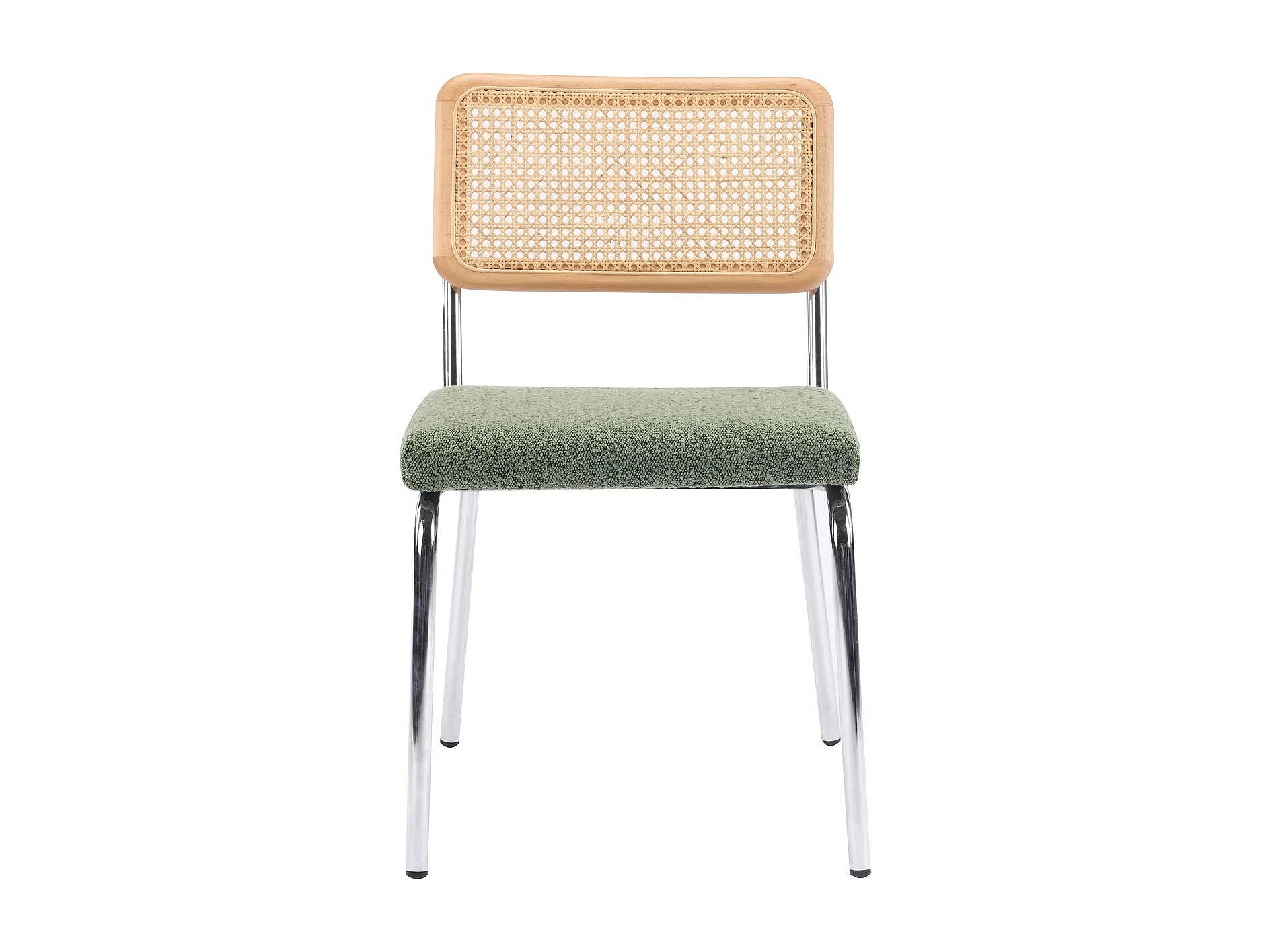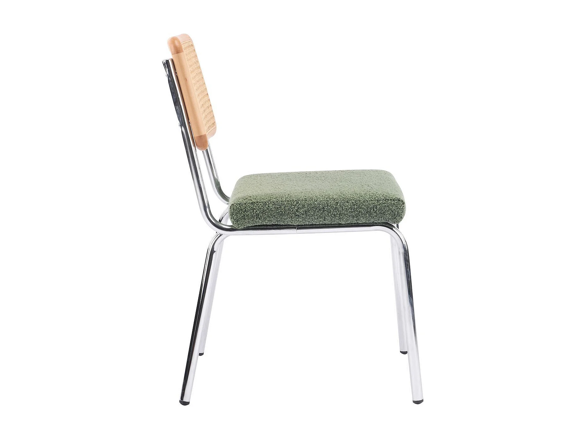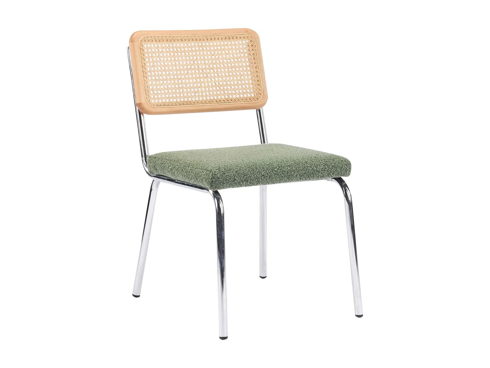 Lot de 2 chaises en métal chromé, cannage naturel et tissu bouclé vert - Paula