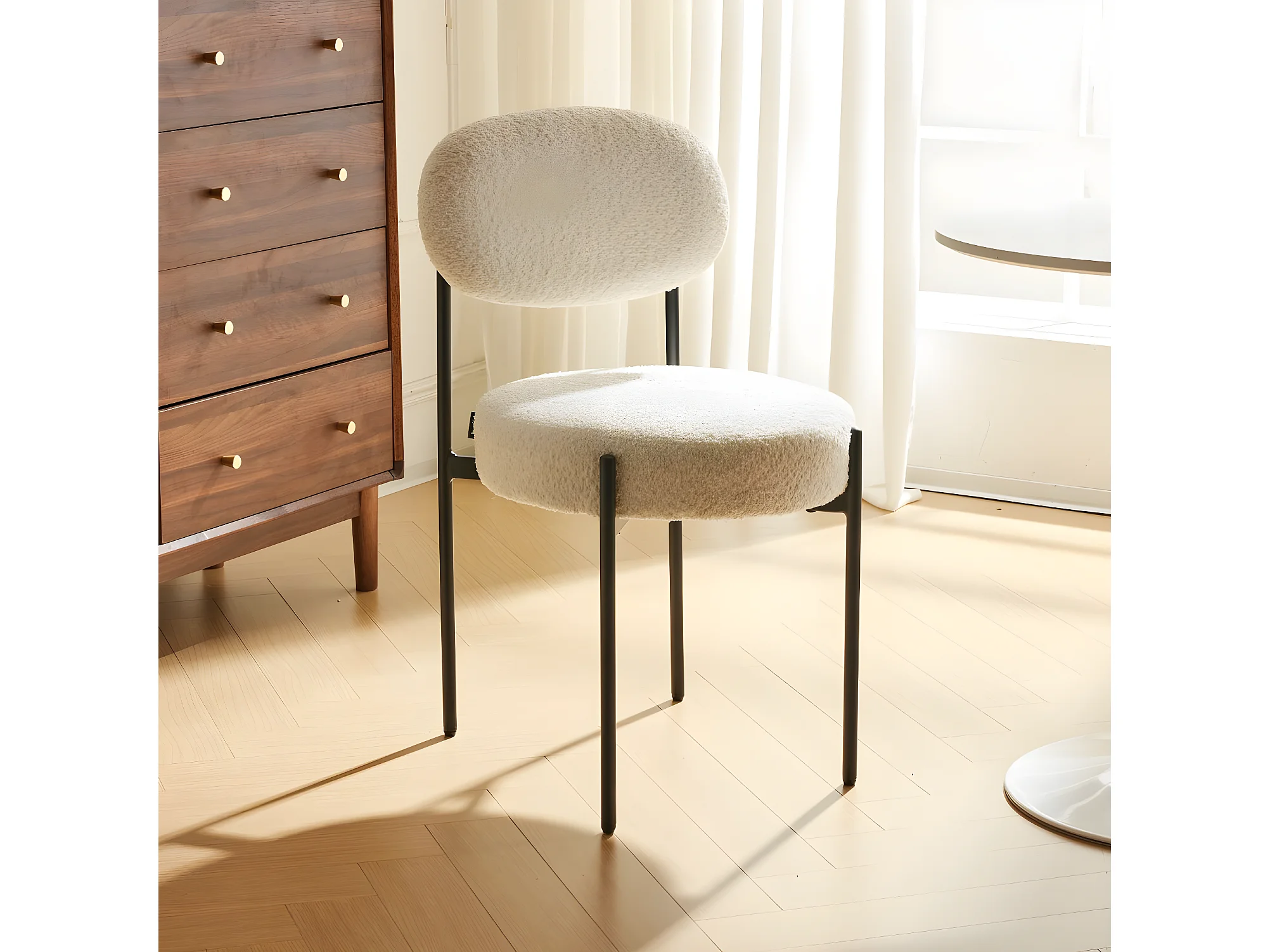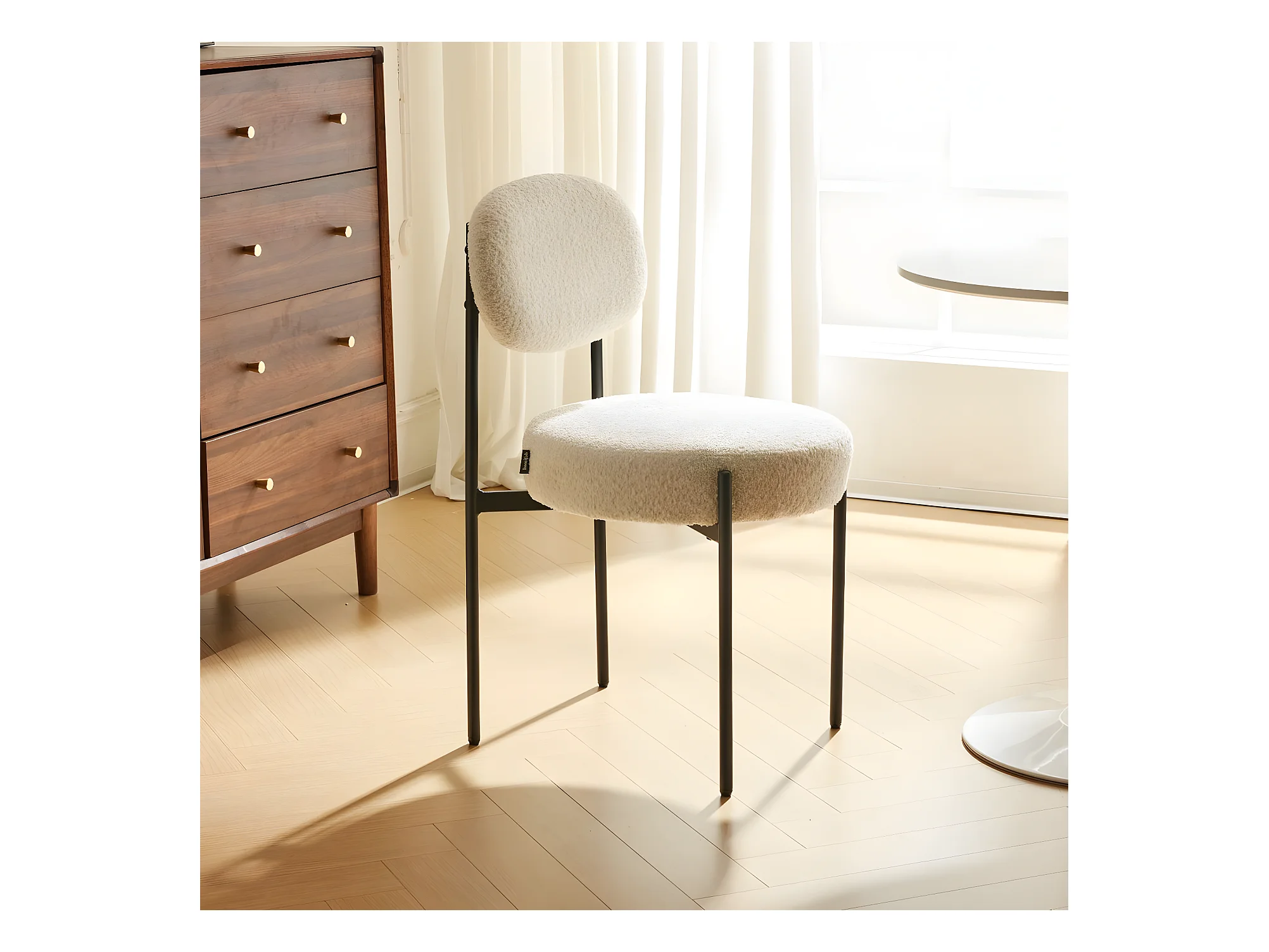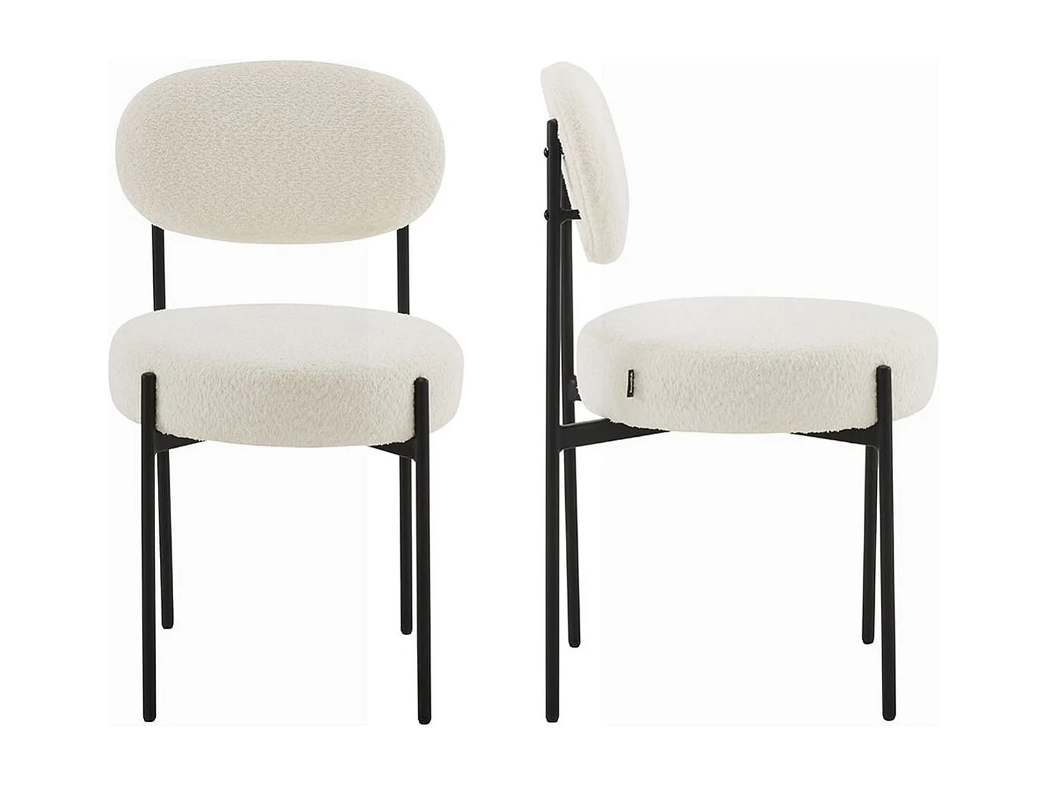 Lot de 2 chaises en tissu bouclé écru, piètement métal noir - Evora