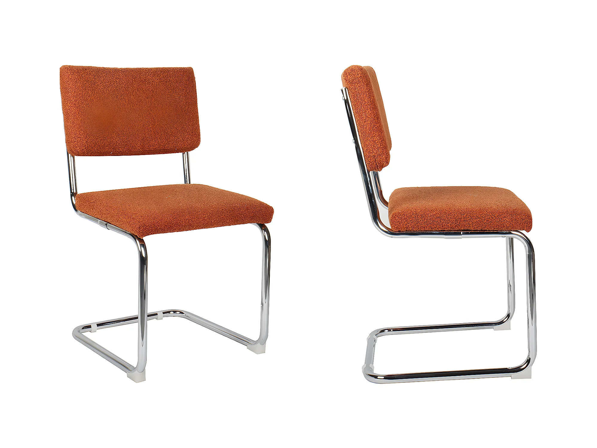 Lot de 2 chaises en tissu bouclé rouille et métal chromé - Dulce