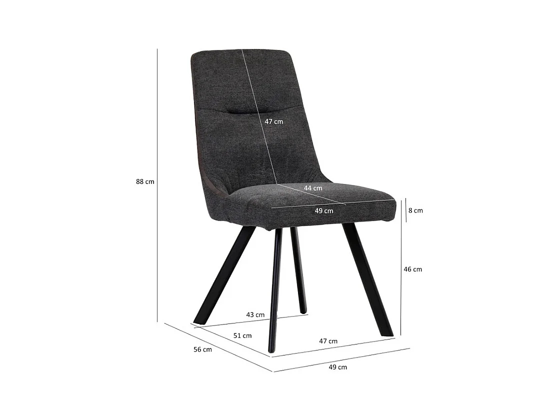Lot de 2 chaises en tissu gris anthracite chiné pieds évasés - MARTA