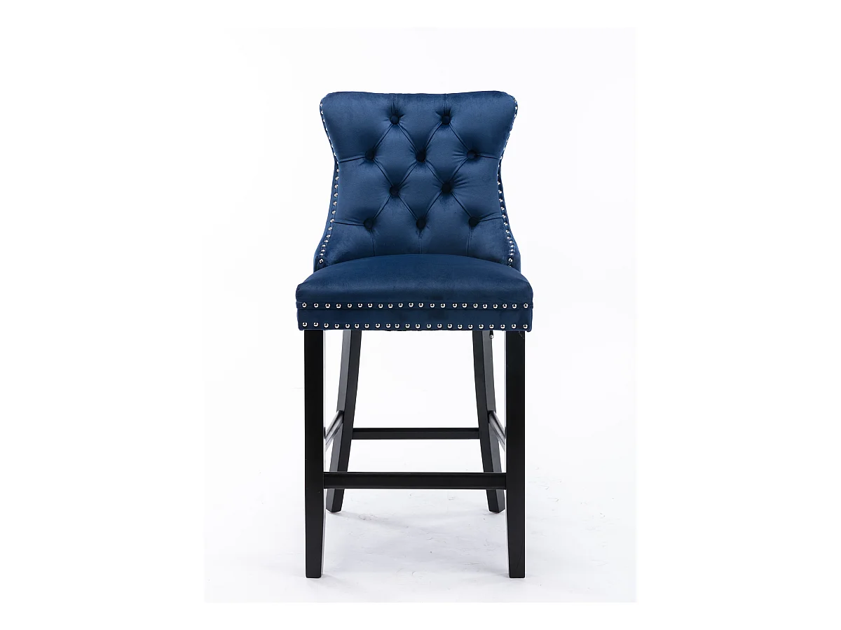 Lot de 2 chaises en velours bleu avec capitonnage à boutons et garniture à têtes de clous, pieds en bois