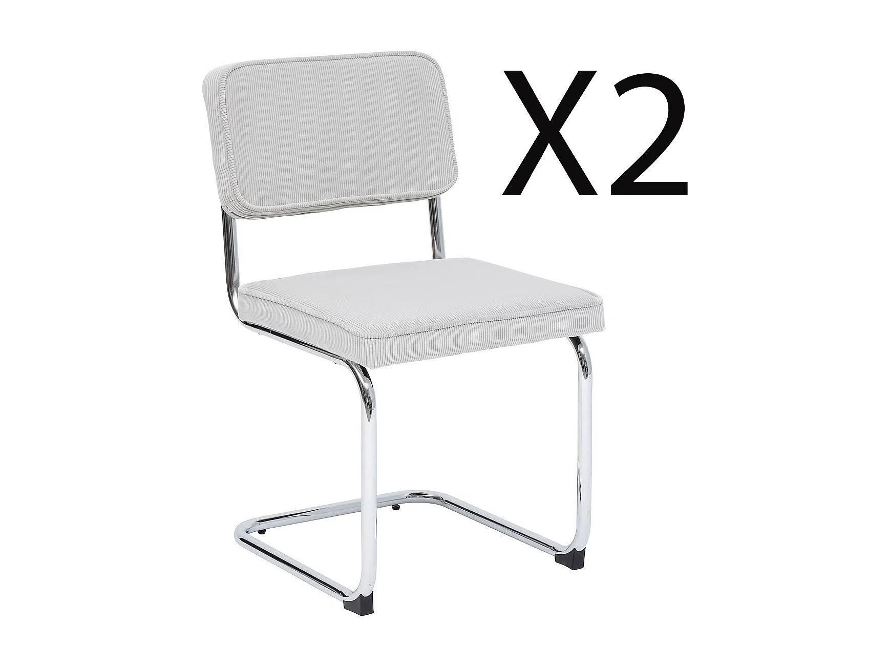 Lot de 2 chaises en velours coloris gris perle et pieds coloris chromé noir - Longueur 49 x Profondeur 57 x Hauteur 83 cm