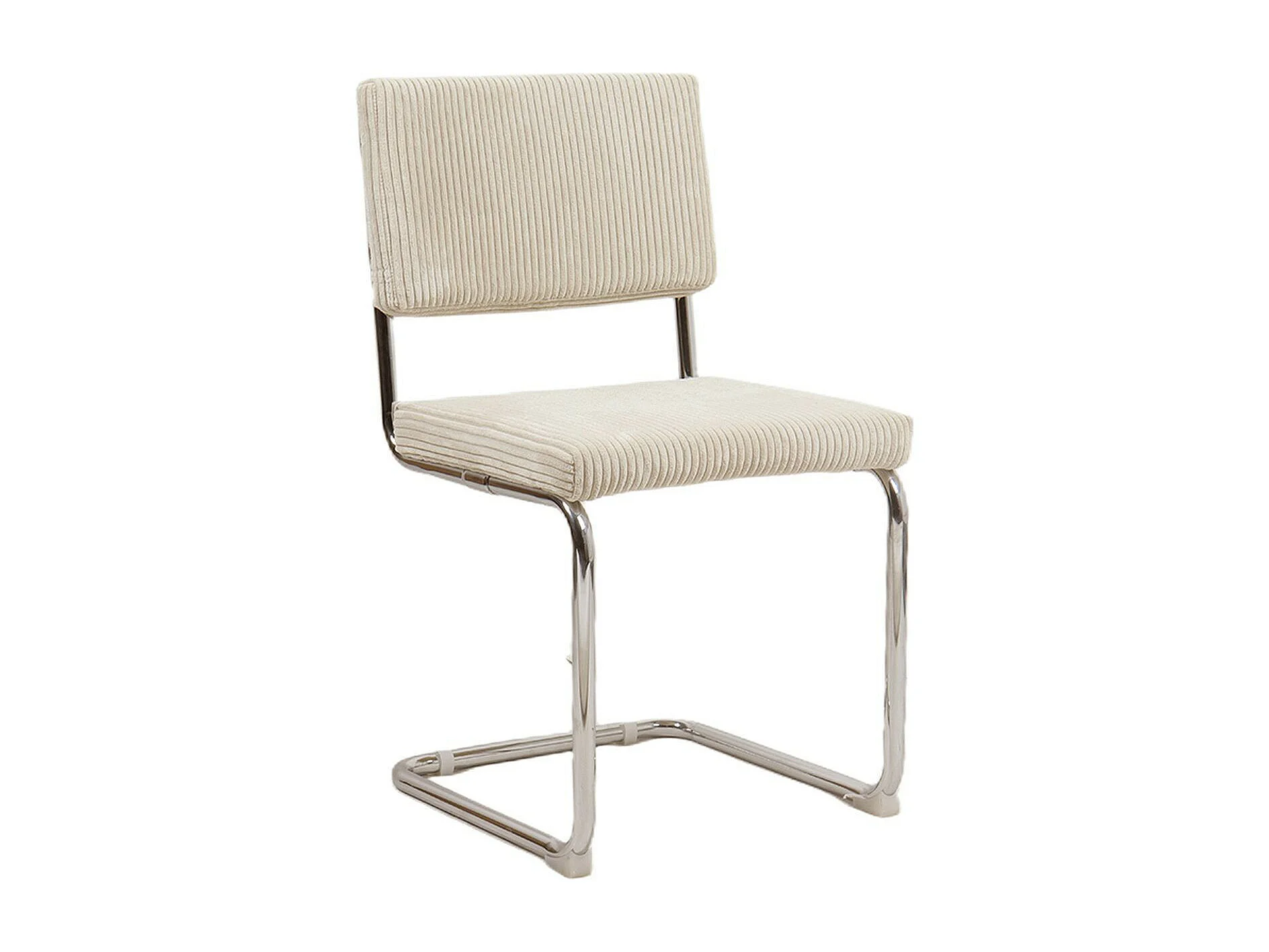 Lot de 2 chaises en velours côtelé beige et métal chromé - Dulce