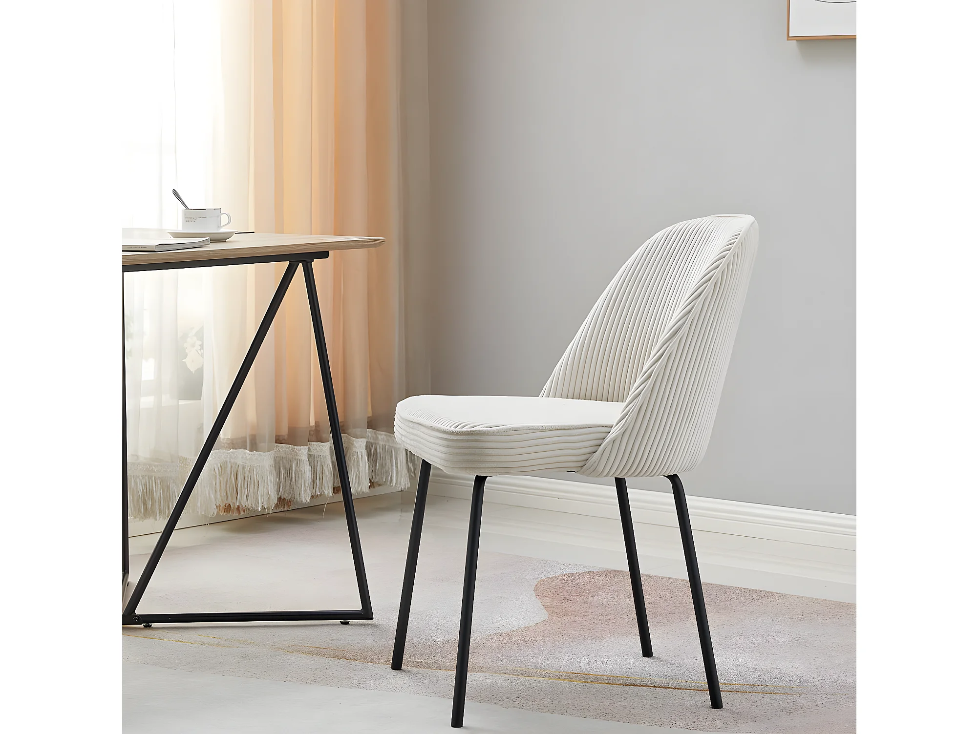Lot de 2 chaises de salle à manger en velours côtelé beige, piètement noir - Olden