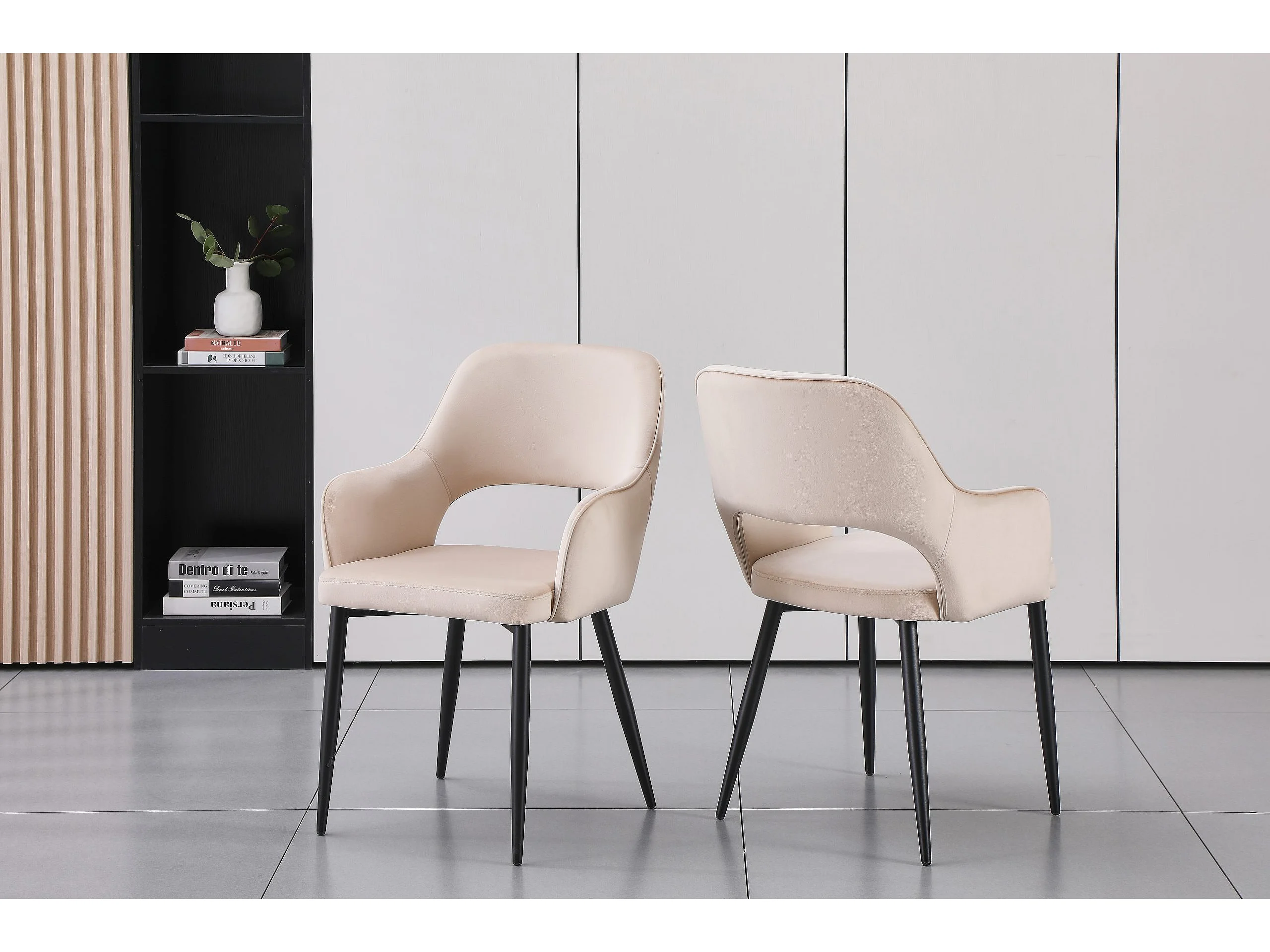 Lot de 2 chaises en velours et métal noir - Beige - GIA