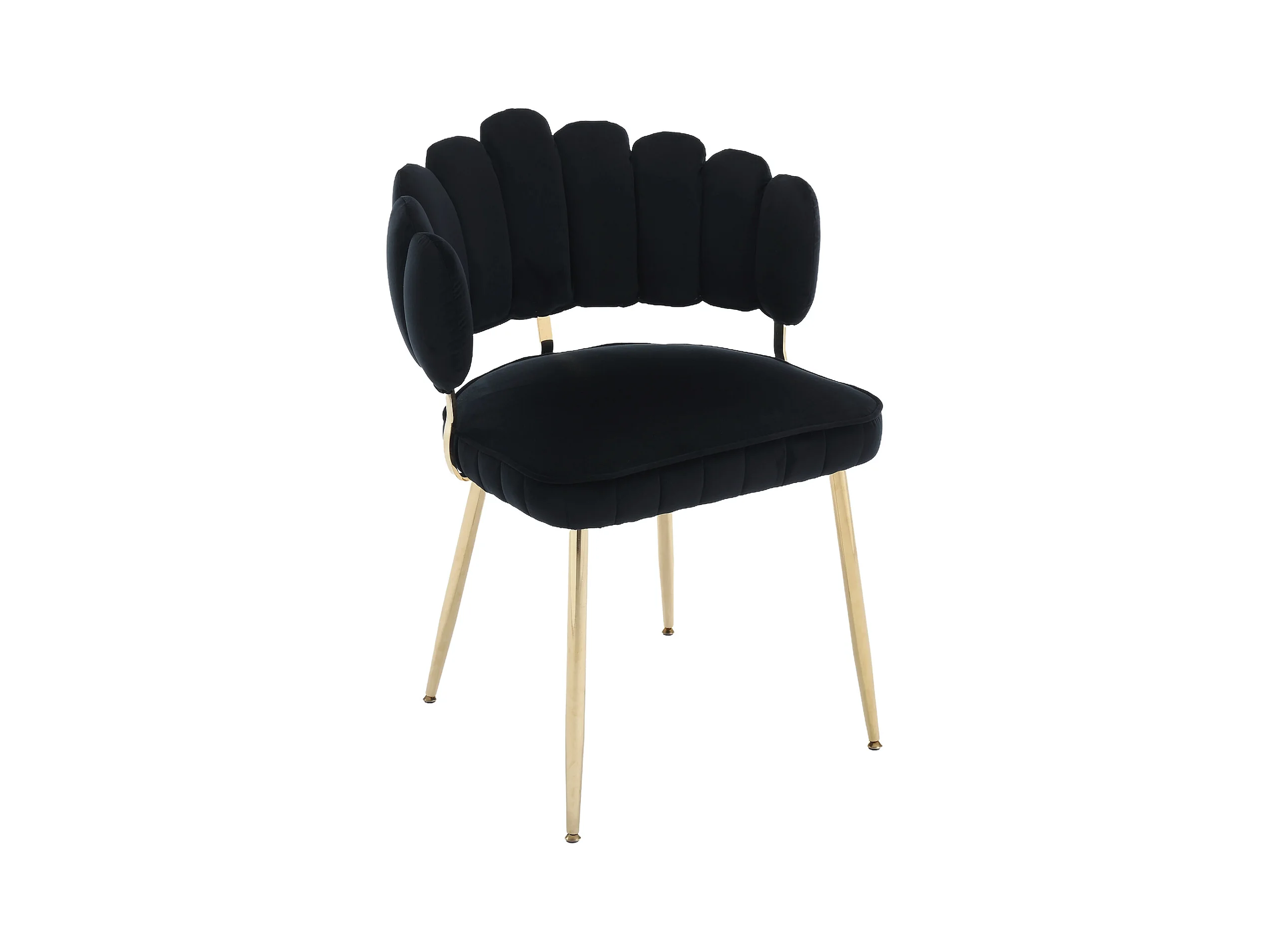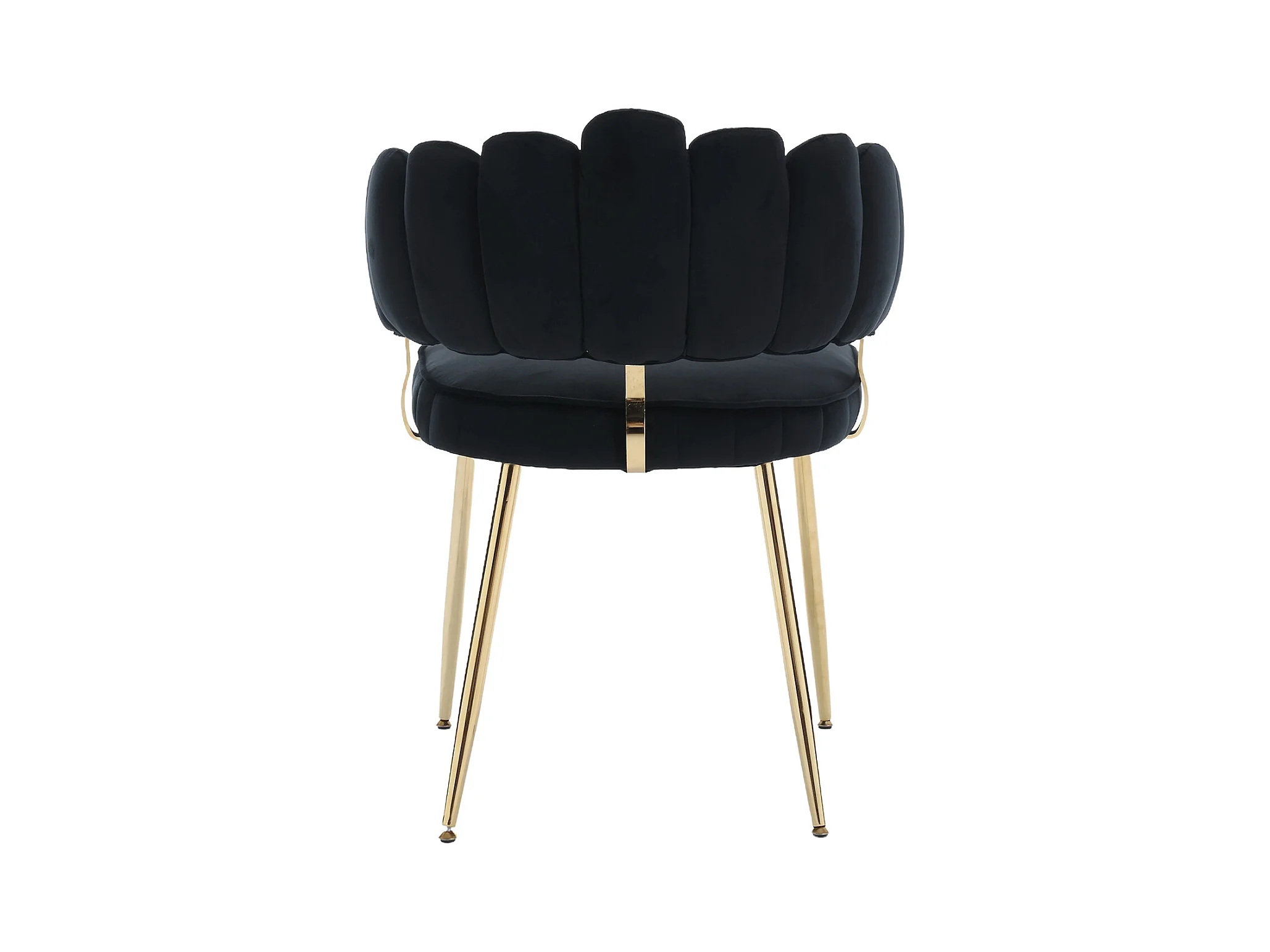 Lot de 2 chaises en velours noir avec pieds dorés et accoudoirs ronds, design en forme de pétale