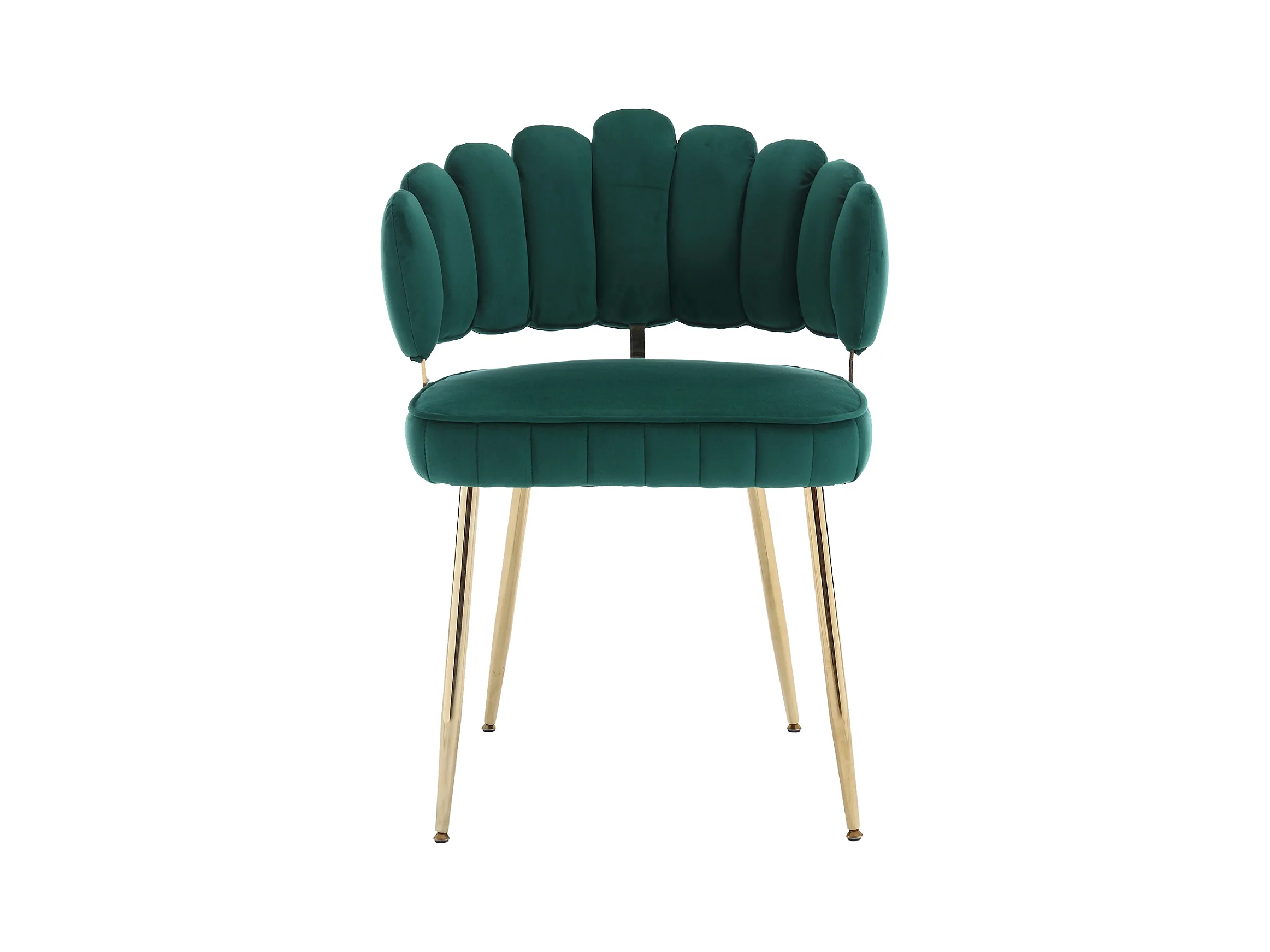 Lot de 2 chaises en velours vert émeraude avec pieds dorés et accoudoirs ronds, design en forme de pétale