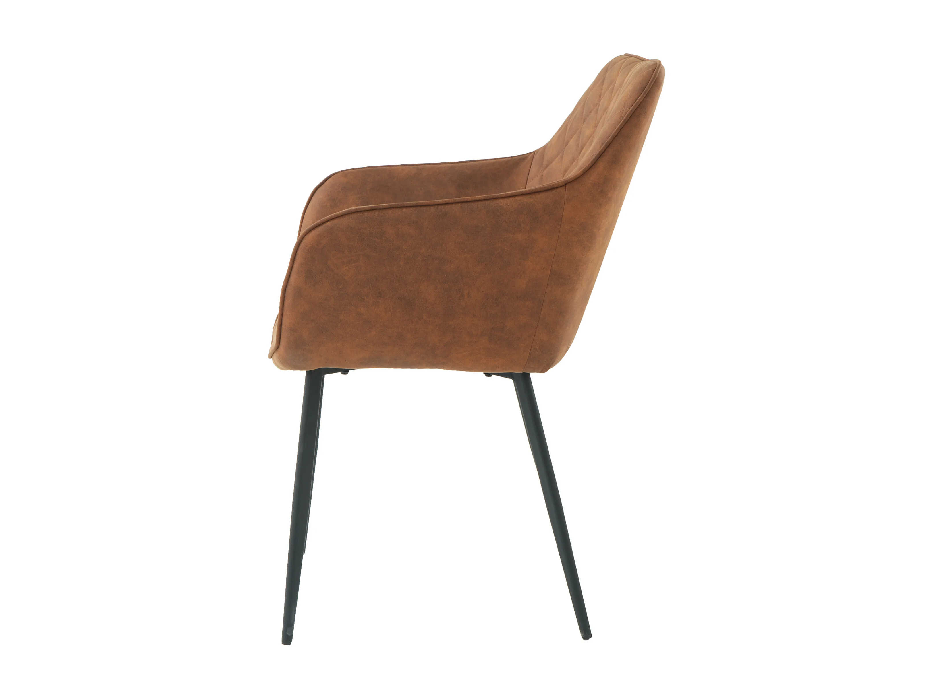 Lot de 2 chaises fauteuils de table avec accoudoirs Rolf en tissu marron pour salle à manger, pieds en métal noir