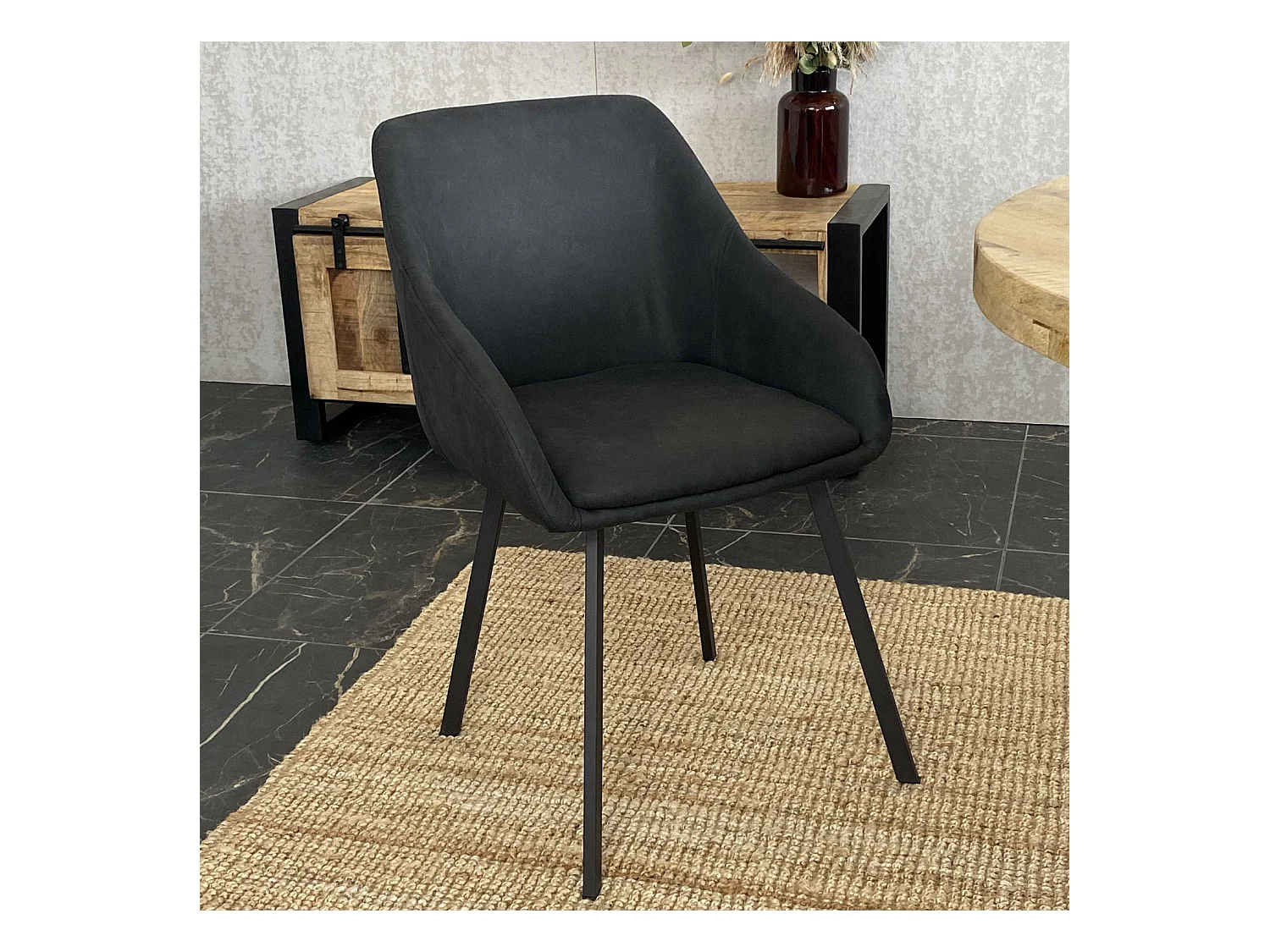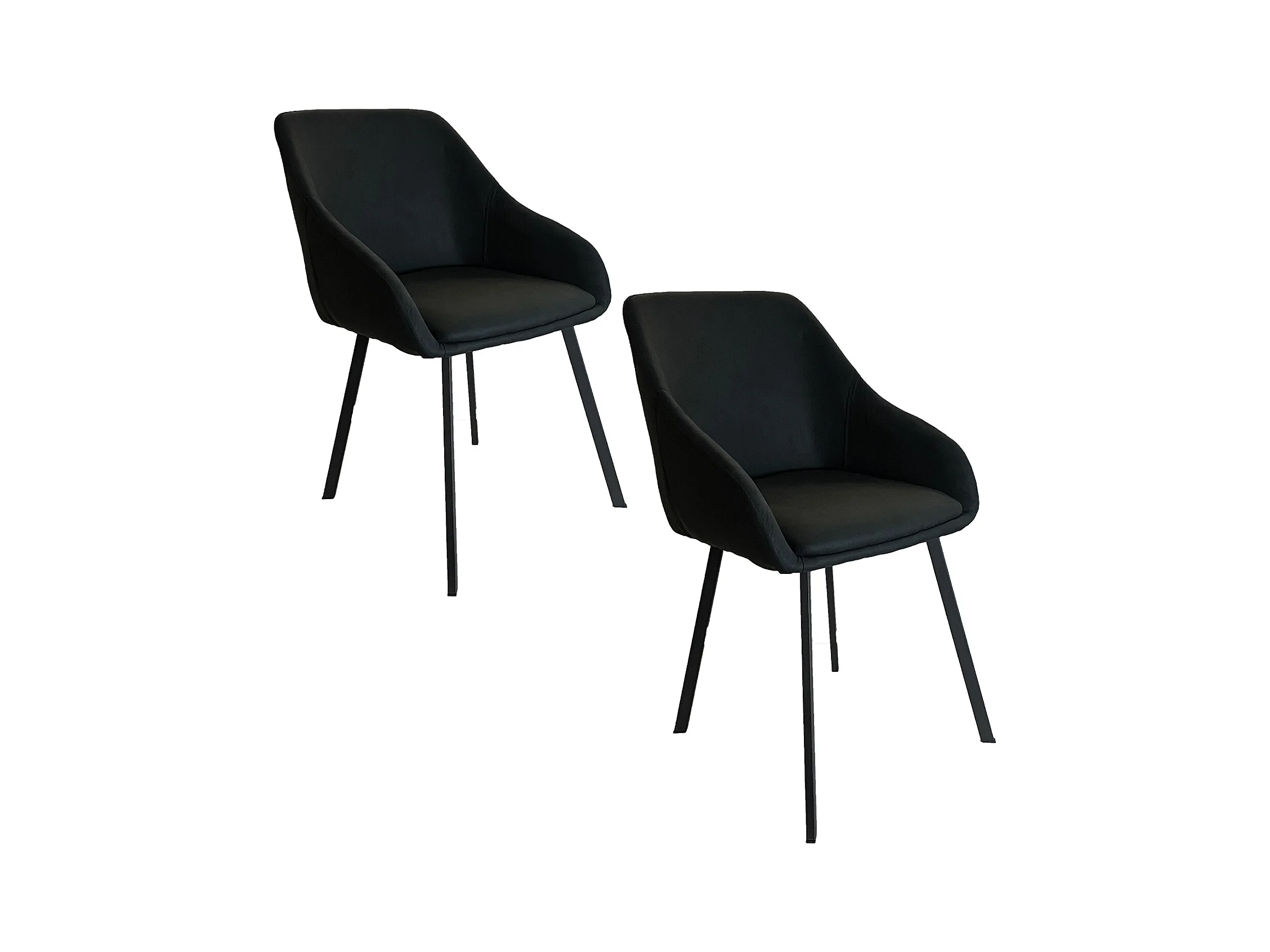 Lot de 2 chaises fauteuils Jena tissu noir pieds métal noir