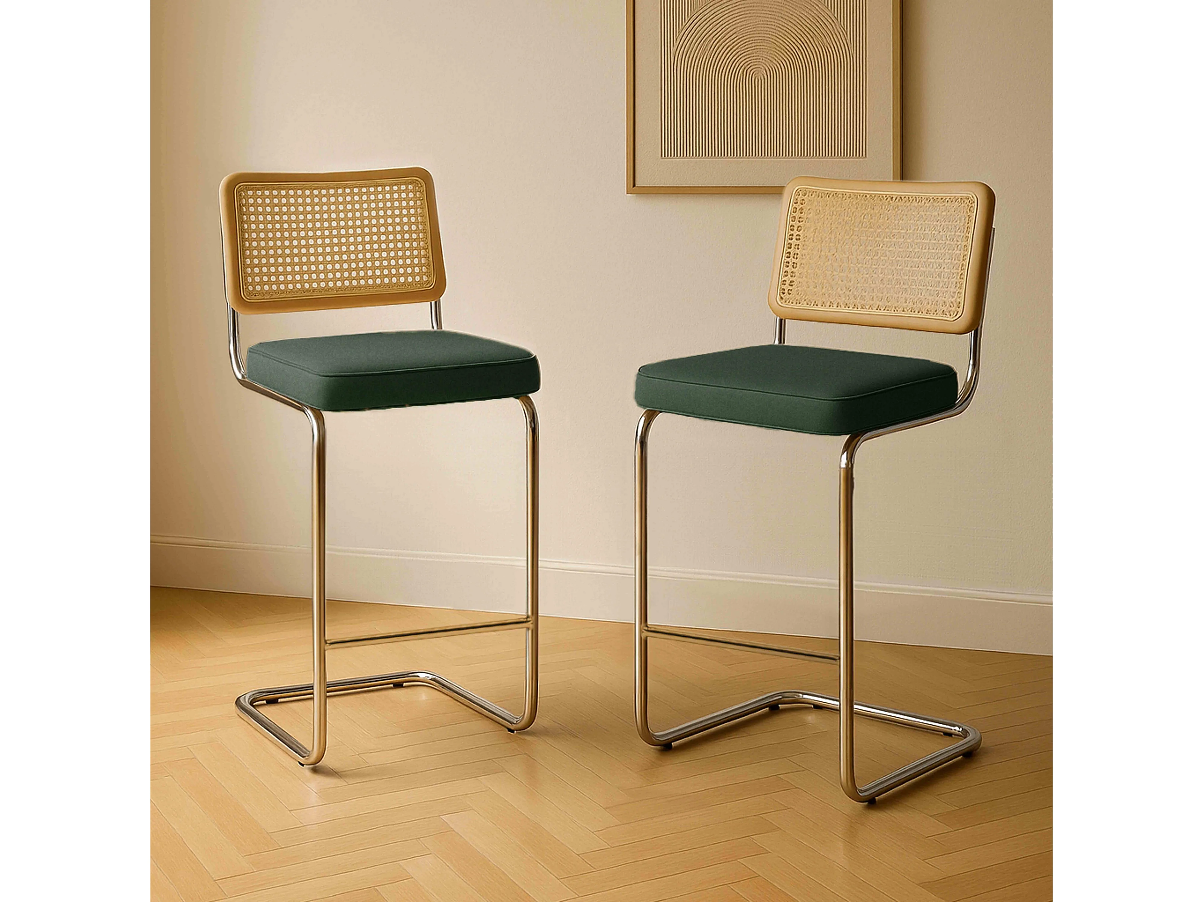 Lot de 2 chaises hautes en acier et velours vert foncé