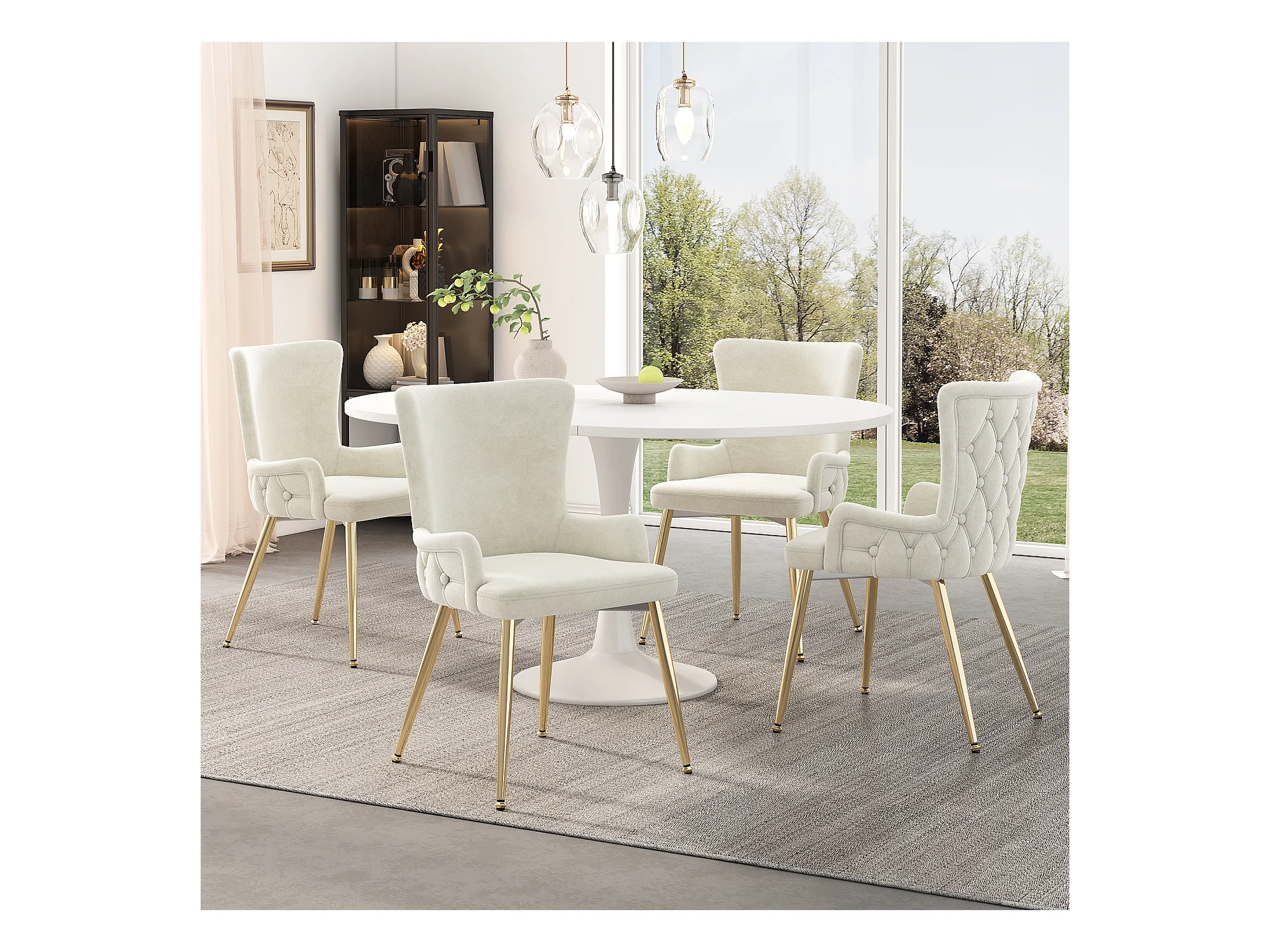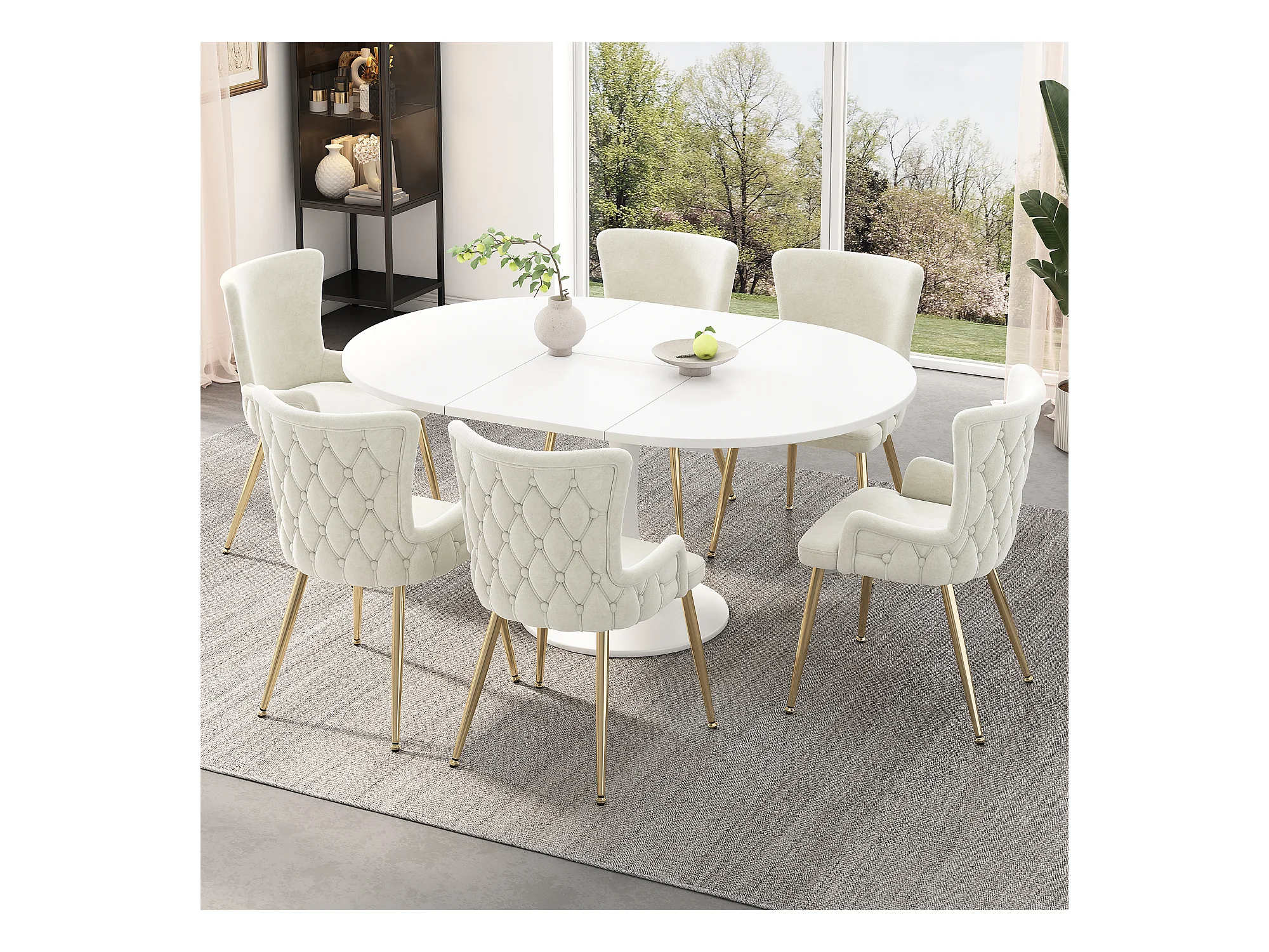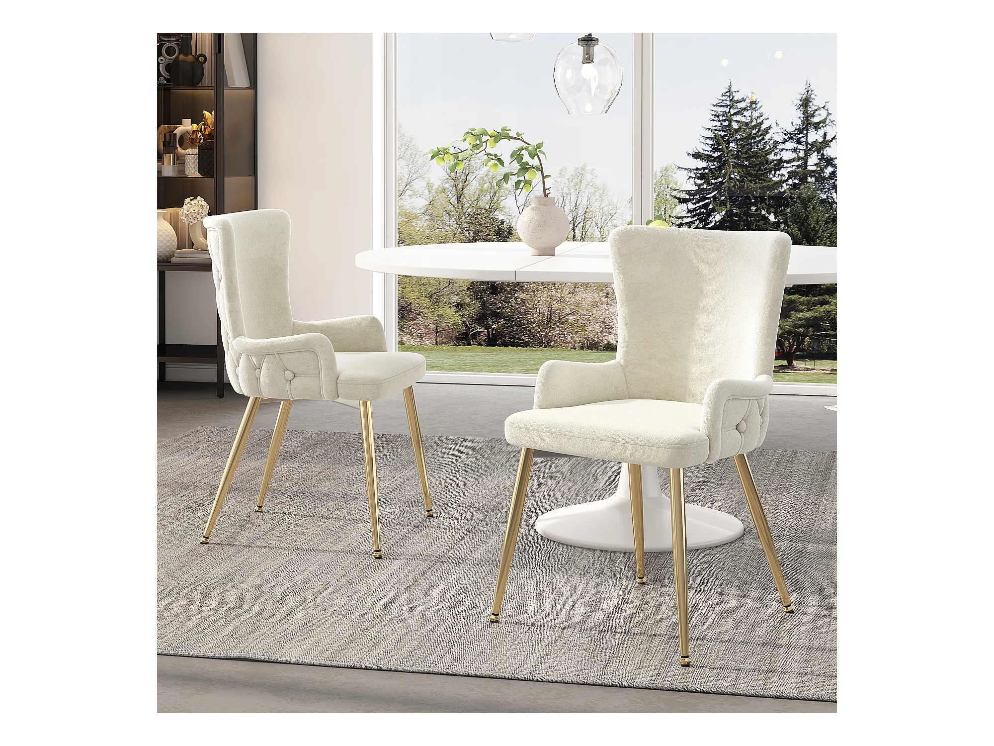 Lot de 2 chaises en velours salle à manger pivotantes à 360° - 85 x 60 x 46 cm - fauteuil rembourré - 4 pieds en métal - blanc