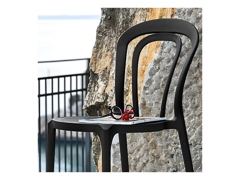 Lot de 2 chaises modernes noires "Caffè" en polypropylène empilables pour usage extérieur et intérieur cm 53x53 83h