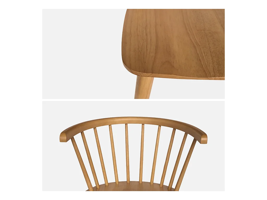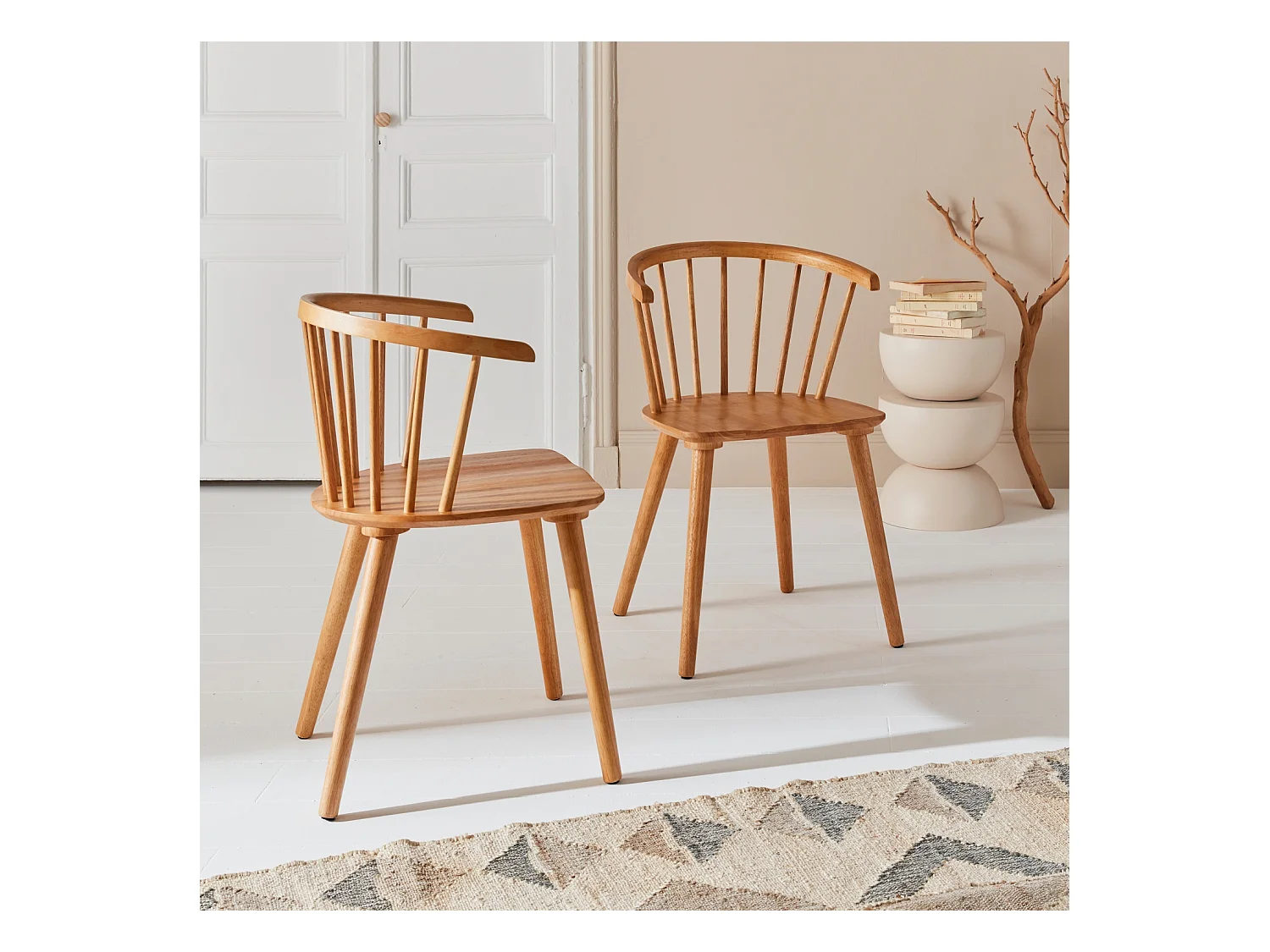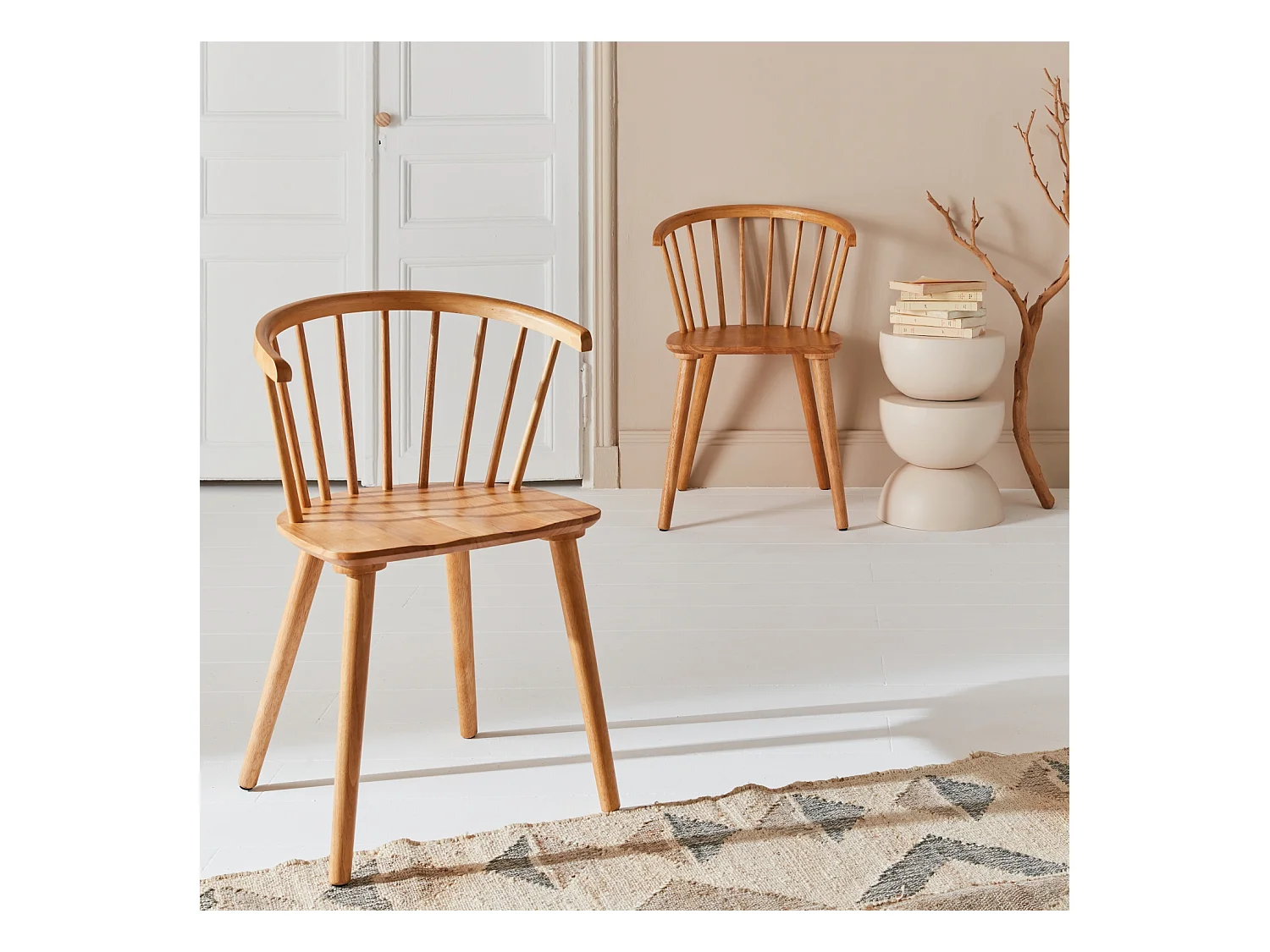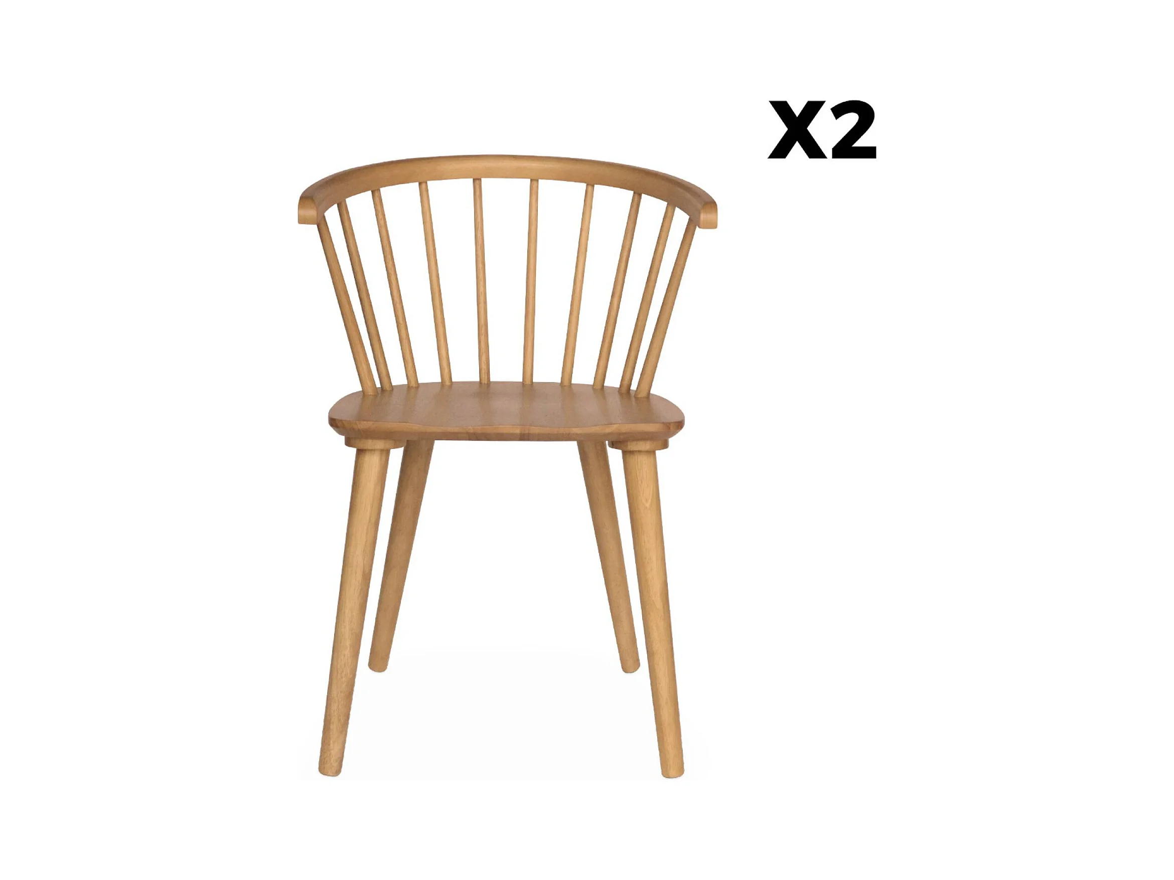 Lot de 2 chaises en bois d'hévéa. forme courbée. finition brossée