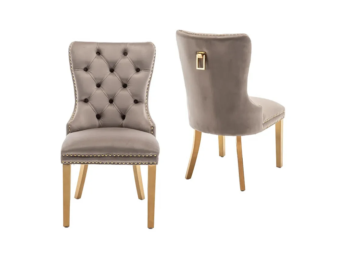 Lot de 2 chaises POIGNEE Clouté en velours pied Gold