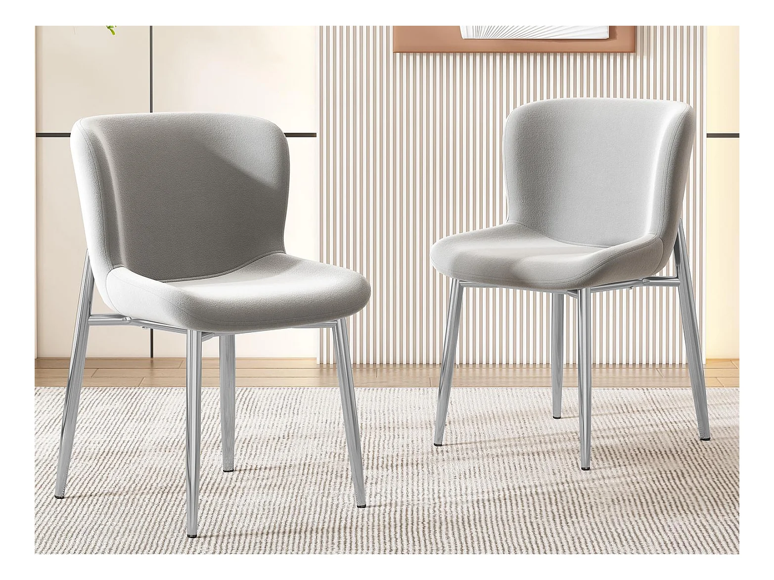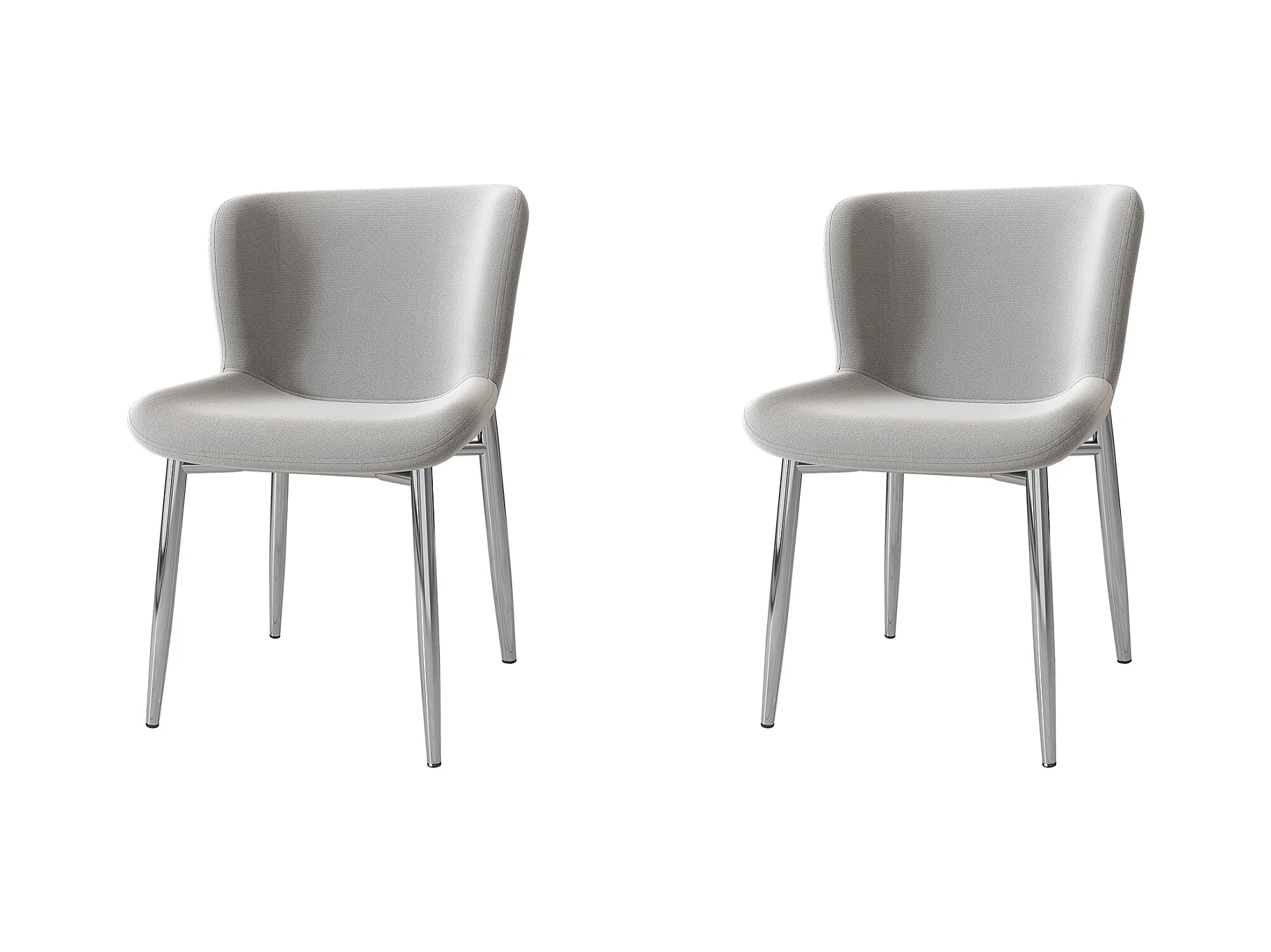 Lot de 2 Chaises rembourré en velours - avec pieds en métal argenté – style contemporain - Gris
