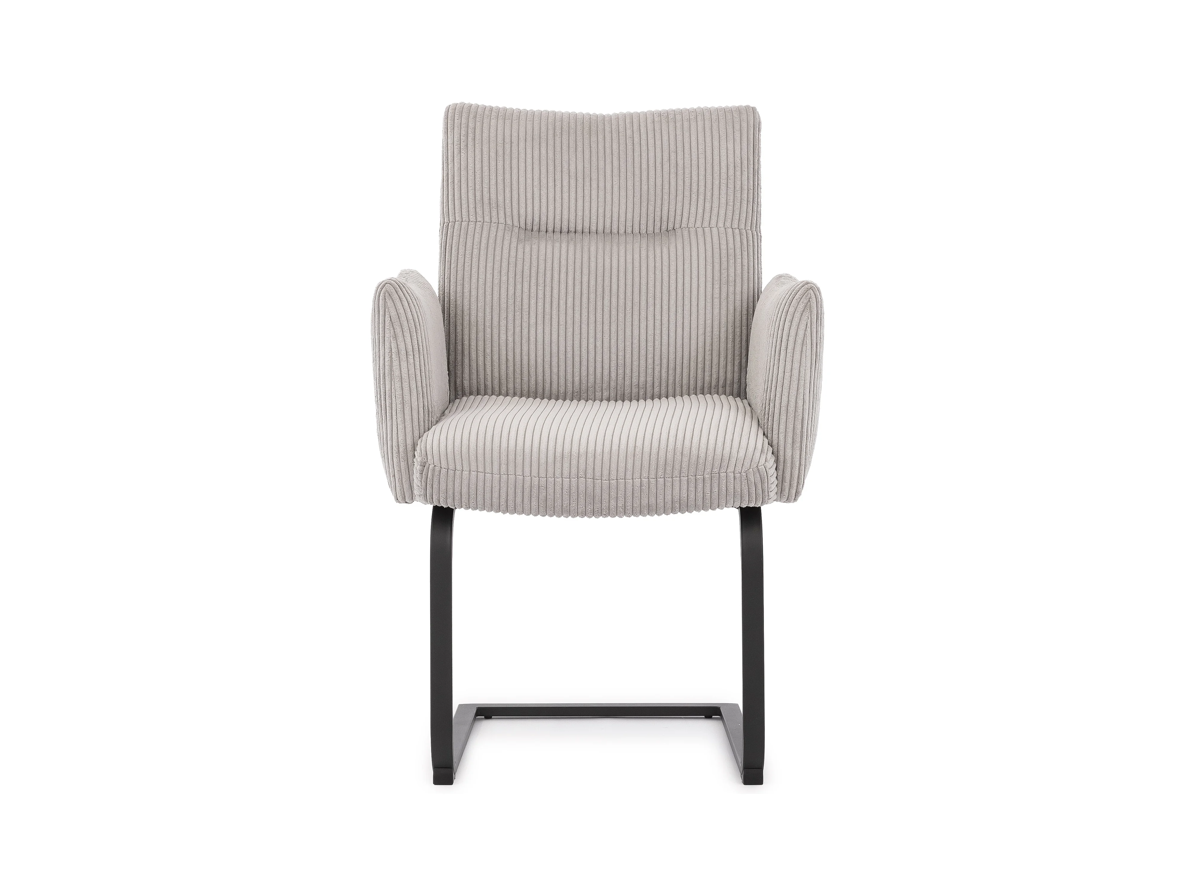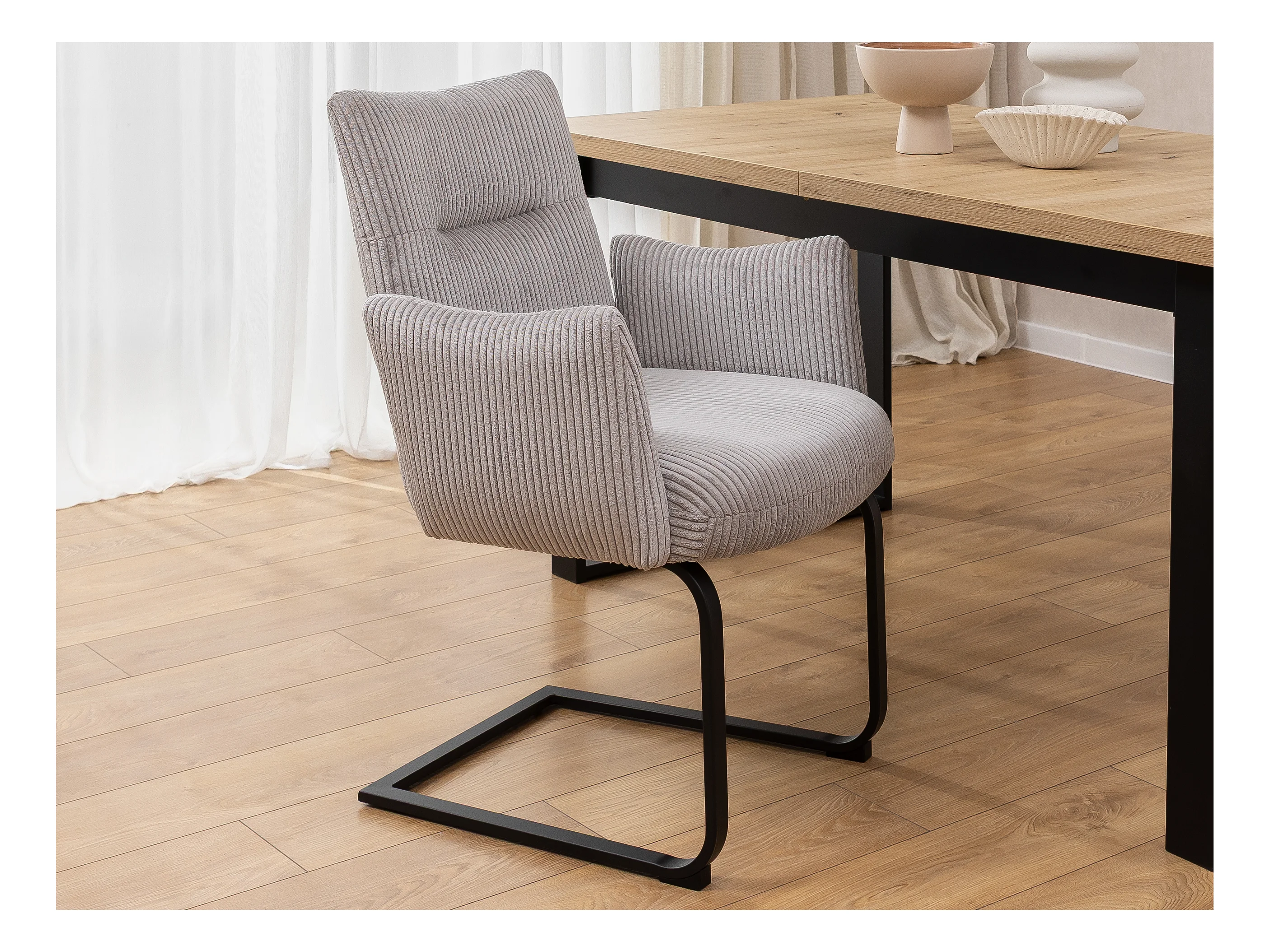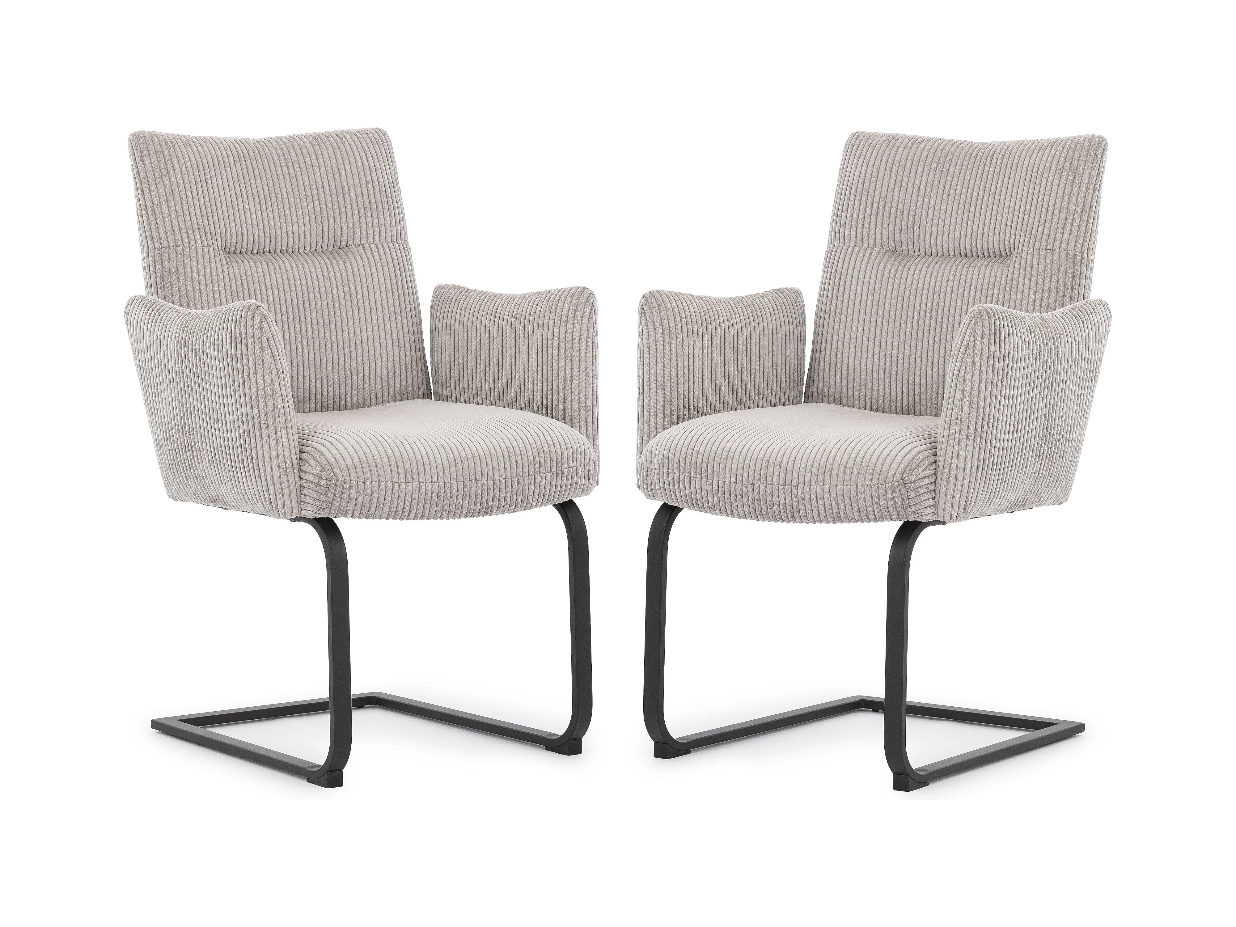 Lot de 2 chaises rembourrées au design moderne, en velours côtelé gris, avec accoudoirs et piètement luge en métal noir - Hera