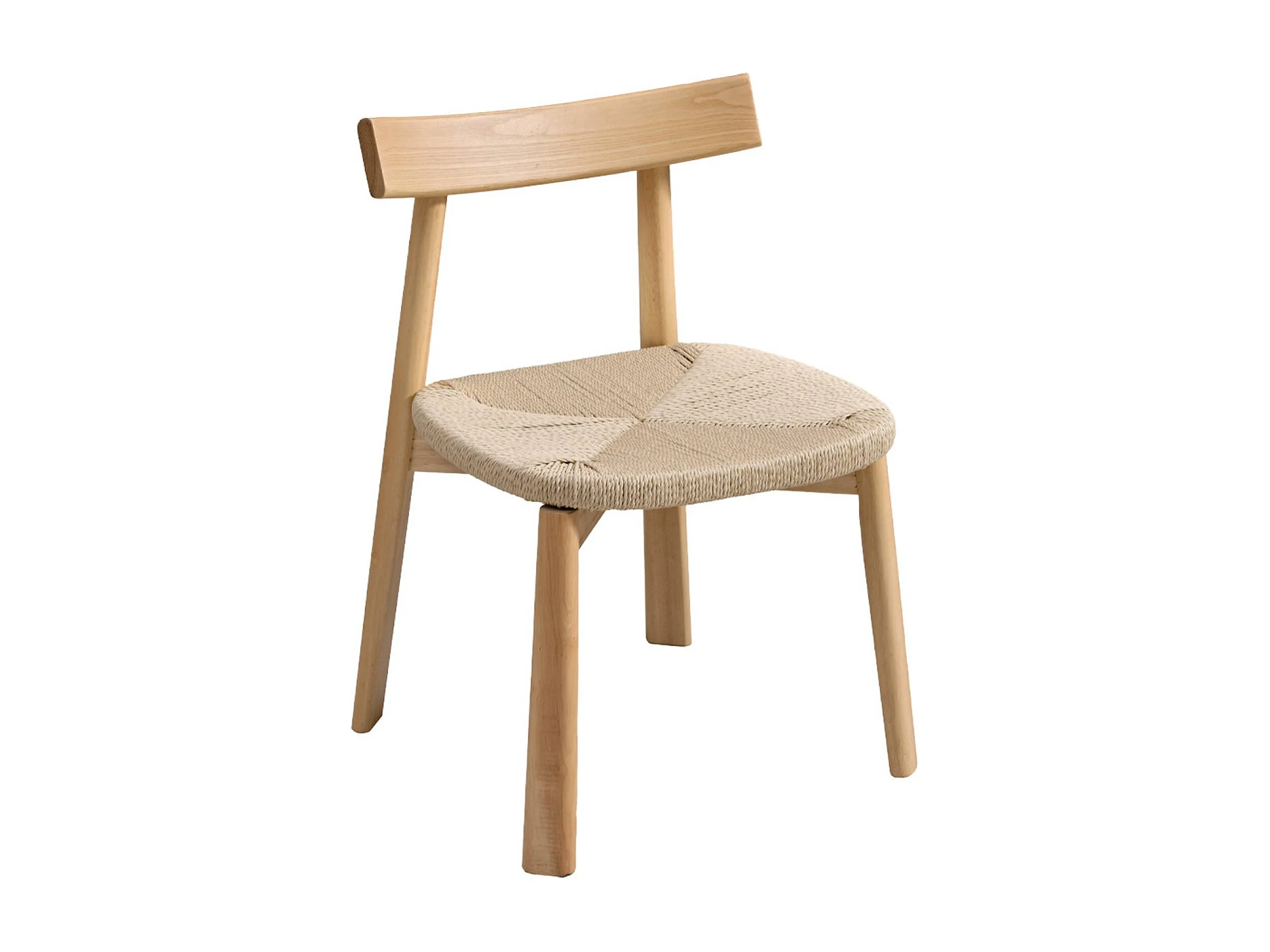 Lot de 2 chaises scandinaves en bois d'hévéa naturel et assise en corde beige