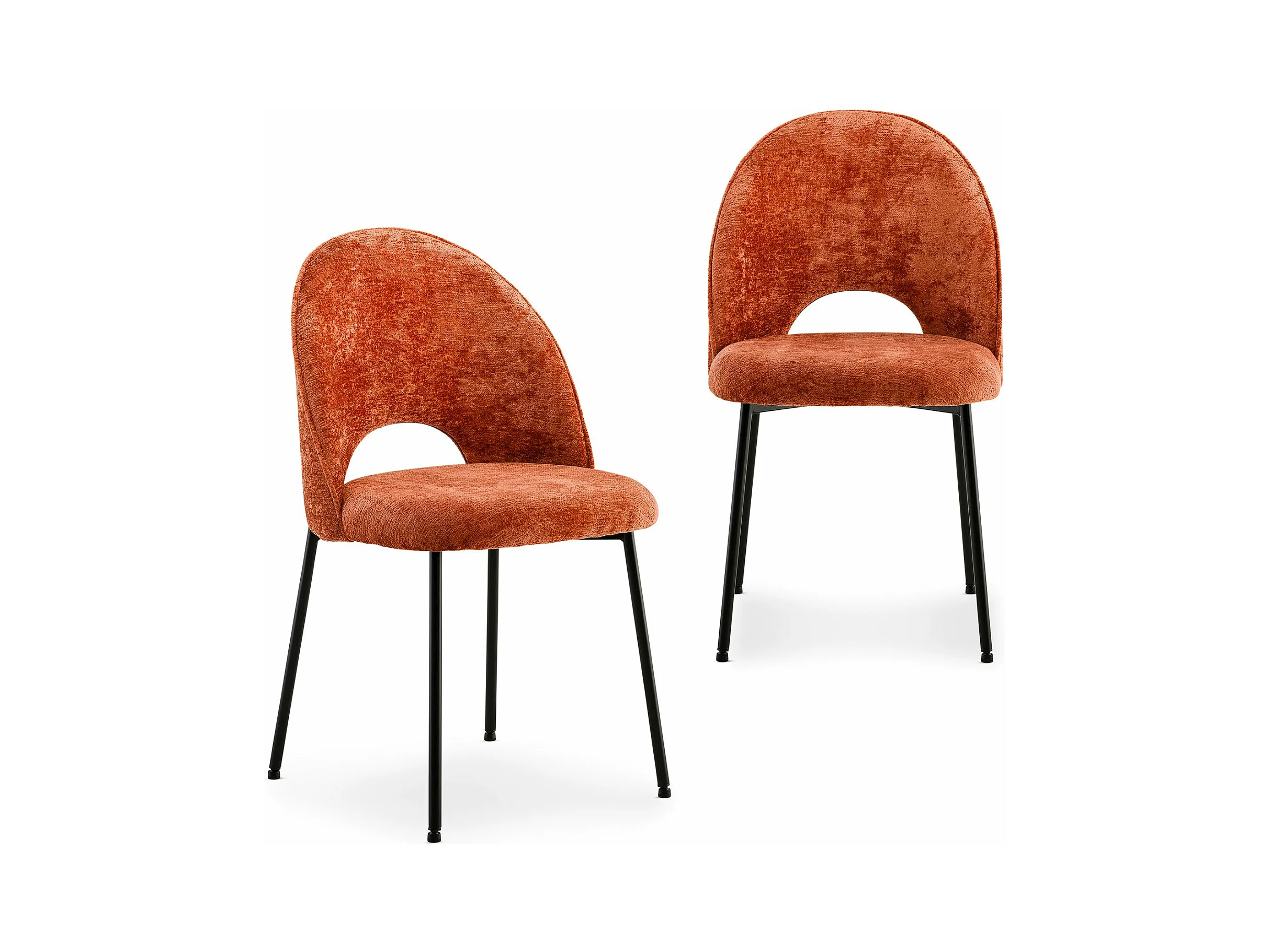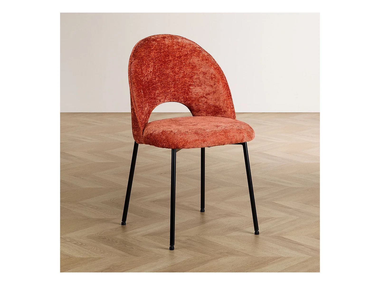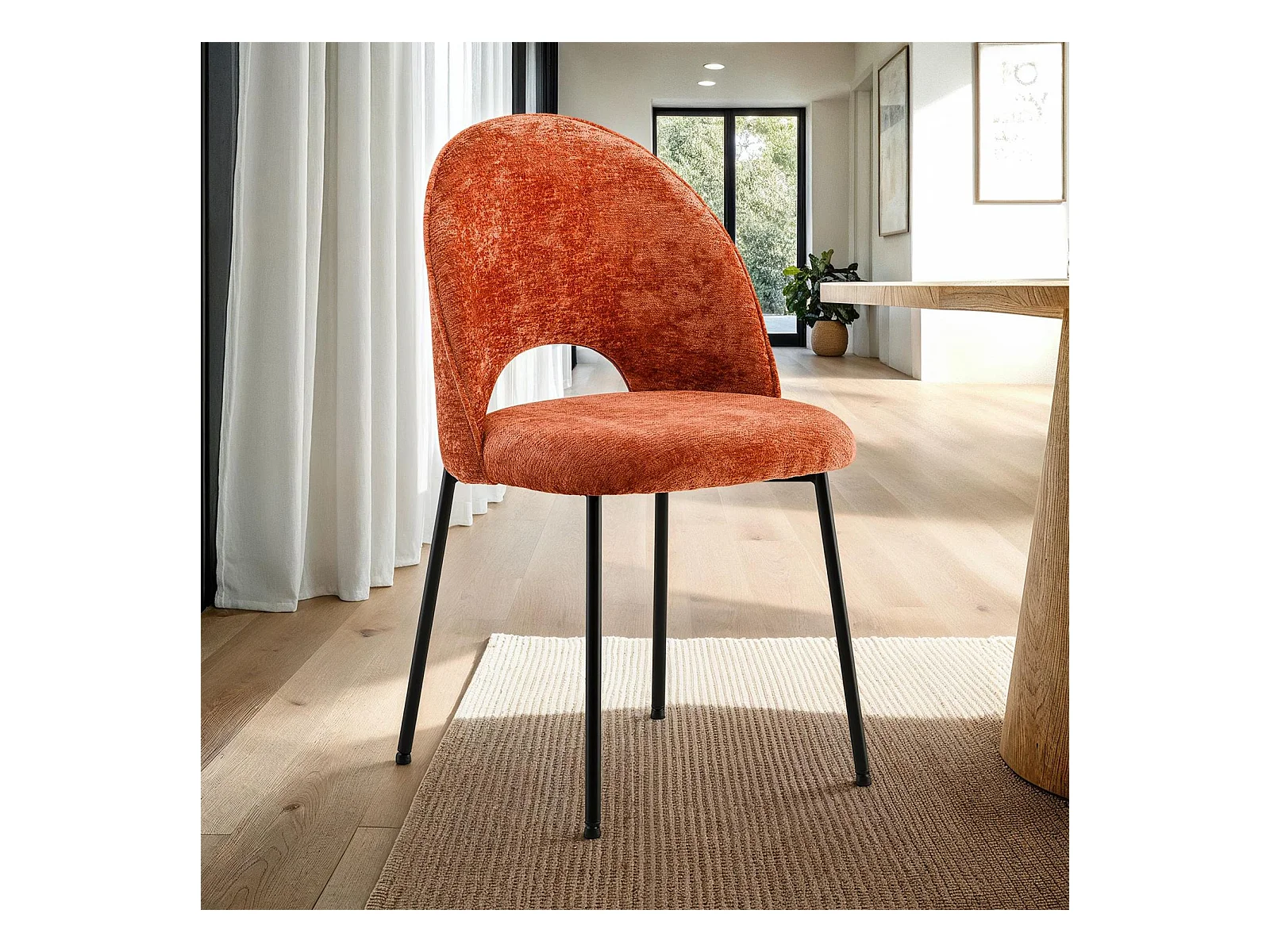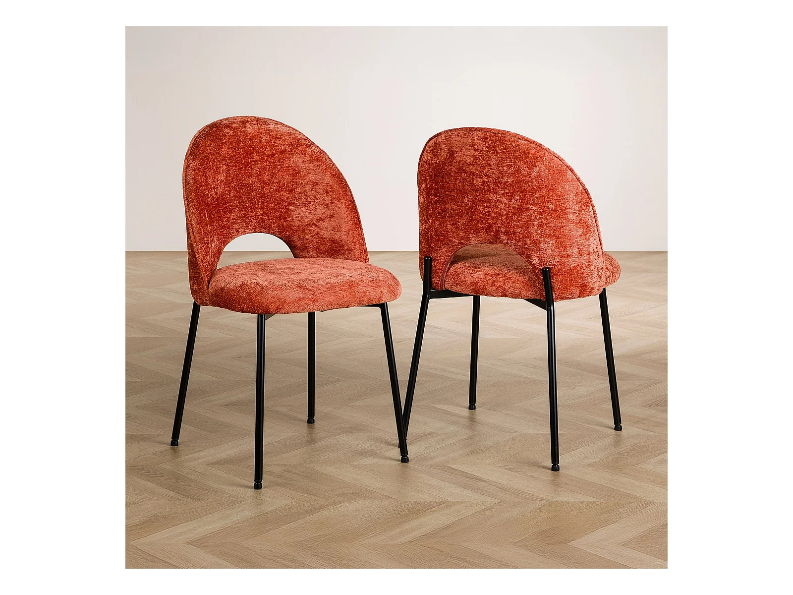 Lot de 2 chaises SERENA avec revêtement en tissu orange et structure en métal noir, chaise de salle à manger