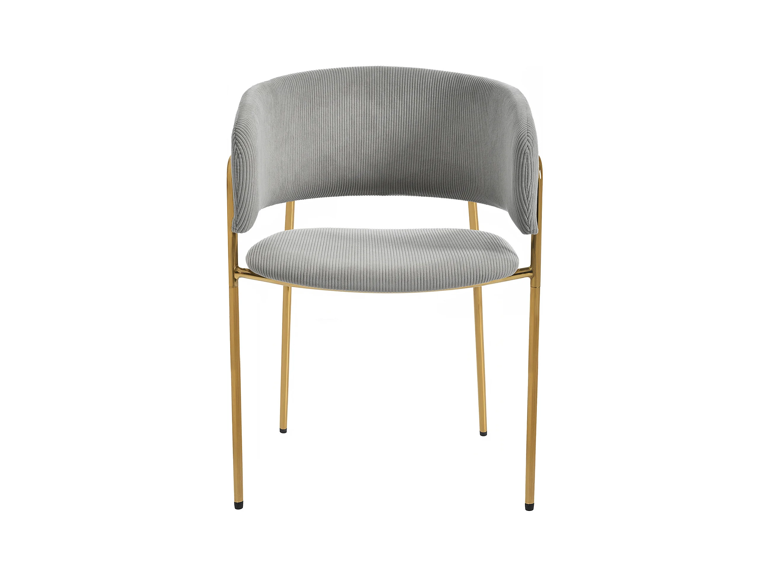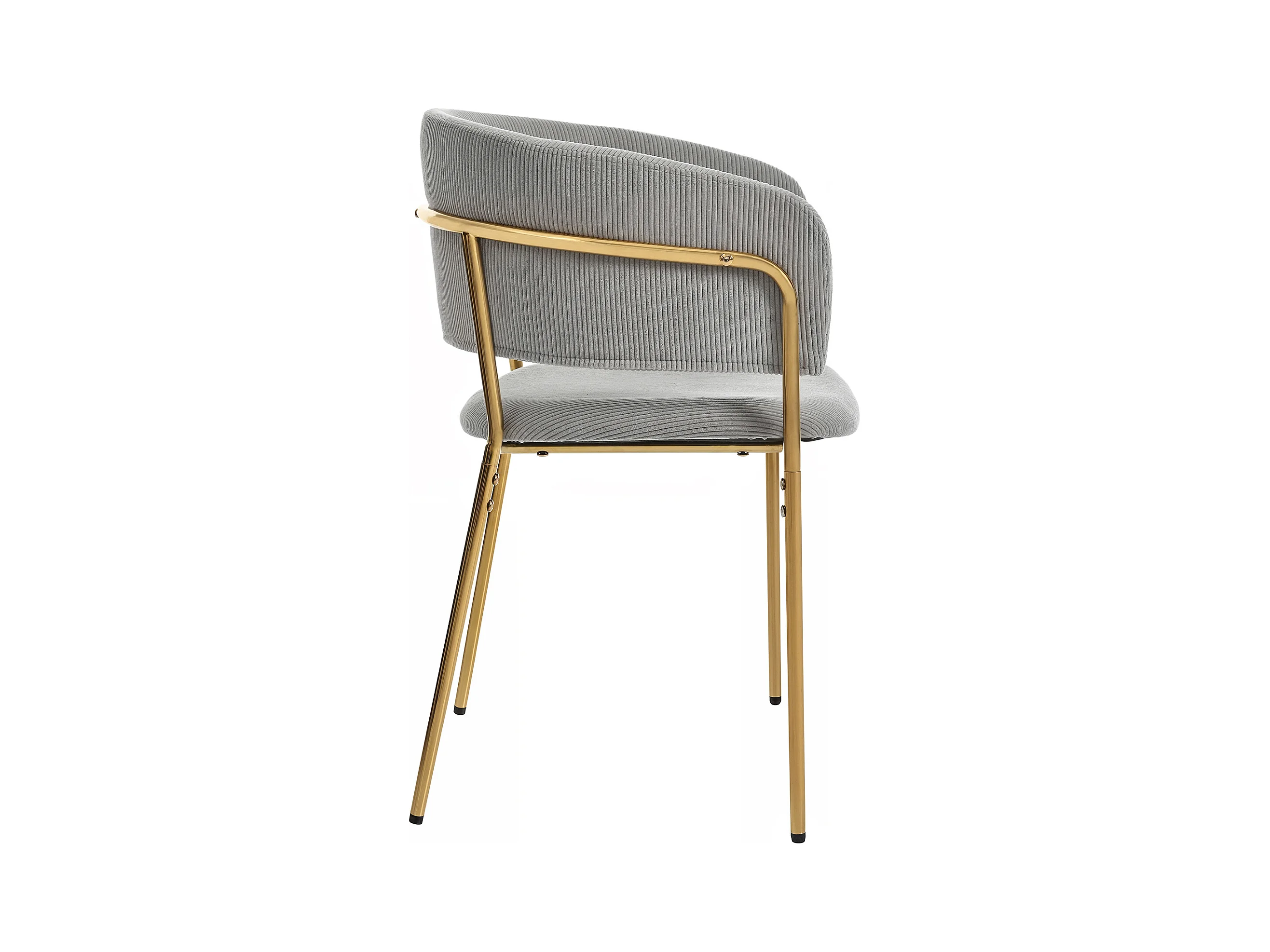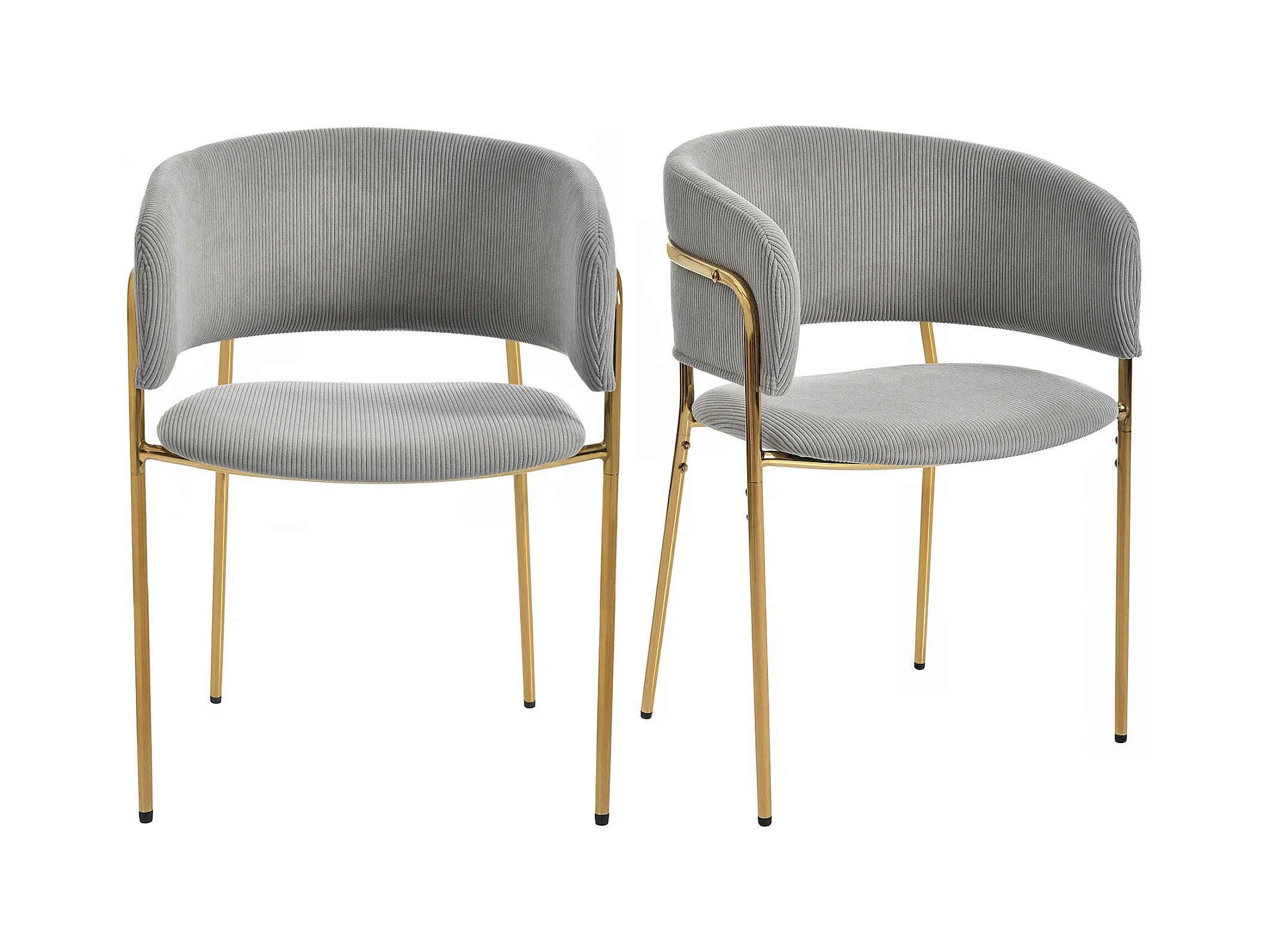Lot de 2 chaises, velours côtelé gris, chaise avec dossier rembourré et pieds dorés, pour salon et salle à manger