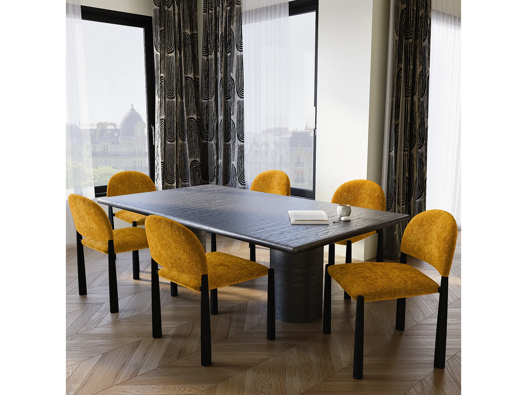 Lot de 2 chaises velours texturé moutarde et pieds noirs MILO