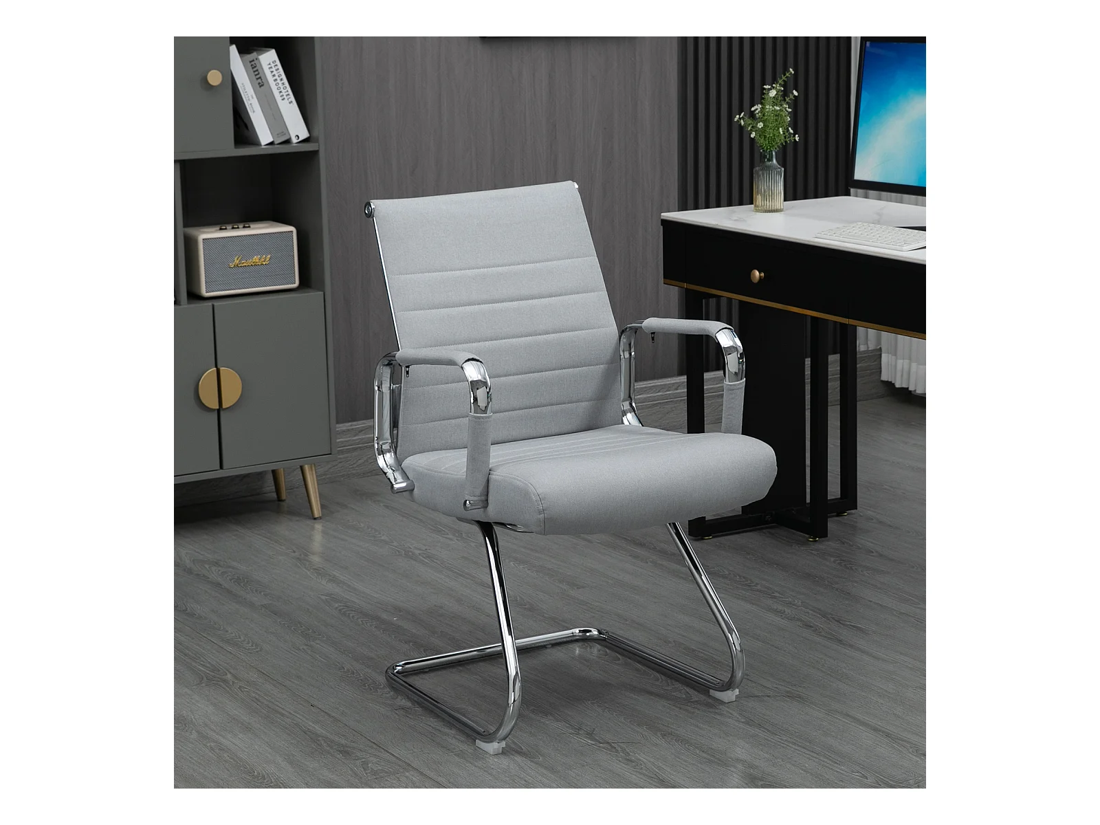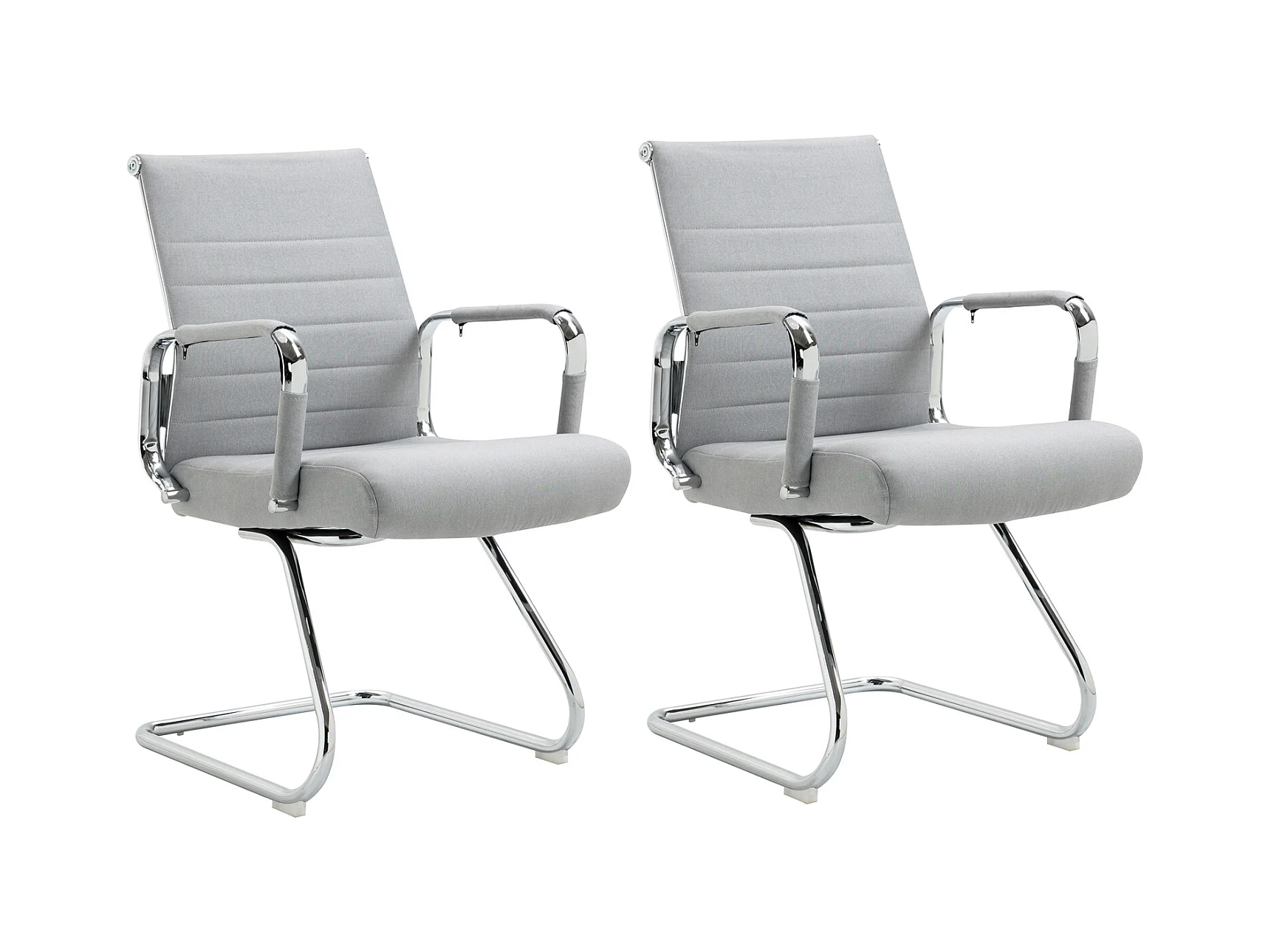 Lot de 4 Chaise de conférence - Similicuir & Gris - Blanc - Ken