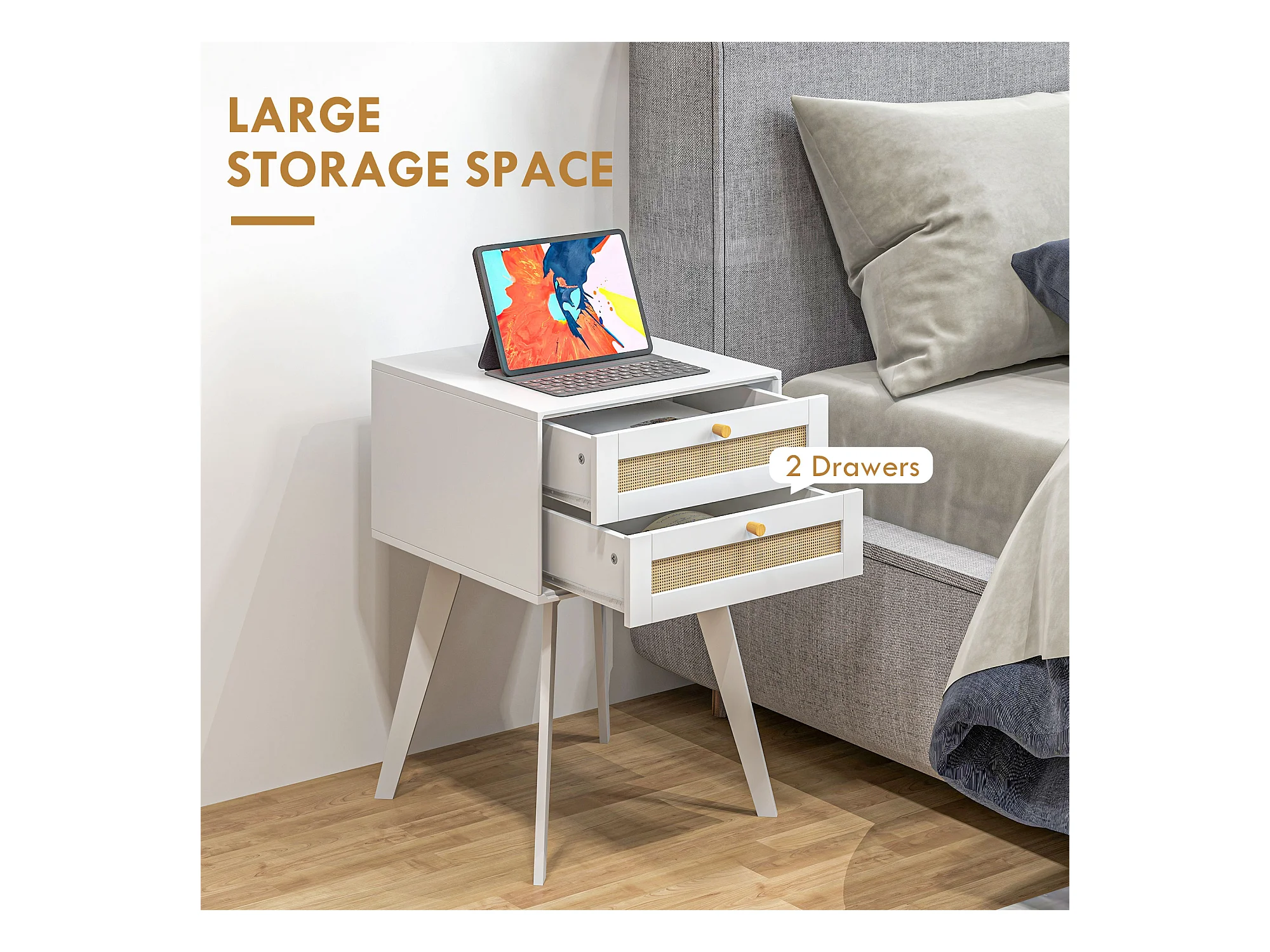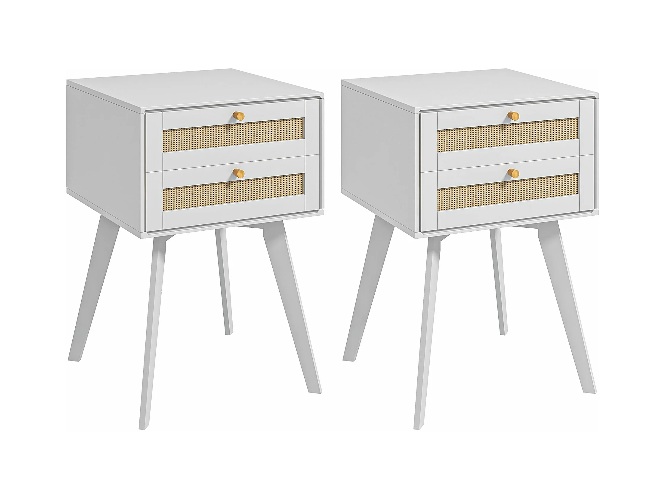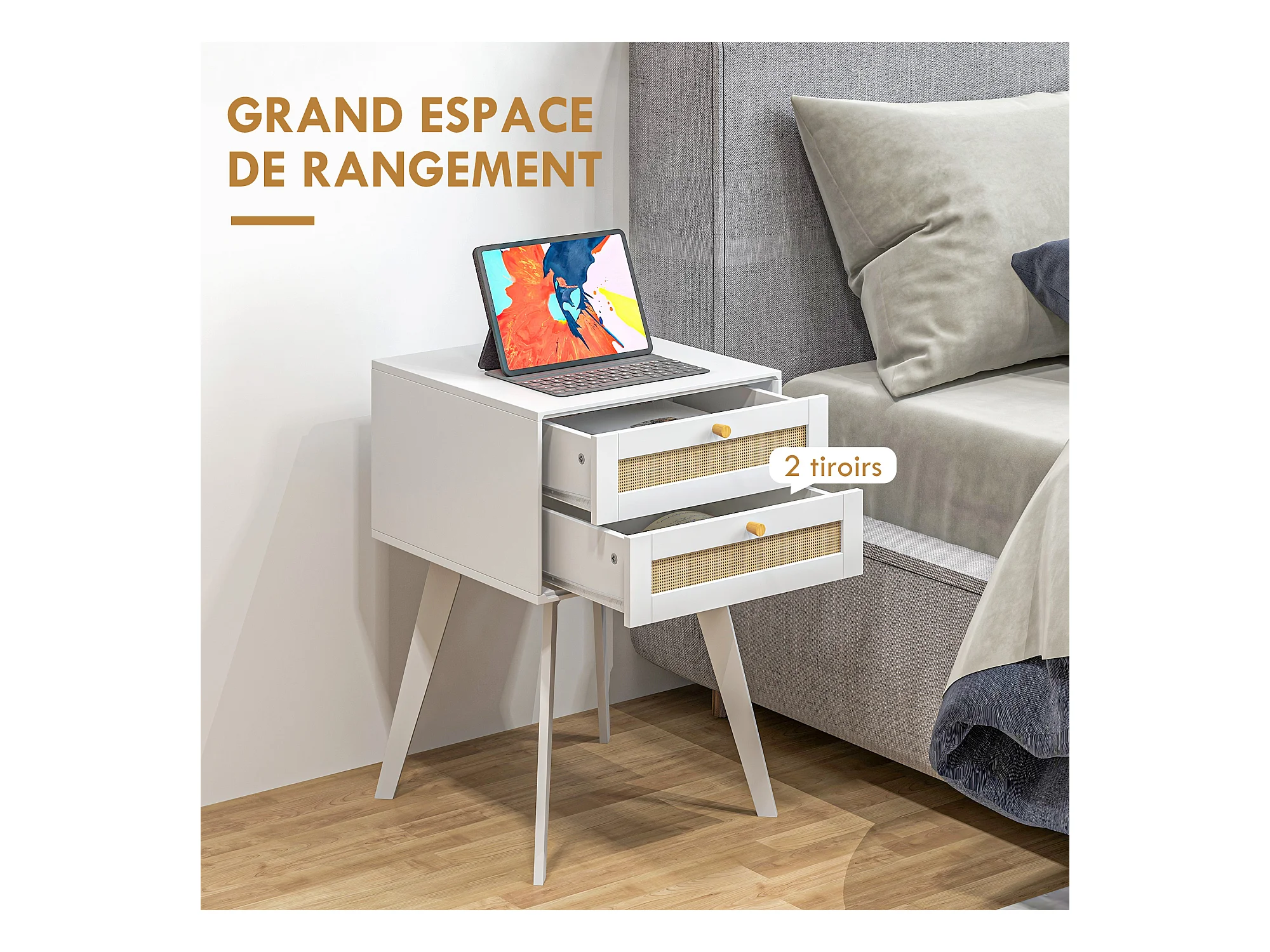 Lot de 2 chevets tables de nuit style bohème chic - 2 tiroirs - MDF blanc cannage en rotin