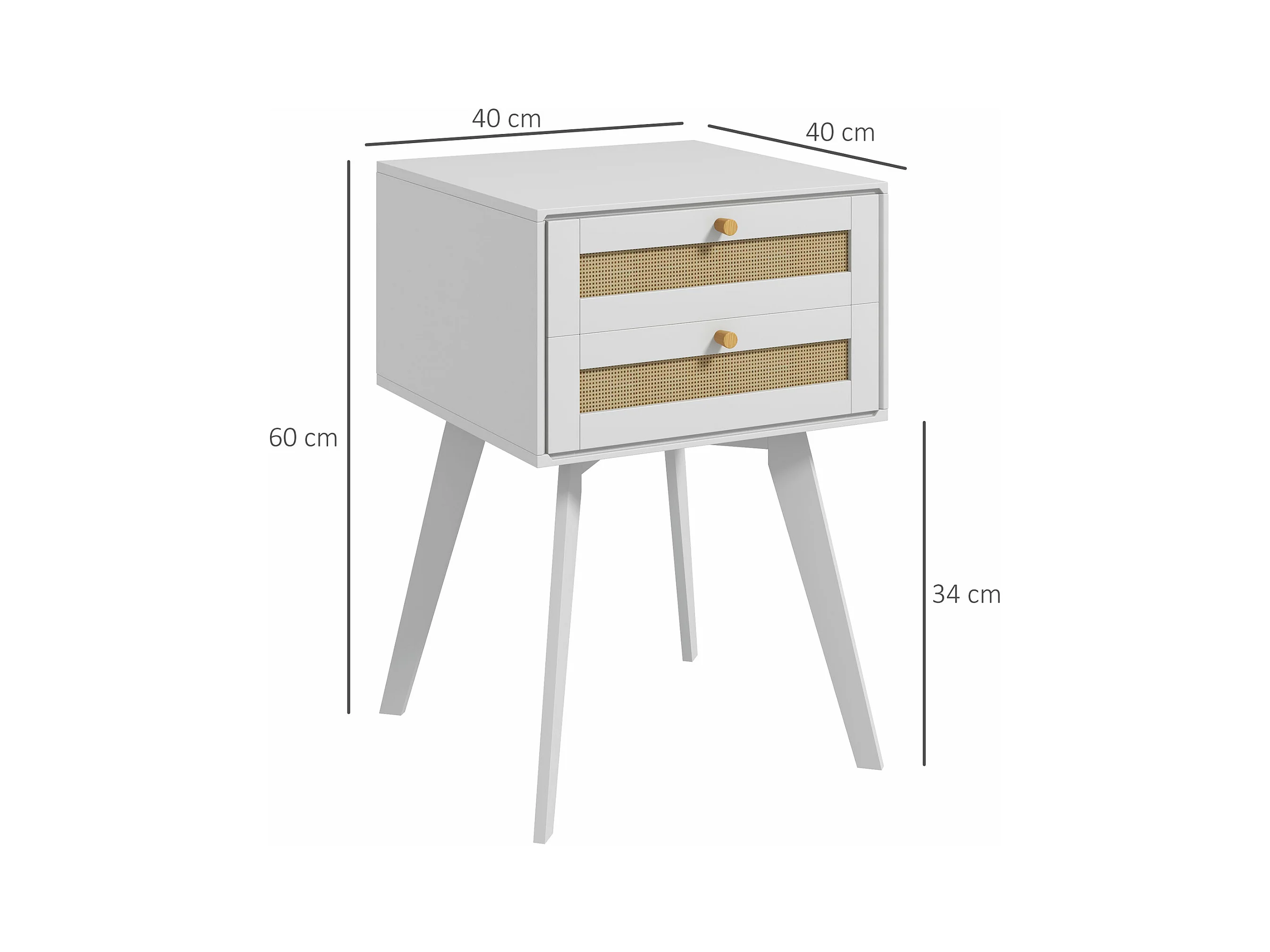 Table de Chevet avec 2 Tiroirs, Table de Nuit Scandinave en Bois pour Salon, Chambre, Couloir, Bureau, 40 x 40 x 59,5 cm Blanc