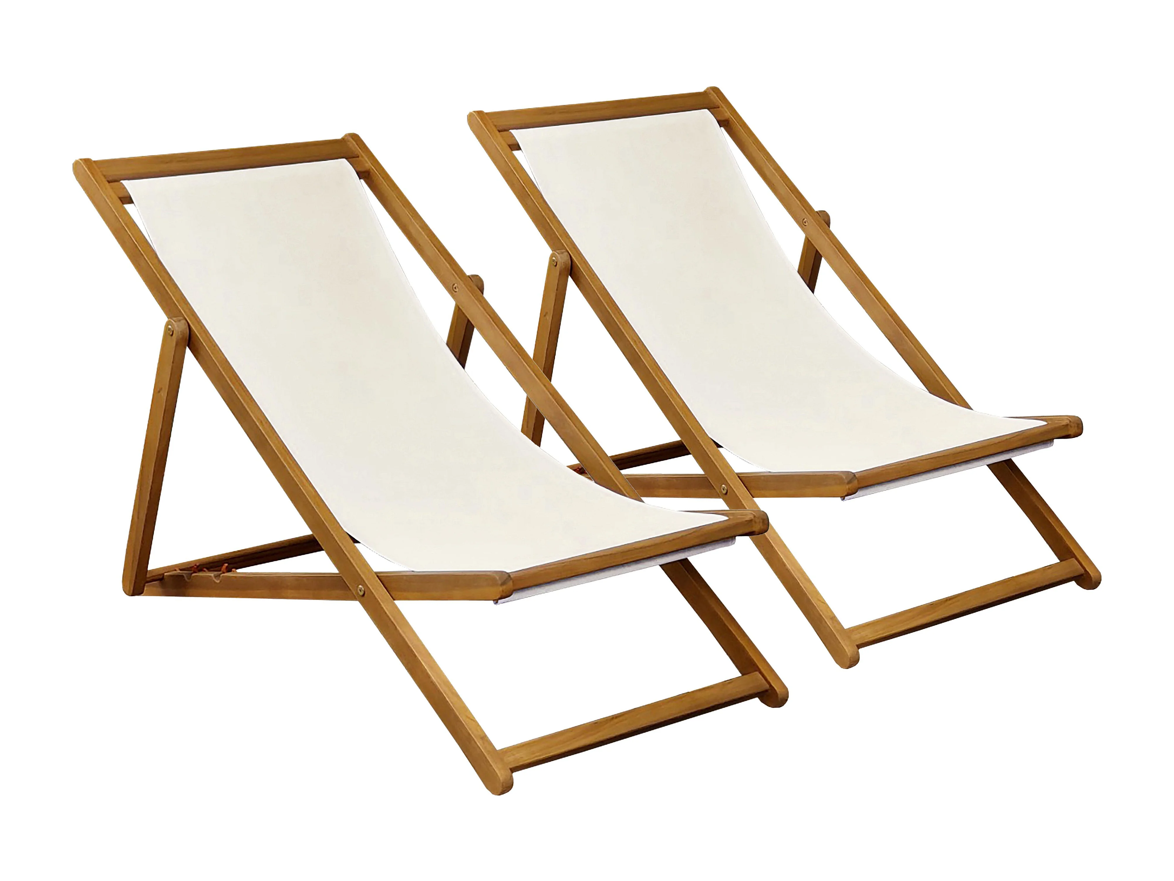 Lot de 2 chiliennes en acacia inclinables 3 positions écru