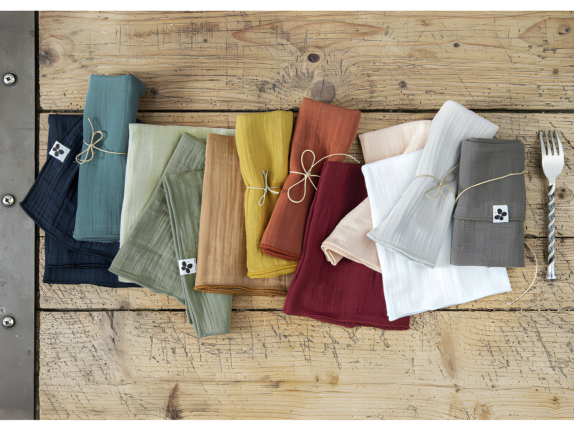 Lot de 4 essuie-mains 50 x 70 cm en double gaze de coton gris - PEPA