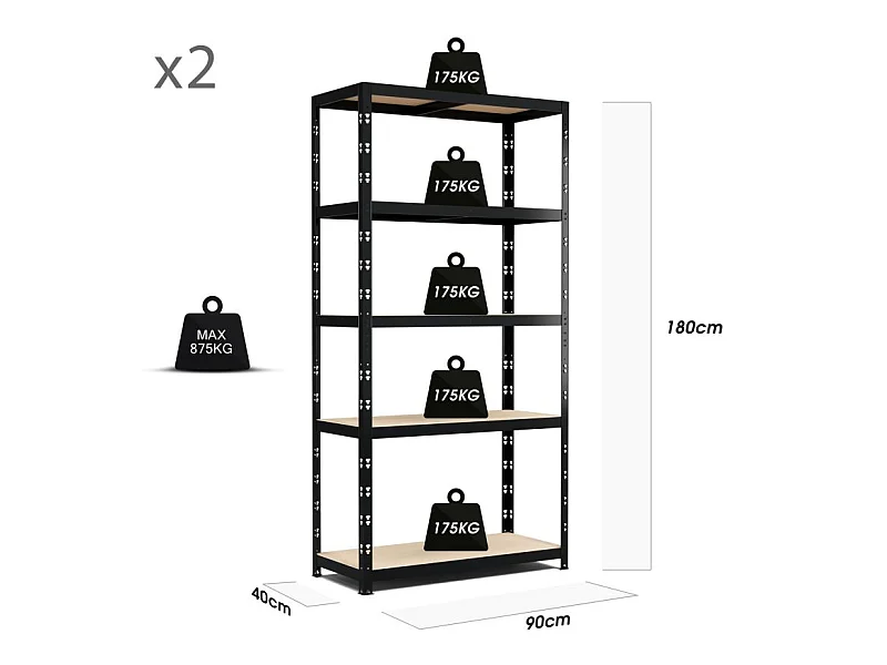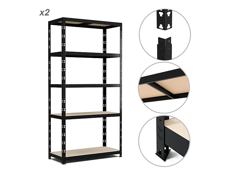 Lot de 2 Etagères de Rangement modulables et polyvalentes pour atelier, garage, cave...Charges Lourdes 180x90x40cm x2 - Noir
