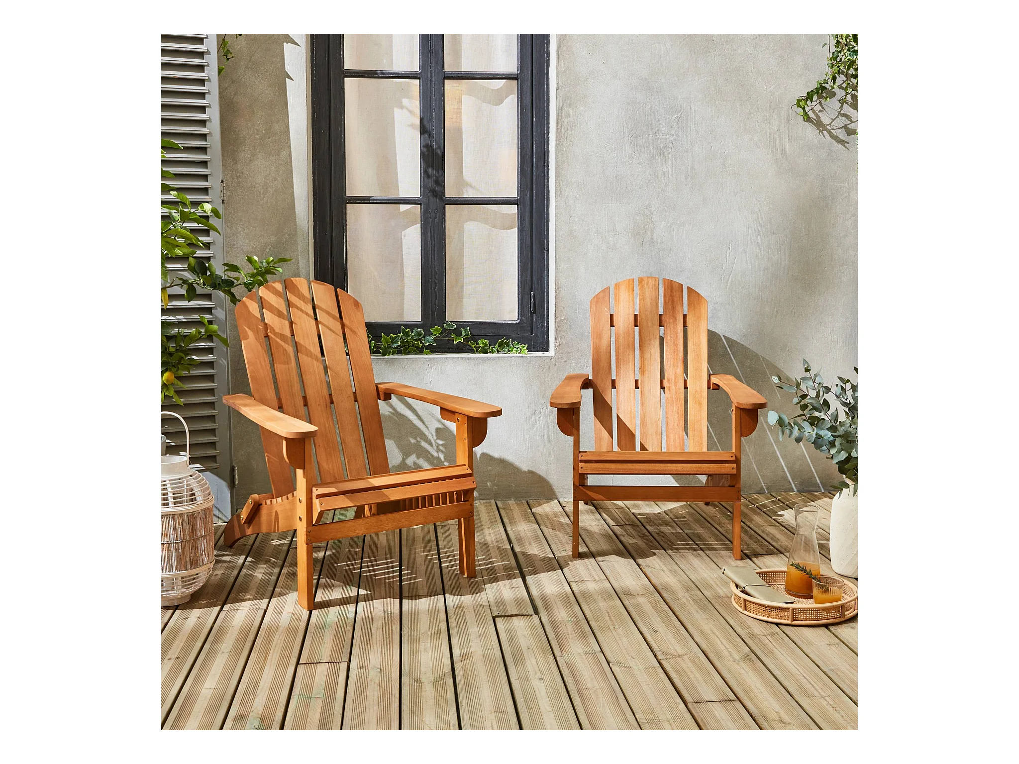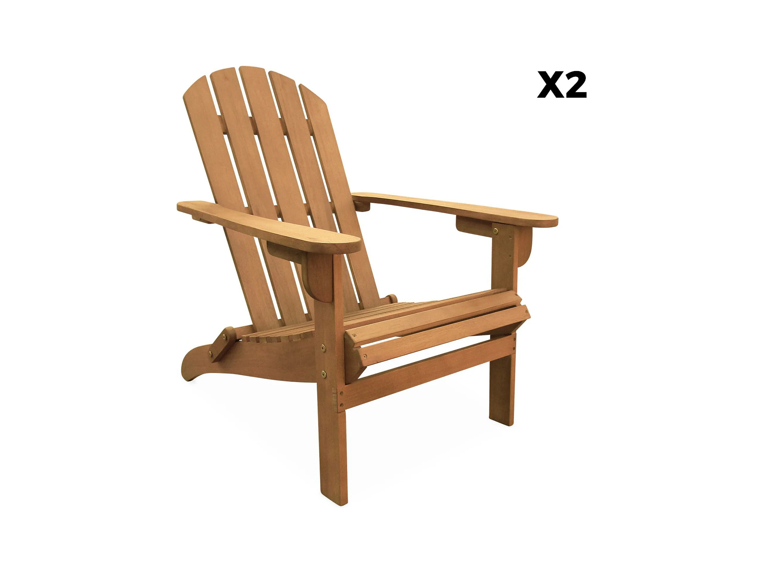 Lot de 2 fauteuils de jardin en bois - Adirondack Salamanca- Eucalyptus. chaises de terrasse rétro. sièges de plage