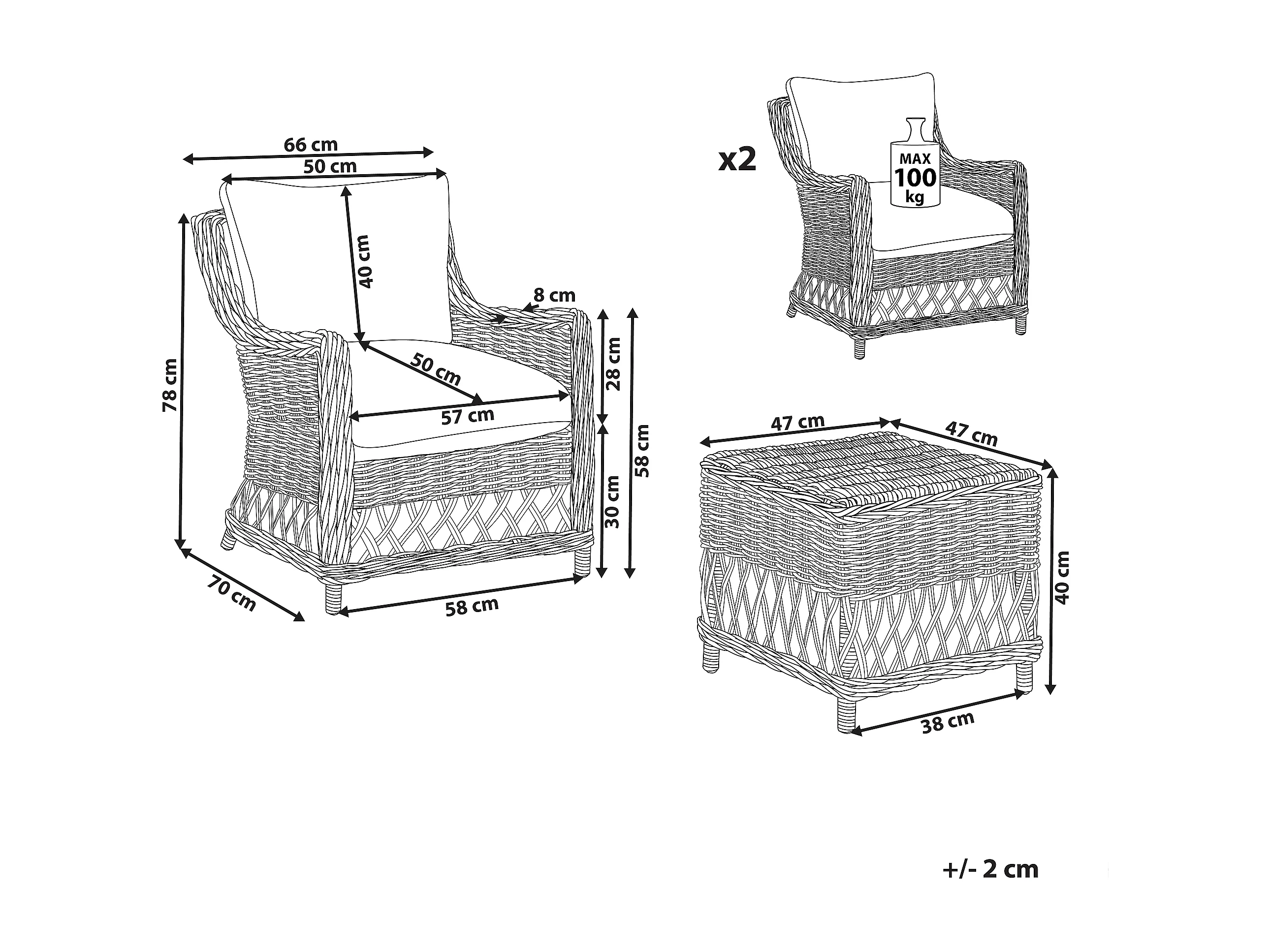 Lot de 2 fauteuils de jardin avec coussins RIBOLLA Rotin Naturel