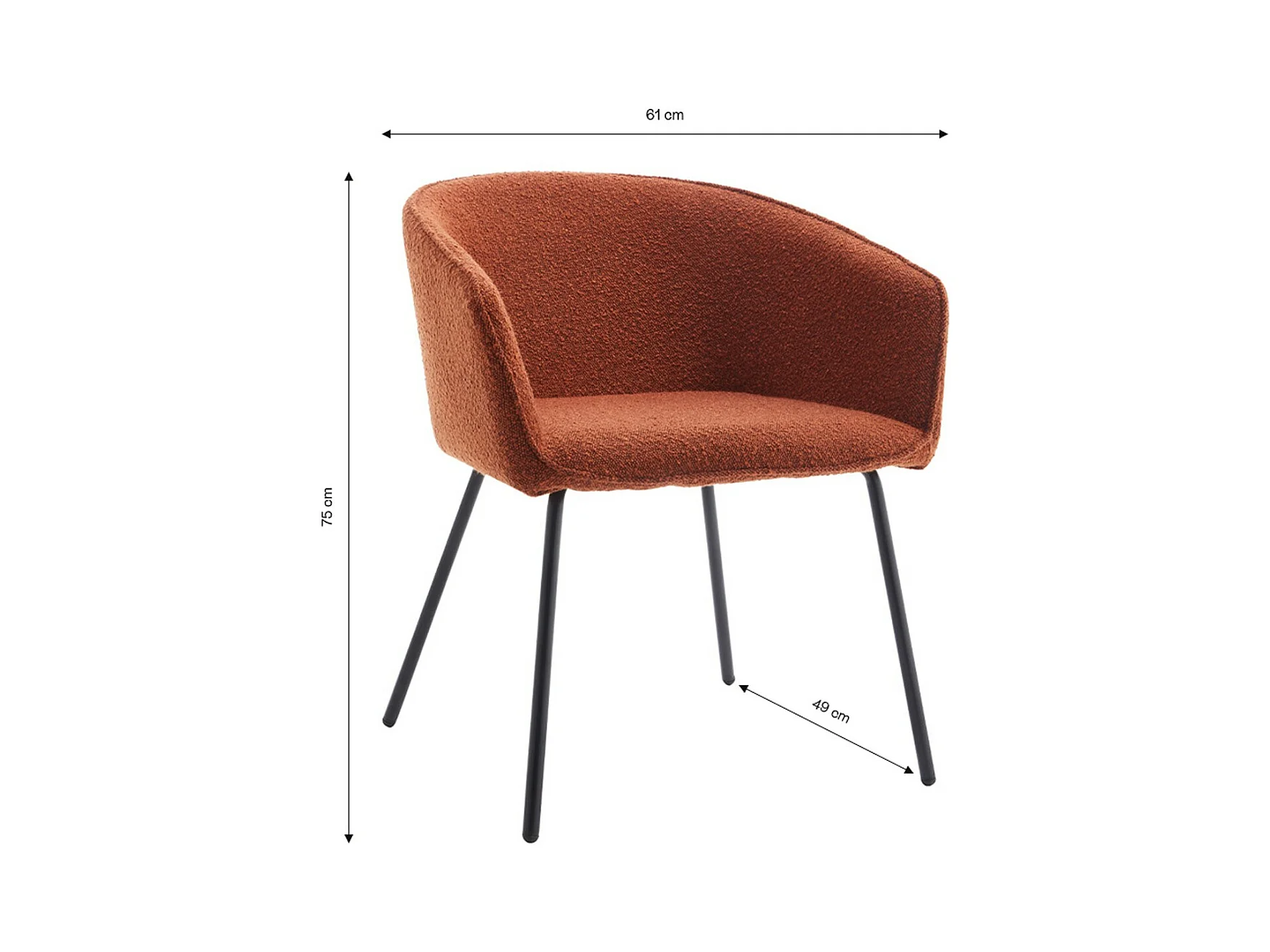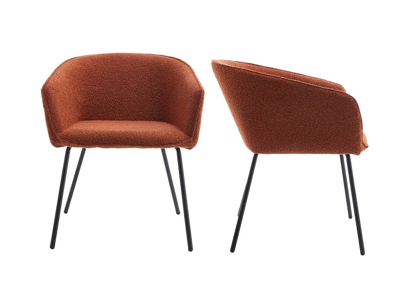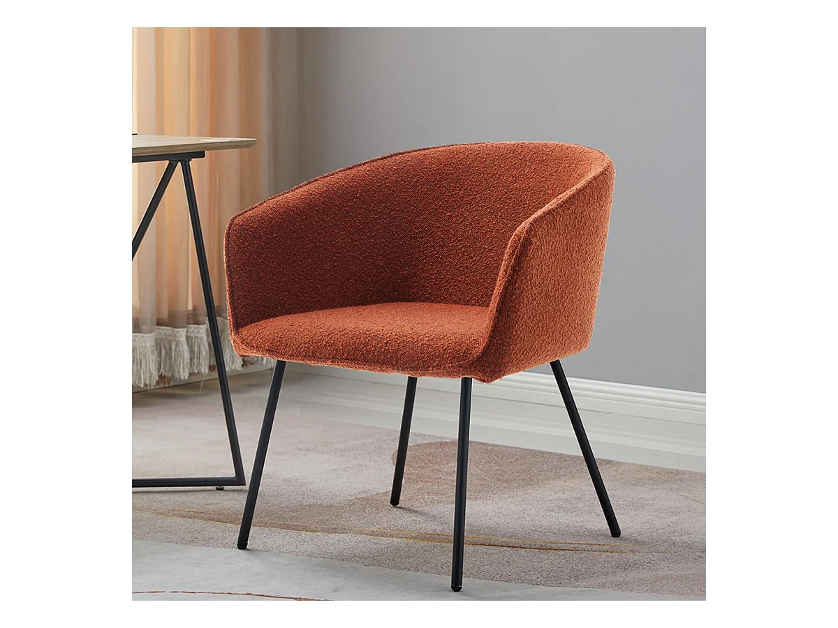 Lot de 2 fauteuils de table en tissu bouclé rouille, piètement noir - Swann