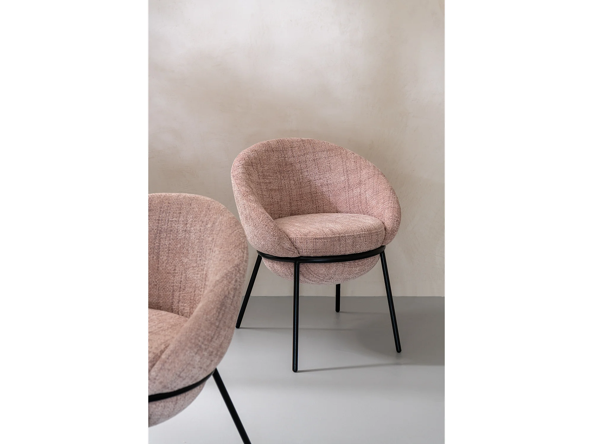 Lot de 2 fauteuils en tissu BOOBY – Structure en métal noir et design moderne-Rose