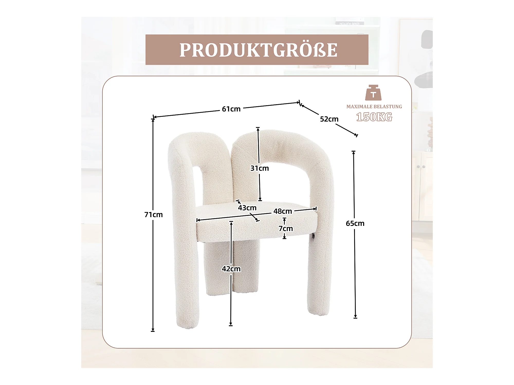 Lot de 2 fauteuils ergonomiques avec velours - 61 x 52 x 71 cm - pour le salon ou le bureau - velours - beige