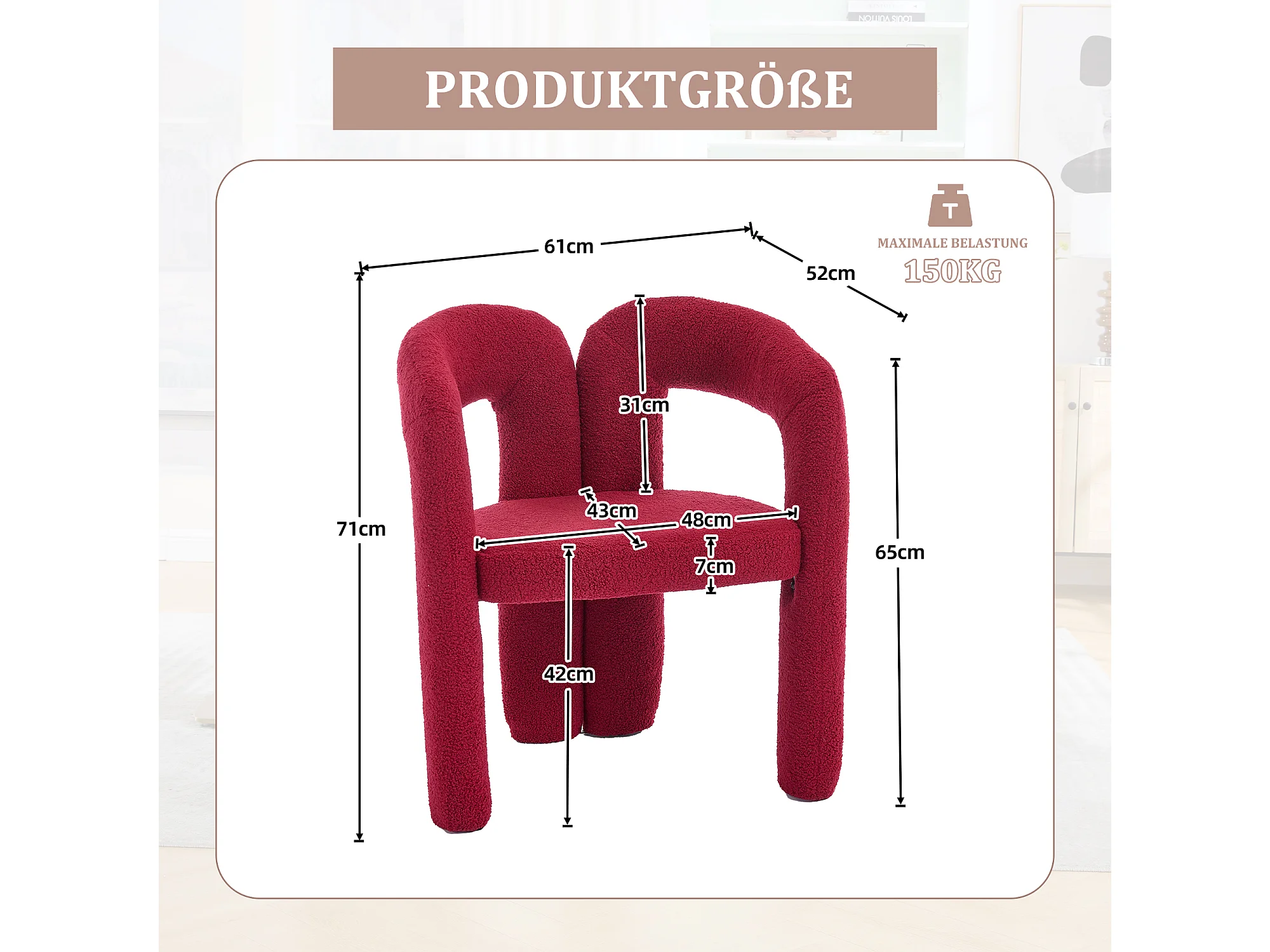 Lot de 2 fauteuils ergonomiques avec velours - 61 x 52 x 71 cm - pour le salon ou le bureau - velours - rouge