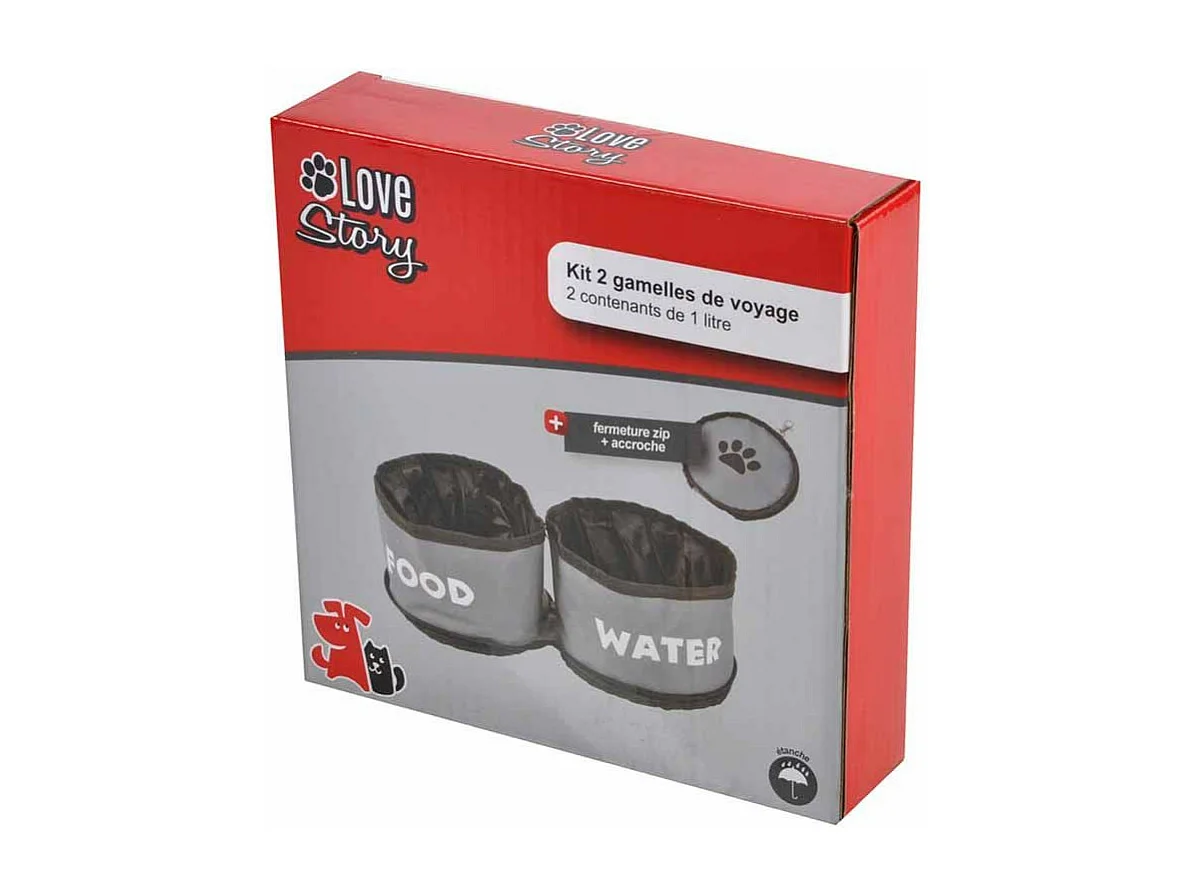 Lot de 2 Gamelles Chien & Chat "Voyage" 14cm Gris