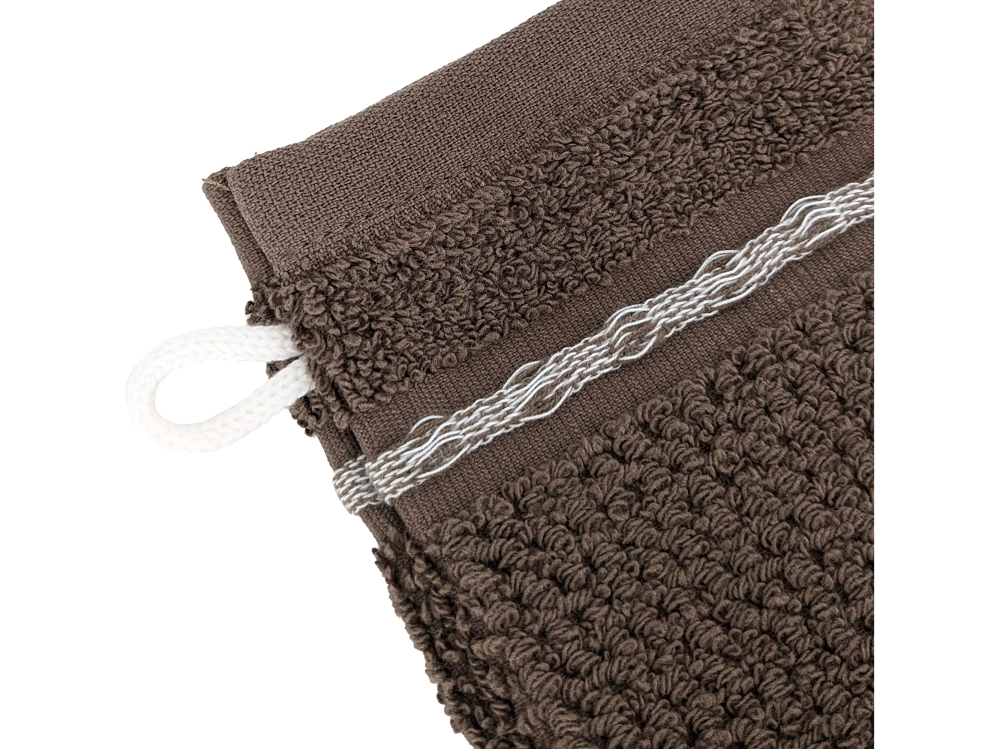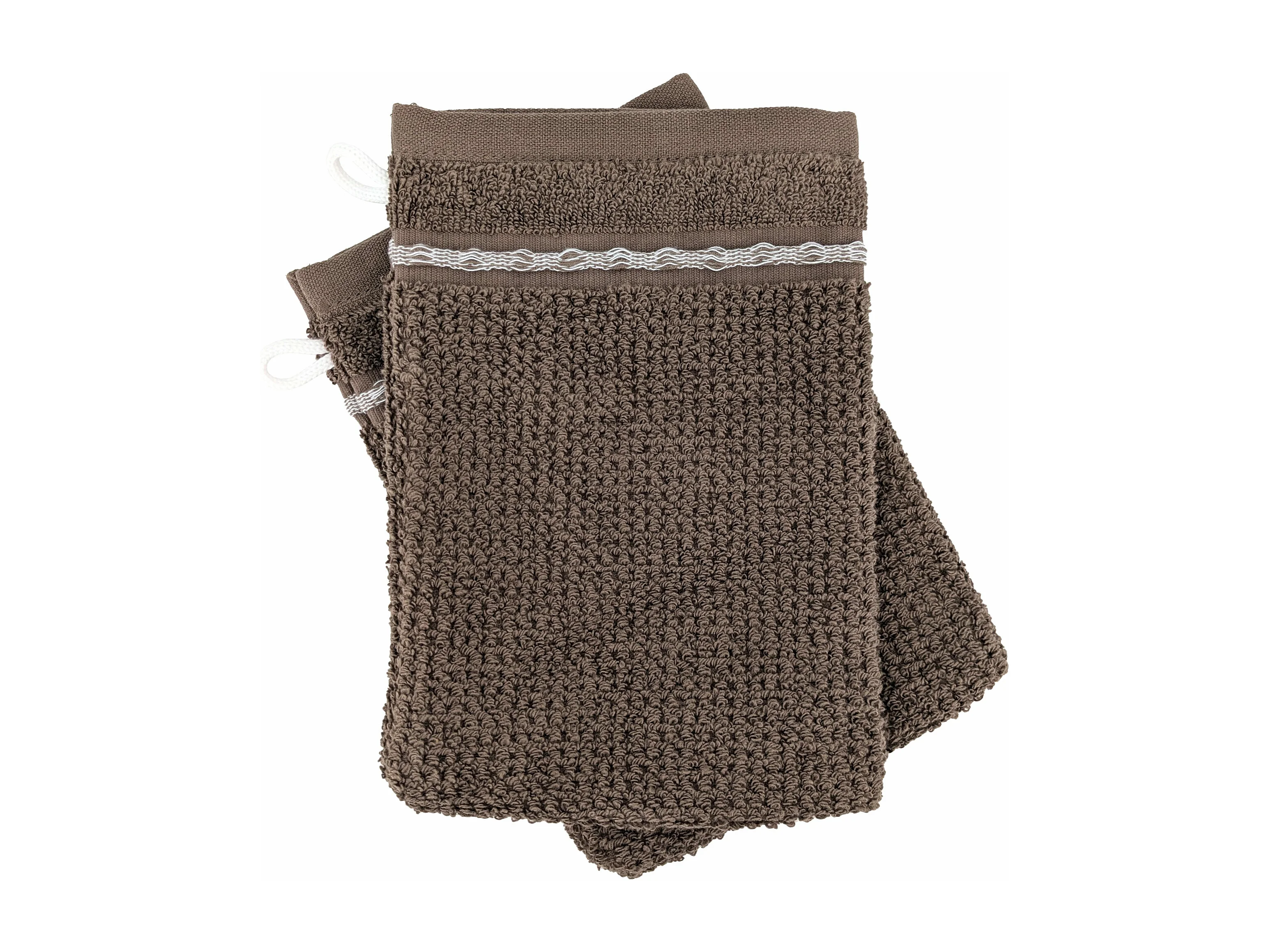 Lot de 2 gants de toilette 16x21 cm pur coton INTENSE à bordures blanches couleur marron