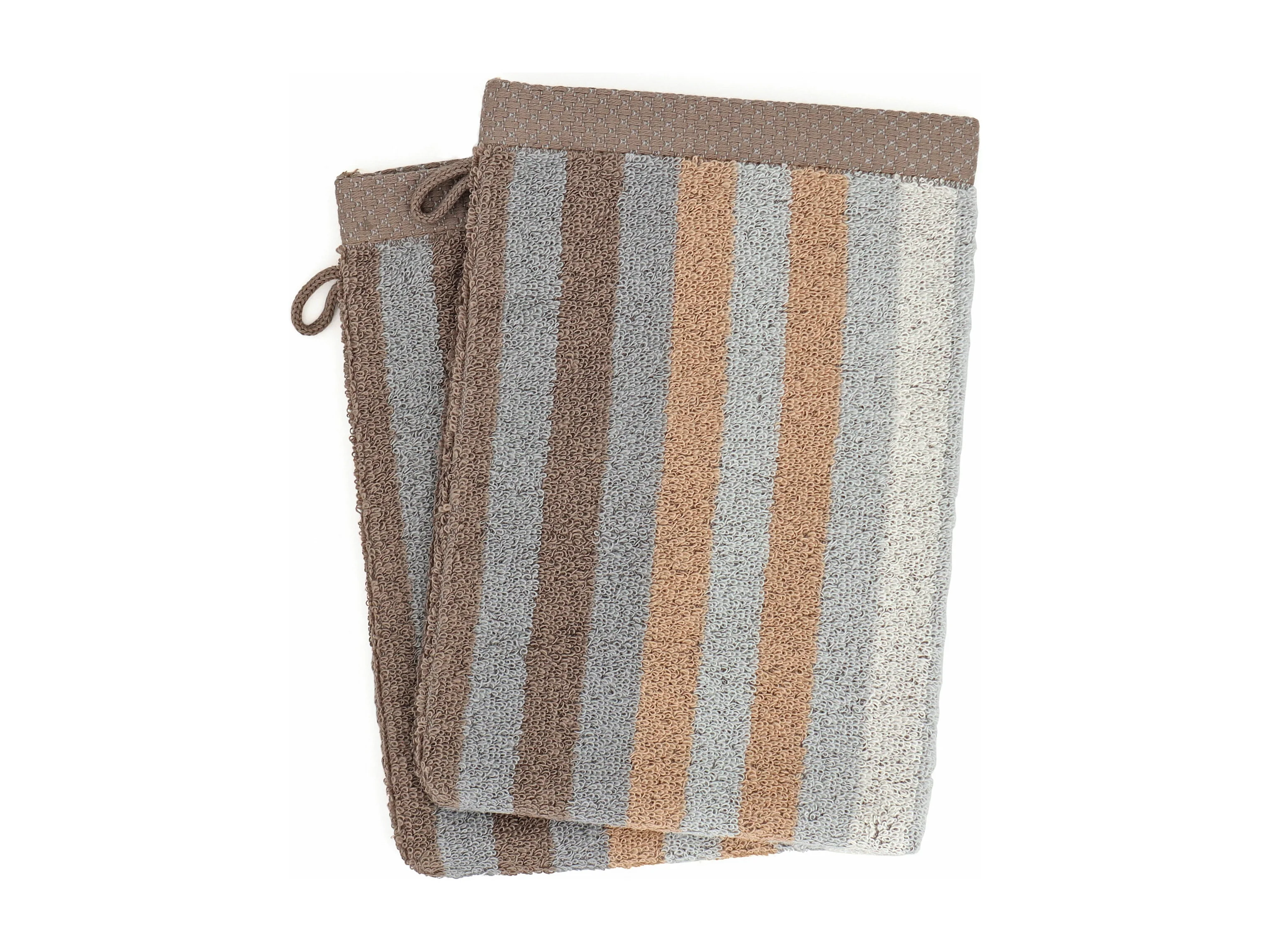 Lot de 2 gants de toilette 16x21 cm BOLD à rayures marron Terracotta